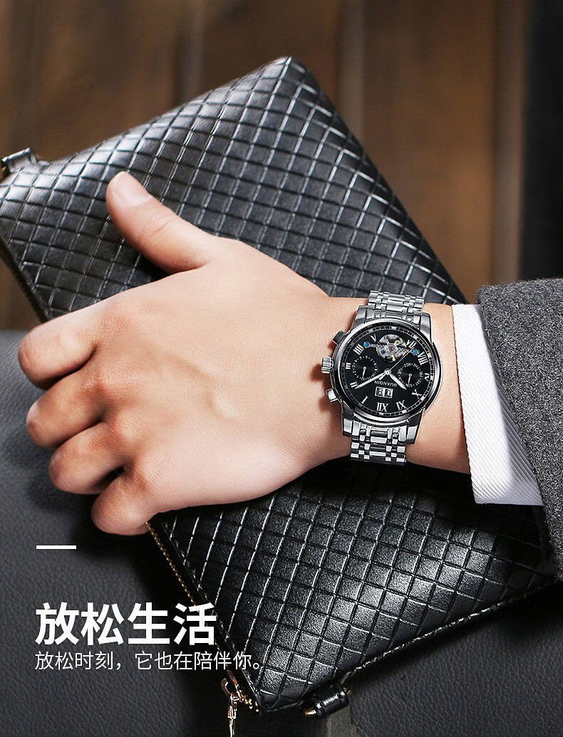 依波(EBOHR)【商场同款】大师系列手表男士自动机械表国表生日礼物防水送男友 酷雅黑 10840214