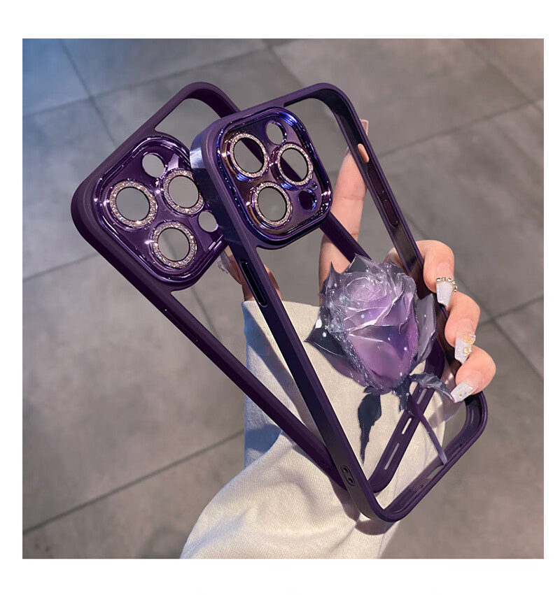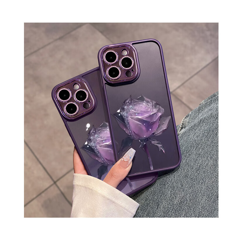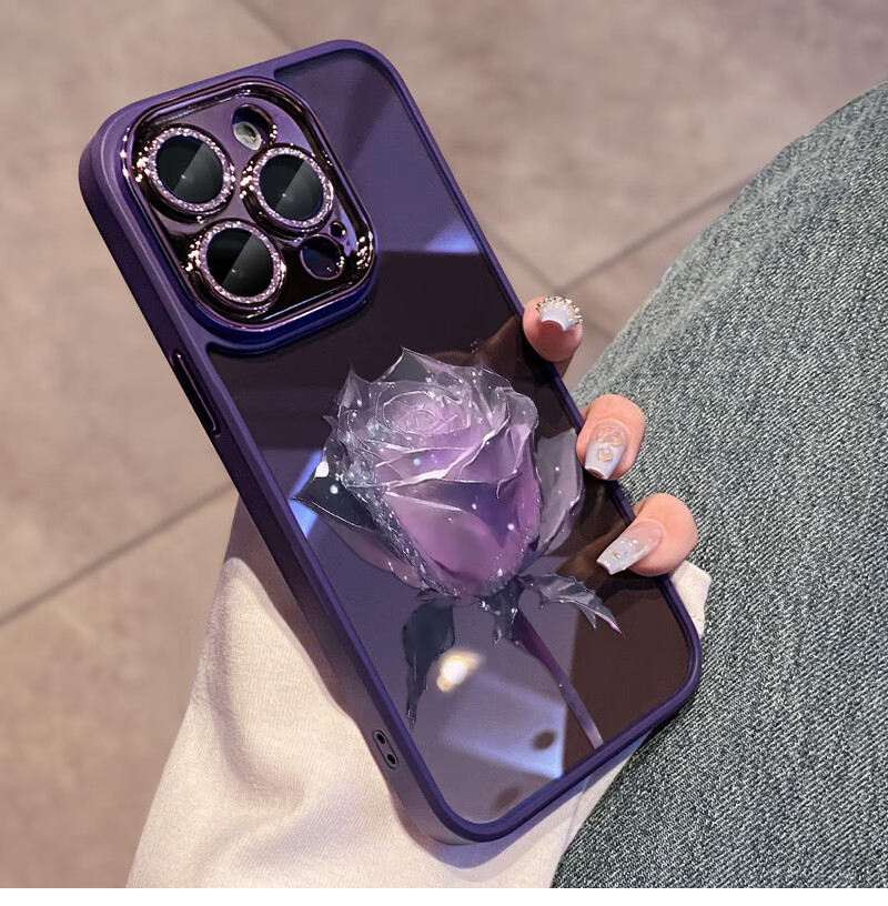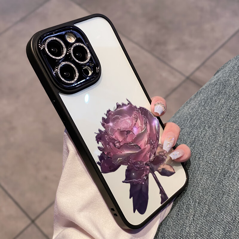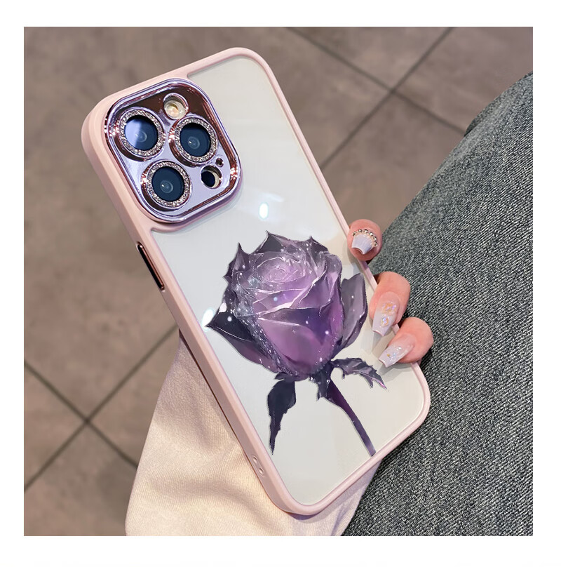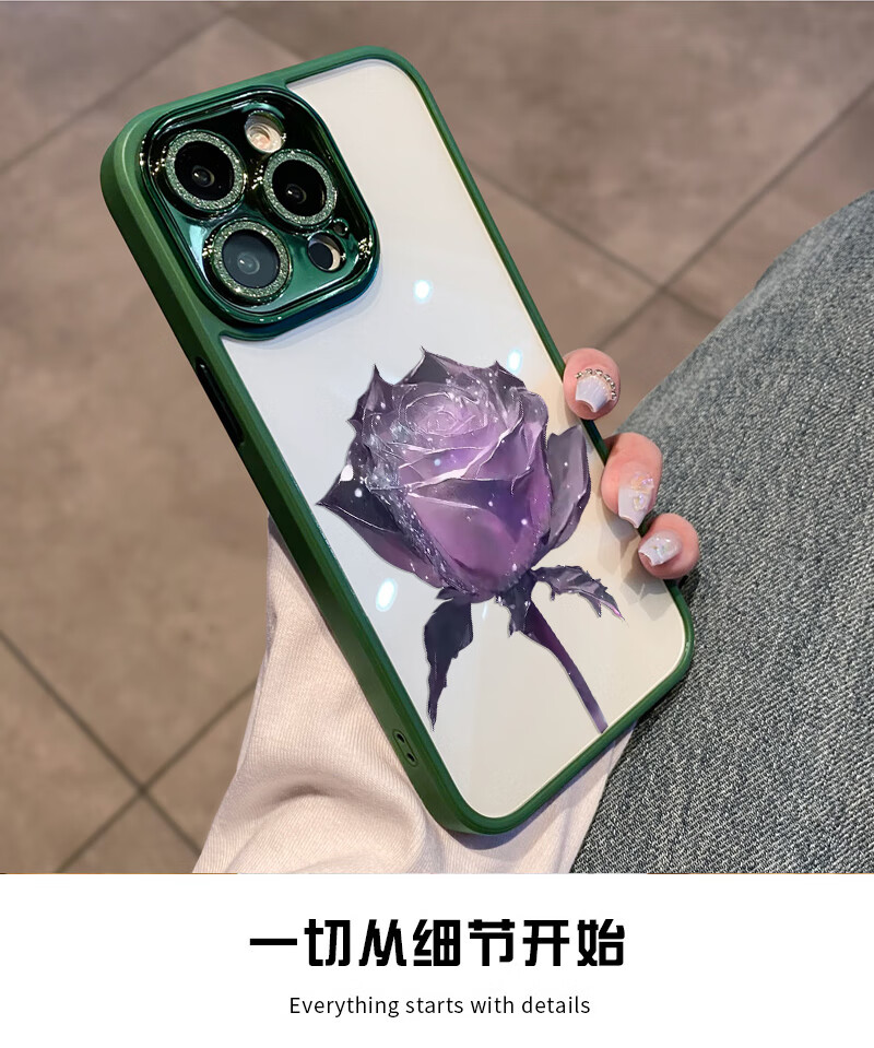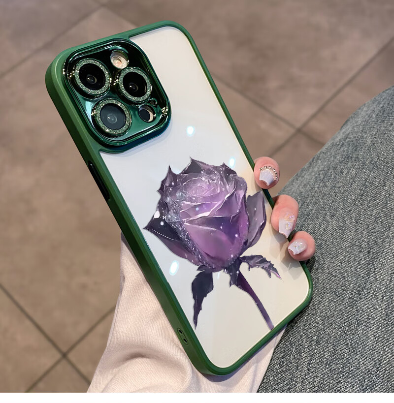 初黎适用于苹果15promax手机壳iPhone14promax自带闪粉镜头膜全包防摔15pro网红高档紫玫瑰透明女神13 苍岭绿花苞粉玫瑰自带闪粉镜头膜 iPhone12