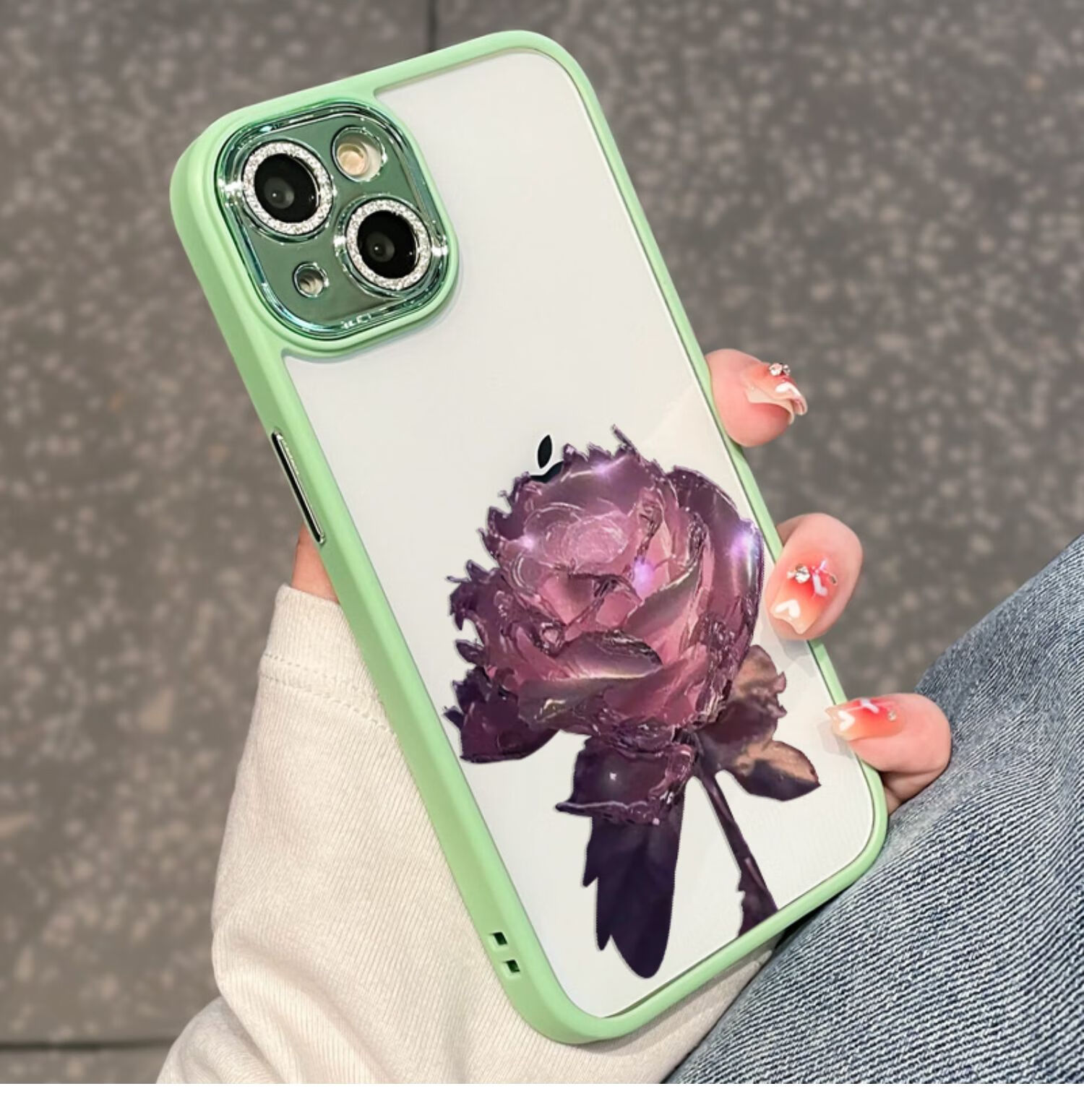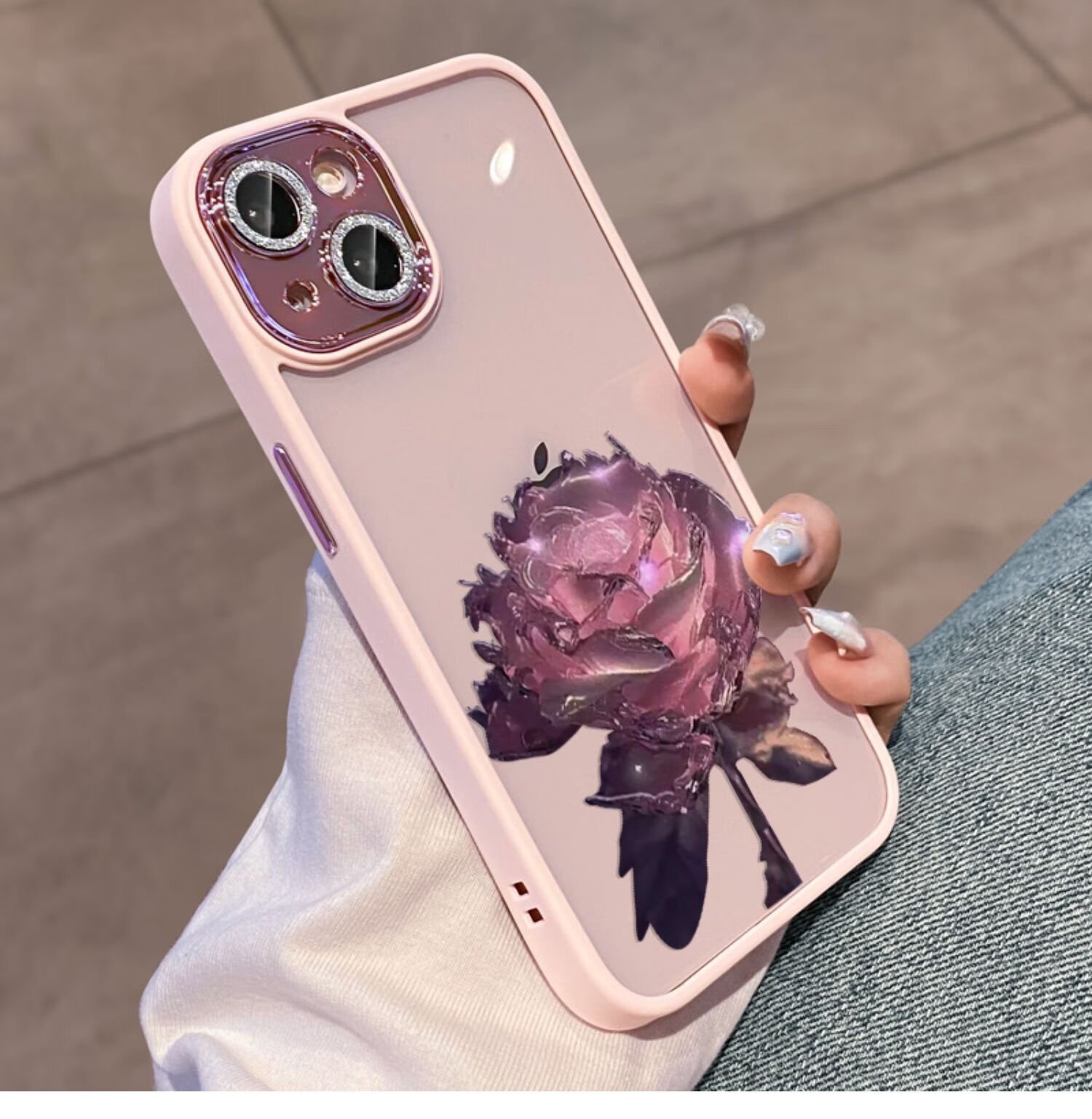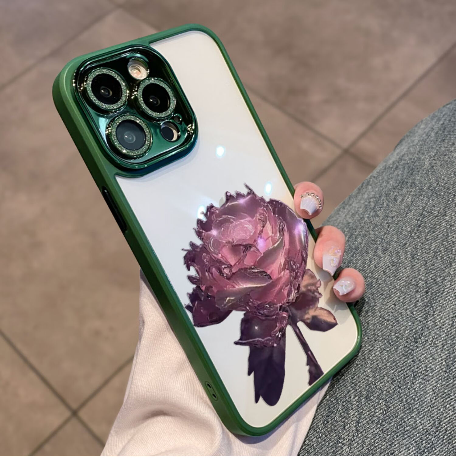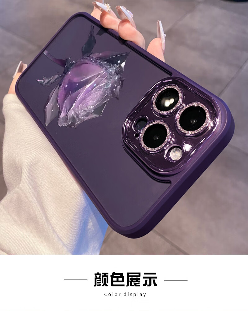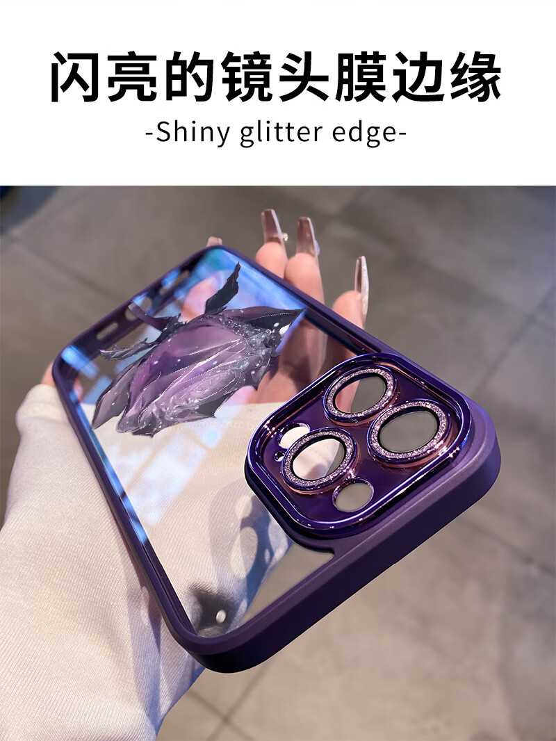 初黎适用于苹果15promax手机壳iPhone14promax自带闪粉镜头膜全包防摔15pro网红高档紫玫瑰透明女神13 苍岭绿花苞粉玫瑰自带闪粉镜头膜 iPhone12