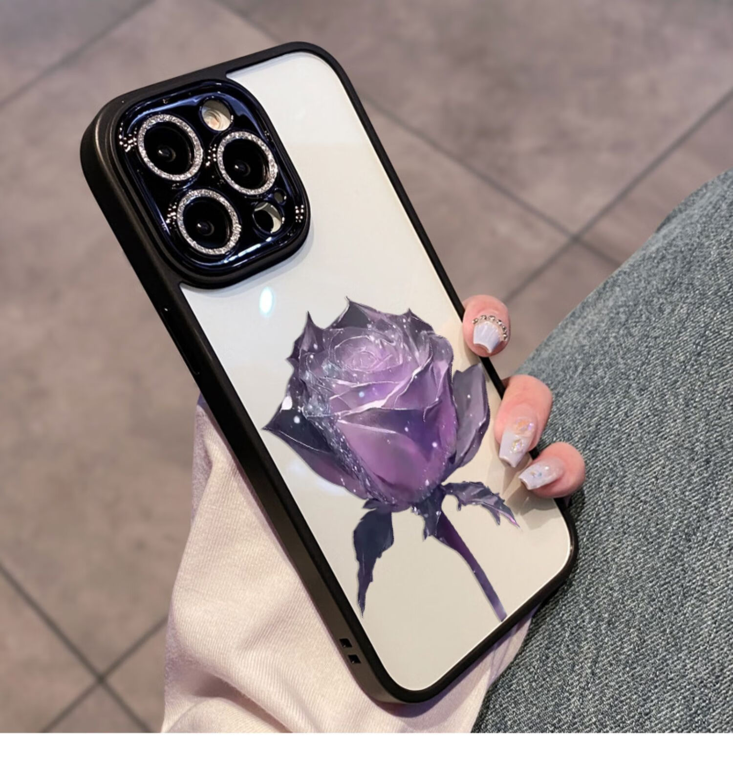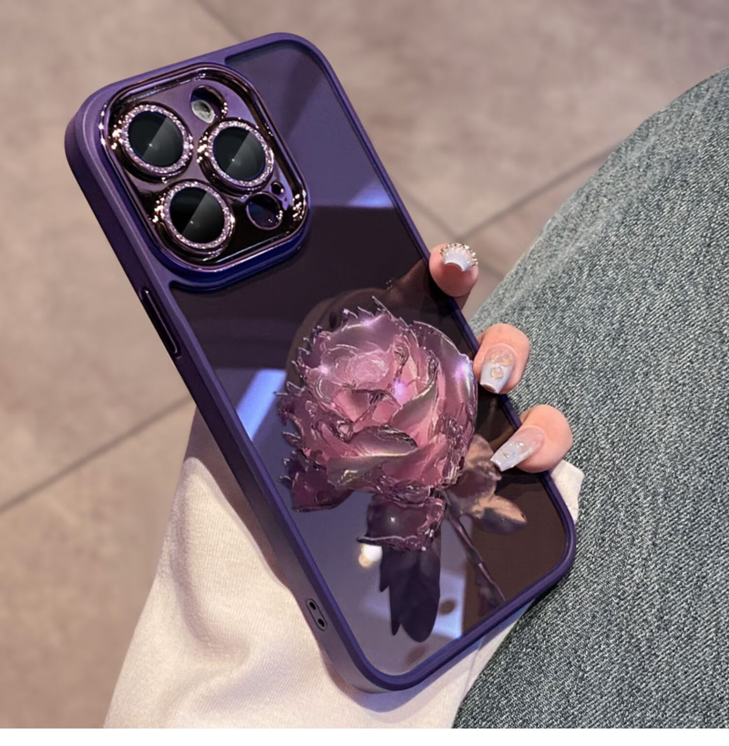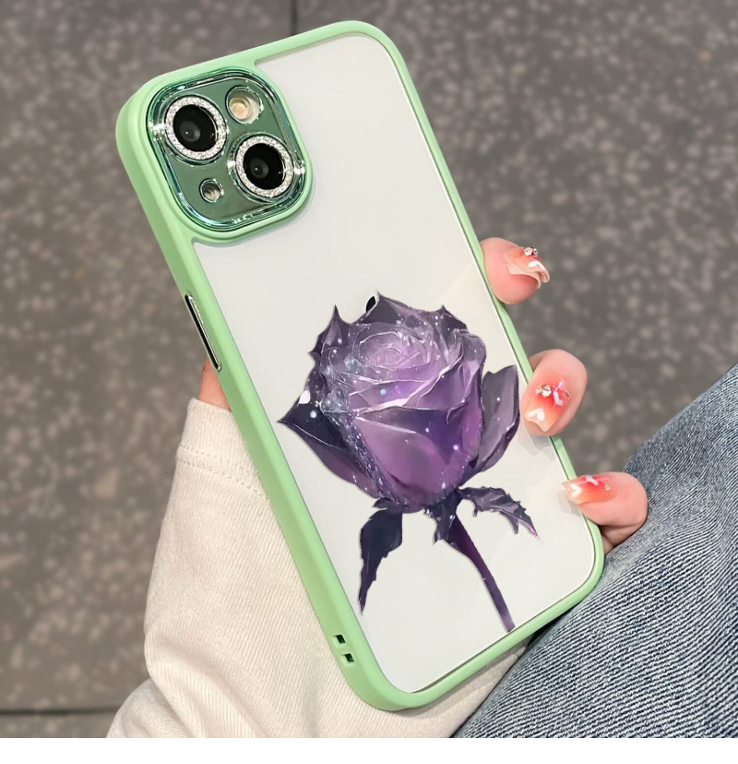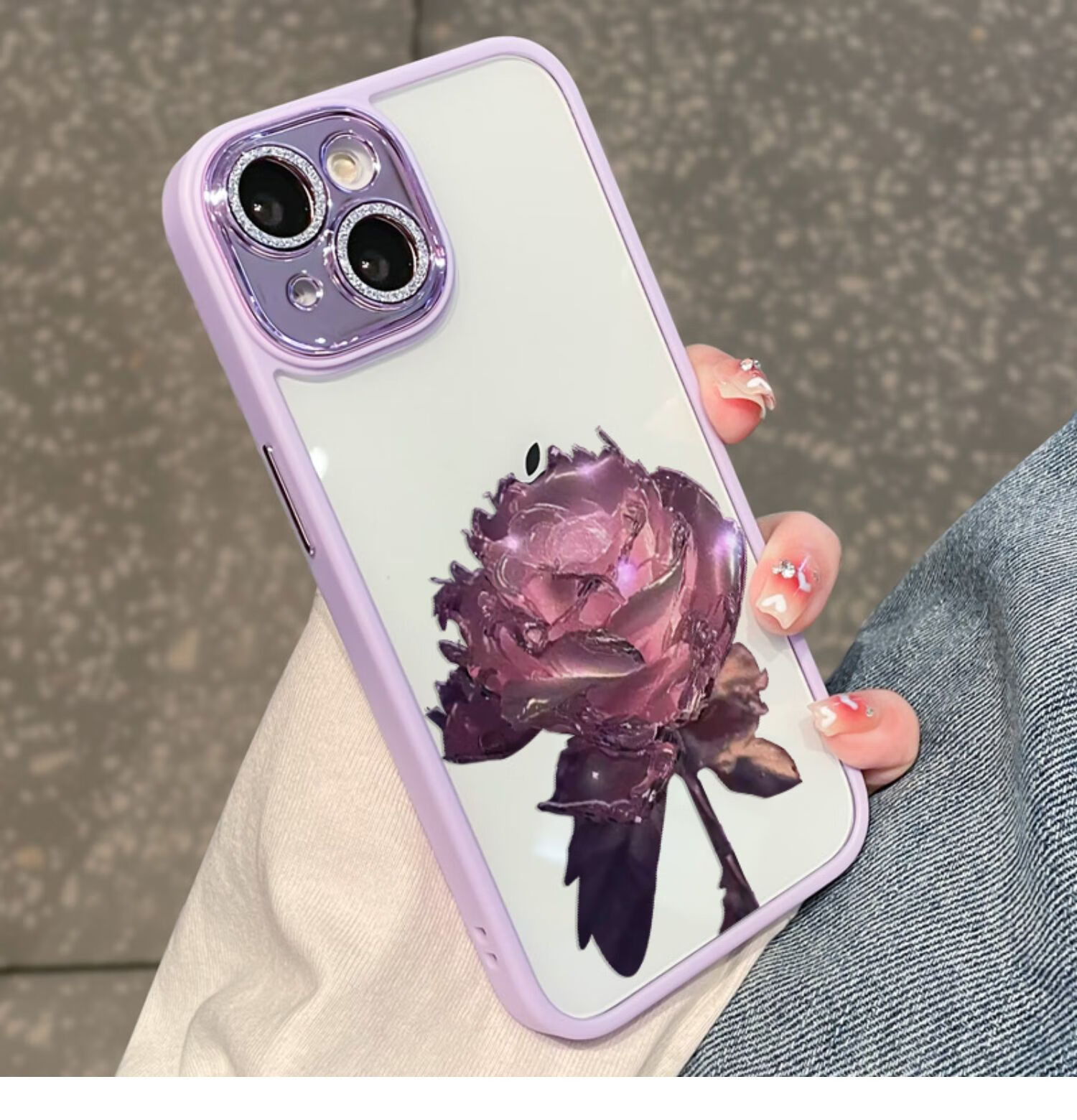 初黎适用于苹果15promax手机壳iPhone14promax自带闪粉镜头膜全包防摔15pro网红高档紫玫瑰透明女神13 苍岭绿花苞粉玫瑰自带闪粉镜头膜 iPhone12