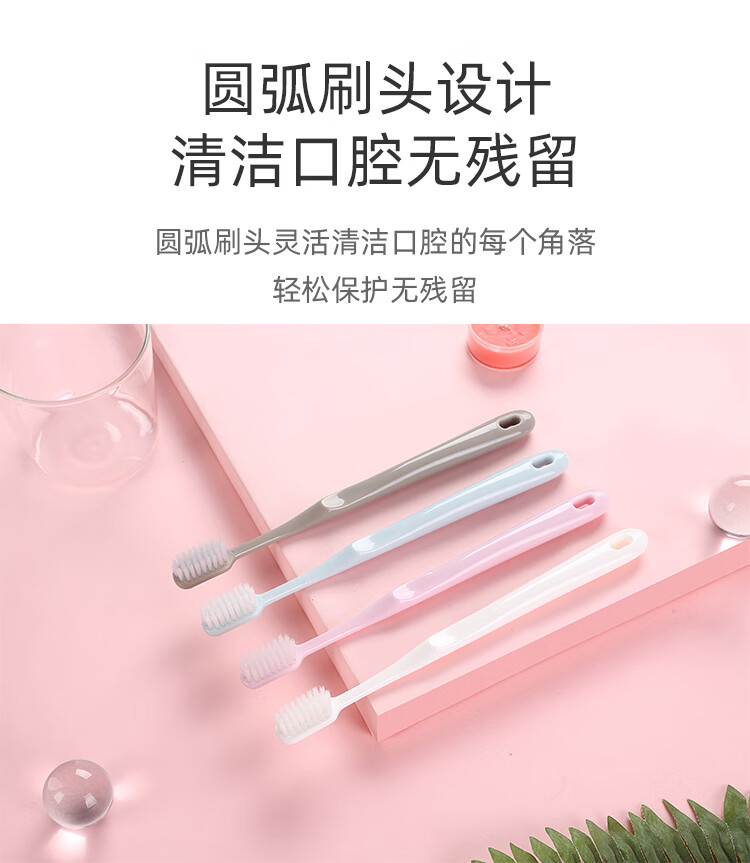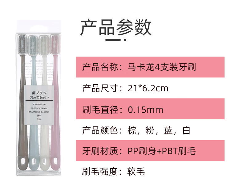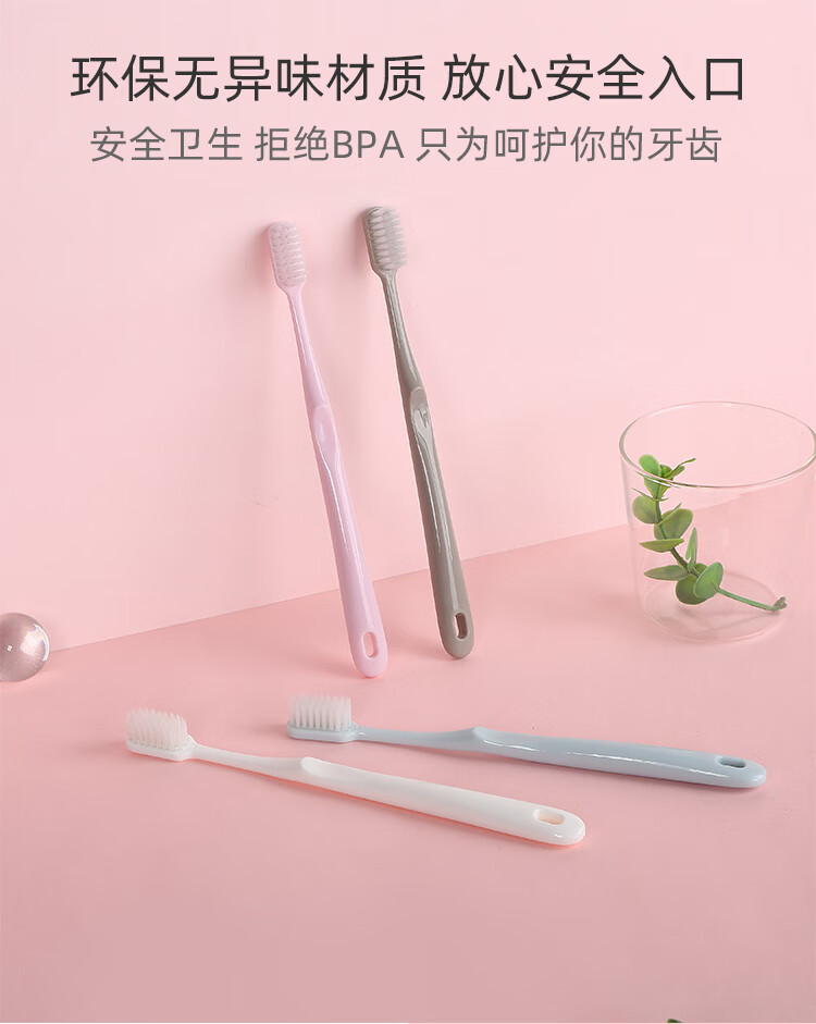 健高档成人软毛日韩风超软小宽头马卡龙牙刷清新家用男女情侣家庭装 粉灰兰白 2支 010PVC盒装12支【轻奢最划算】