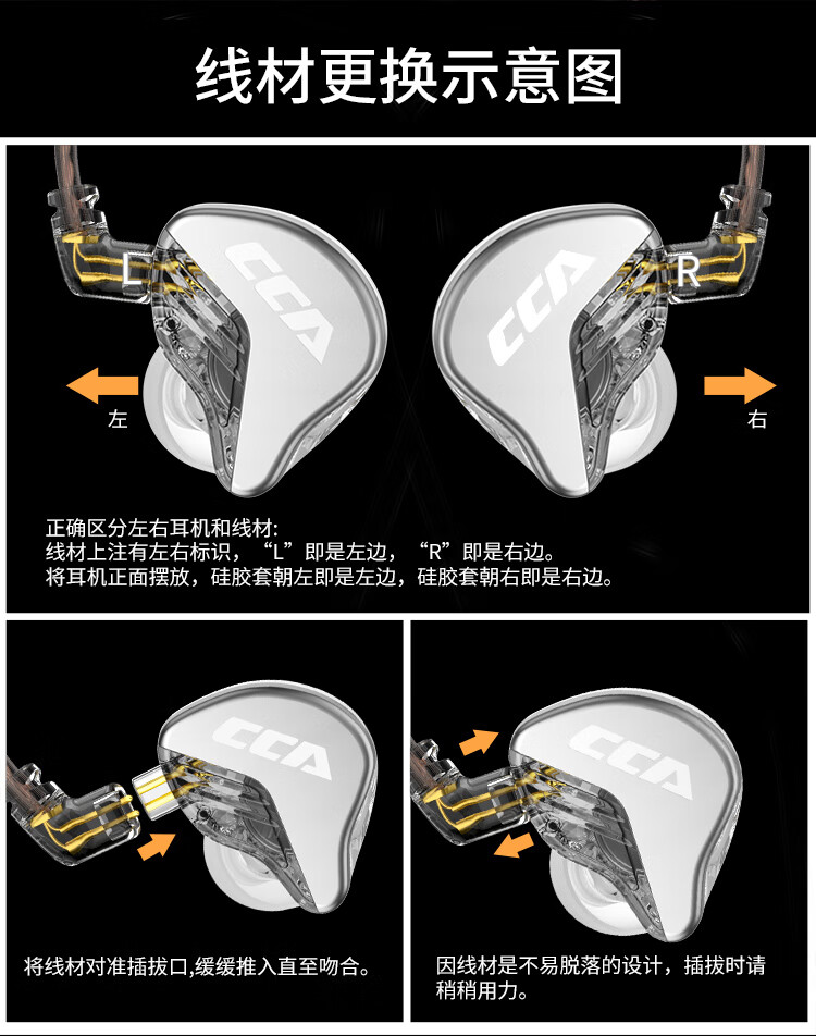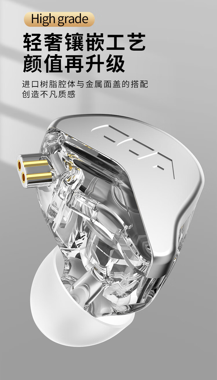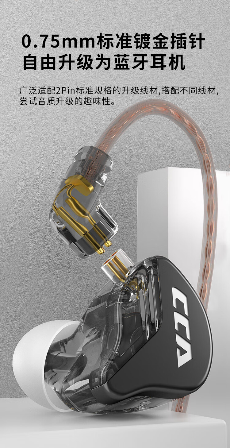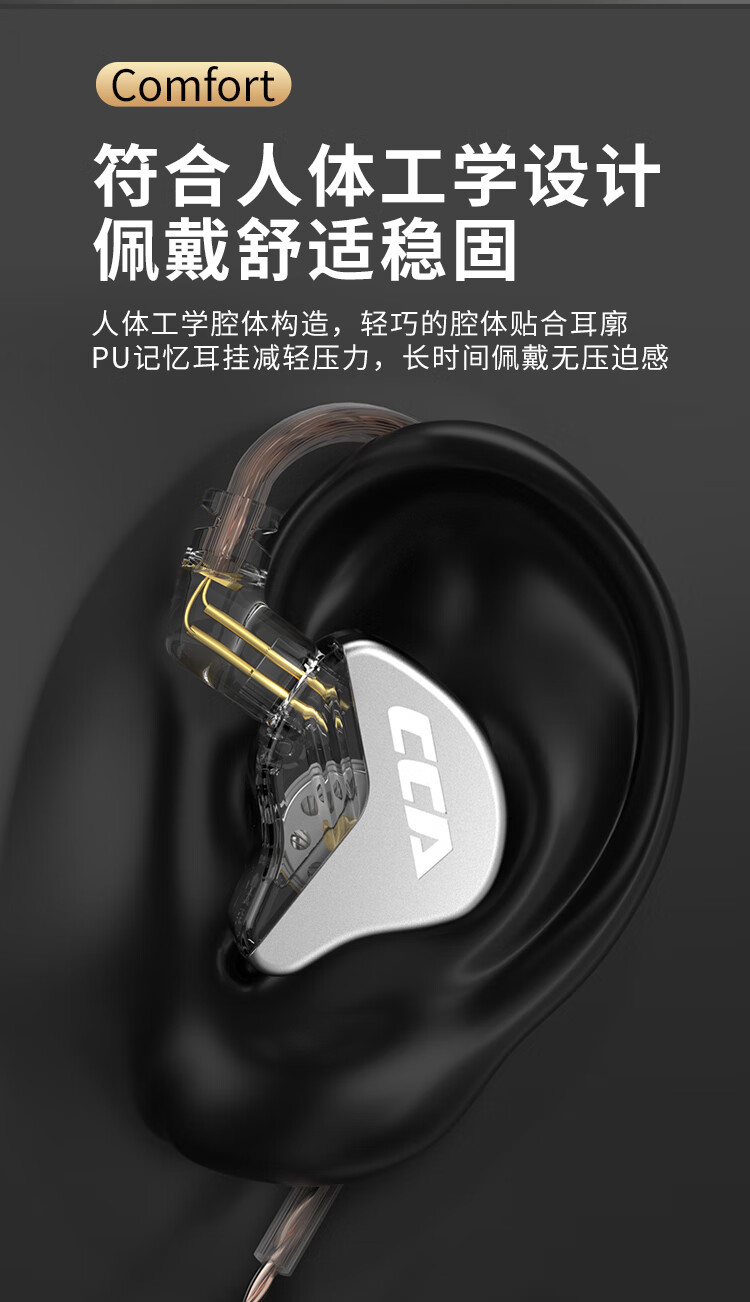 CCA CRA动圈入耳式有线耳机可换线运动K歌手机电脑重低音线控3.5MM高保真HIFI耳塞高音质 透明黑【电脑语音版】