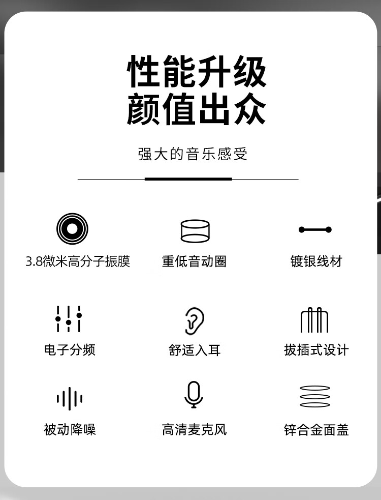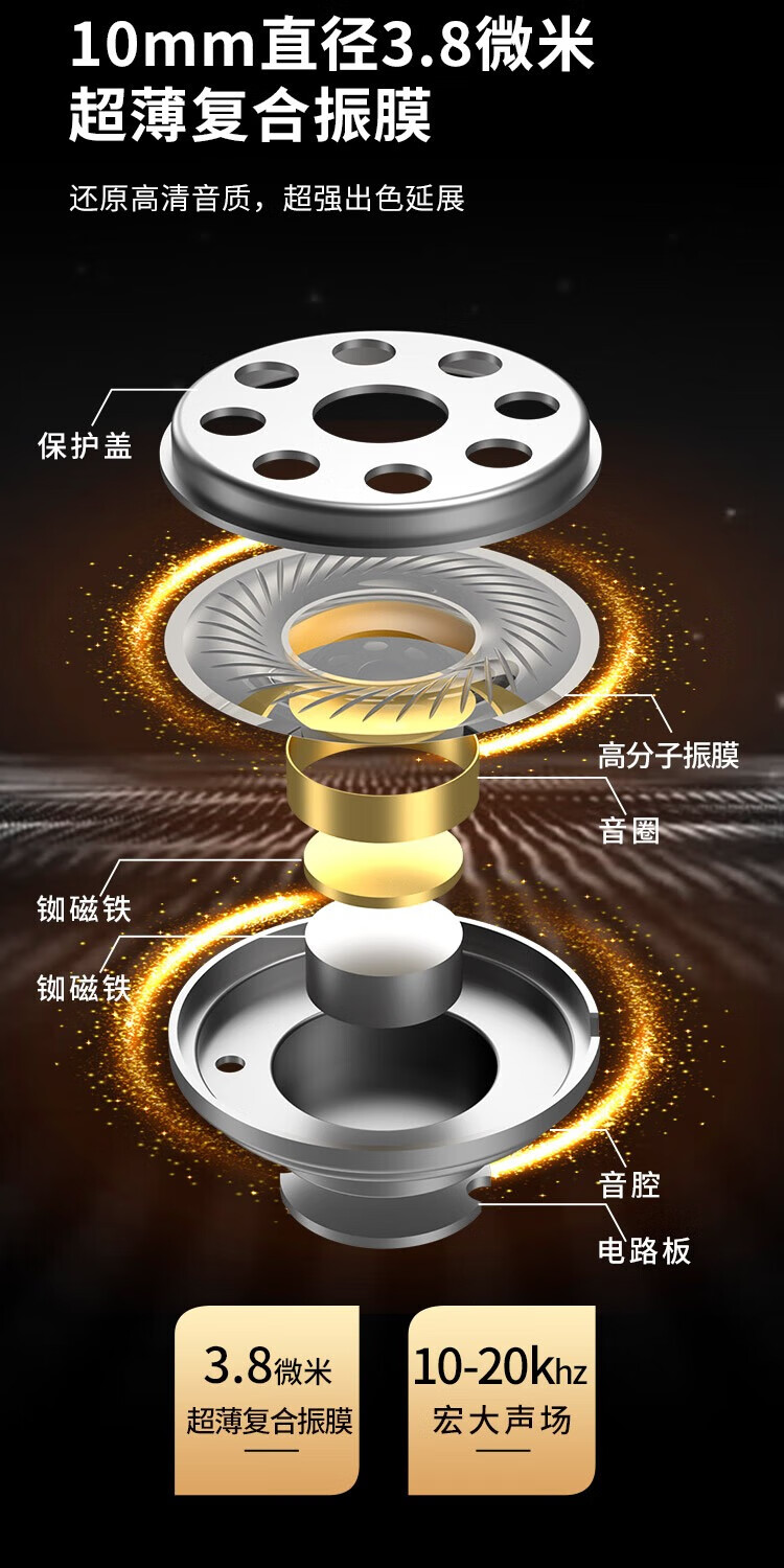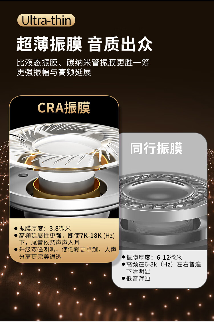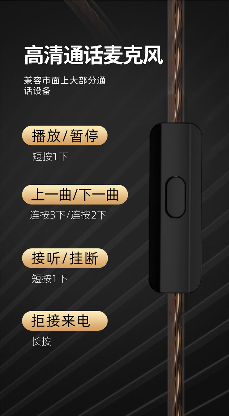 CCA CRA动圈入耳式有线耳机可换线运动K歌手机电脑重低音线控3.5MM高保真HIFI耳塞高音质 透明黑【电脑语音版】