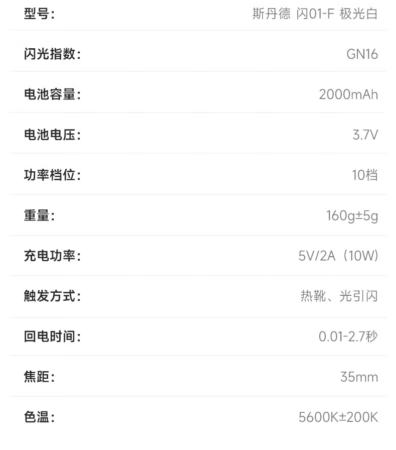 sidande闪01机顶闪光灯极光白GN16高亮小型热靴灯相机便携外拍摄影人像逆光数码微单单反极寒-20℃可用 闪01标配 闪01(低温版)