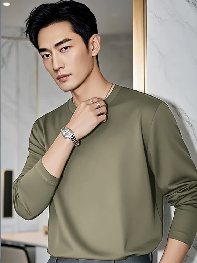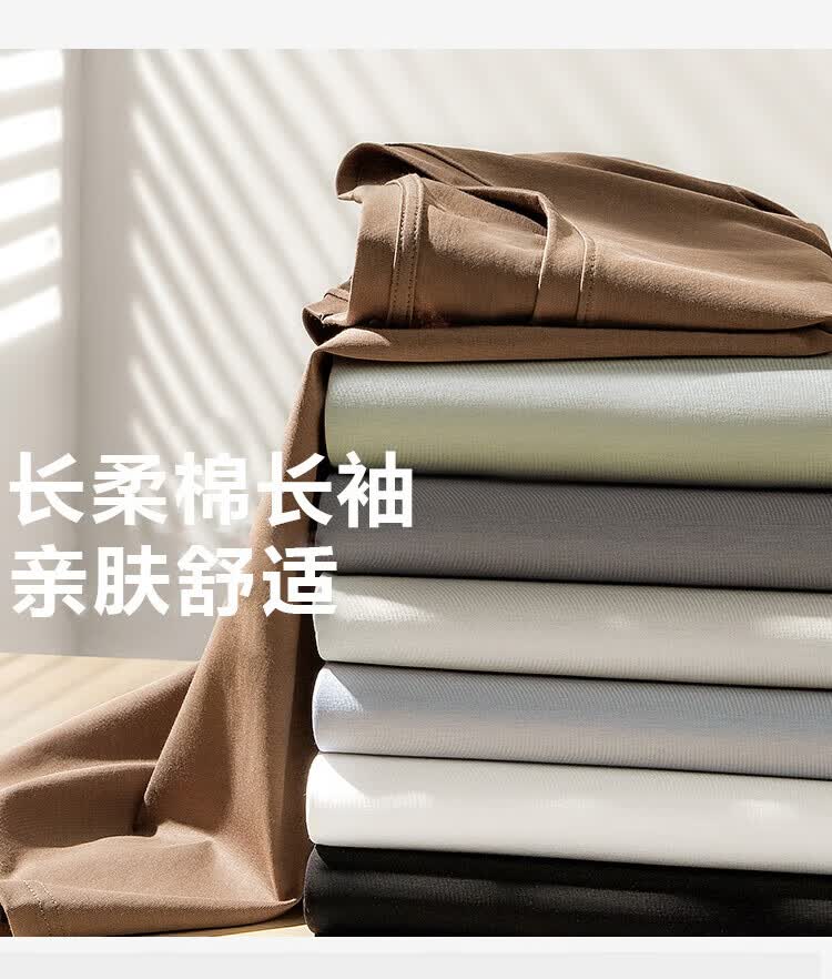 【7A抗菌100%纯棉】基础打底衫长袖T恤男休闲内搭百搭T男女同款 白色德绒【磨毛加绒半高领】 4XL 建议:170-185斤