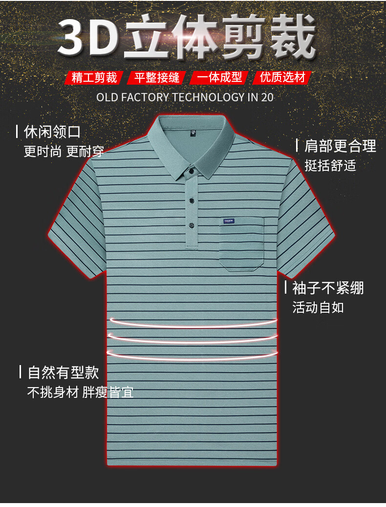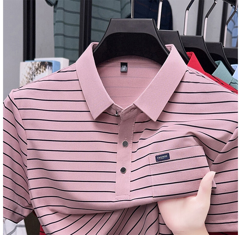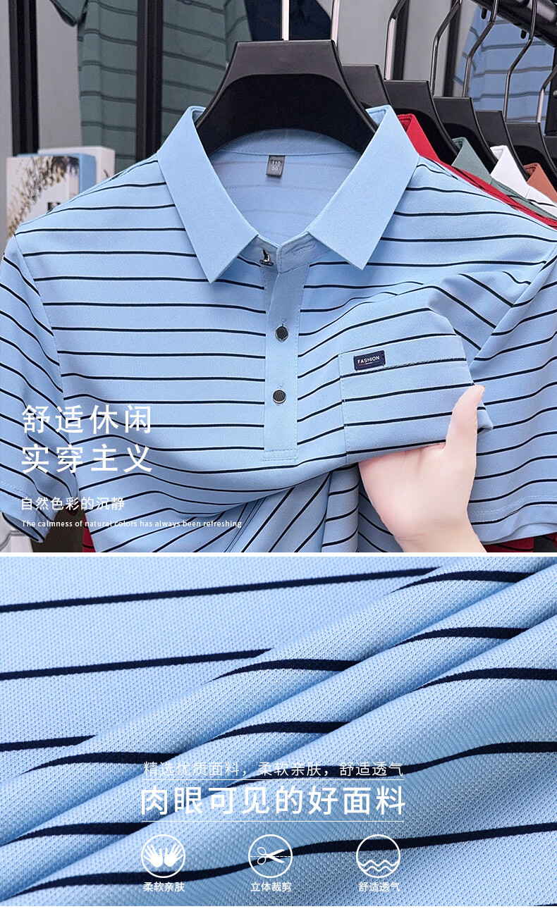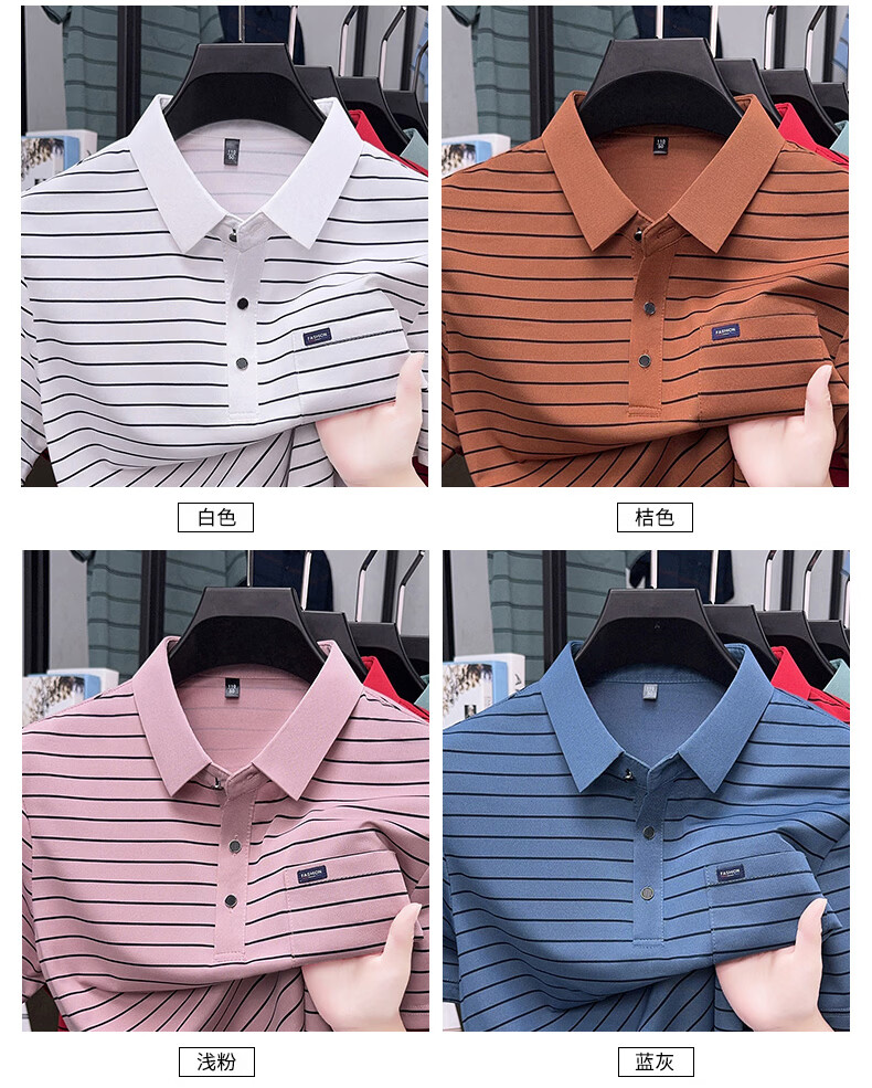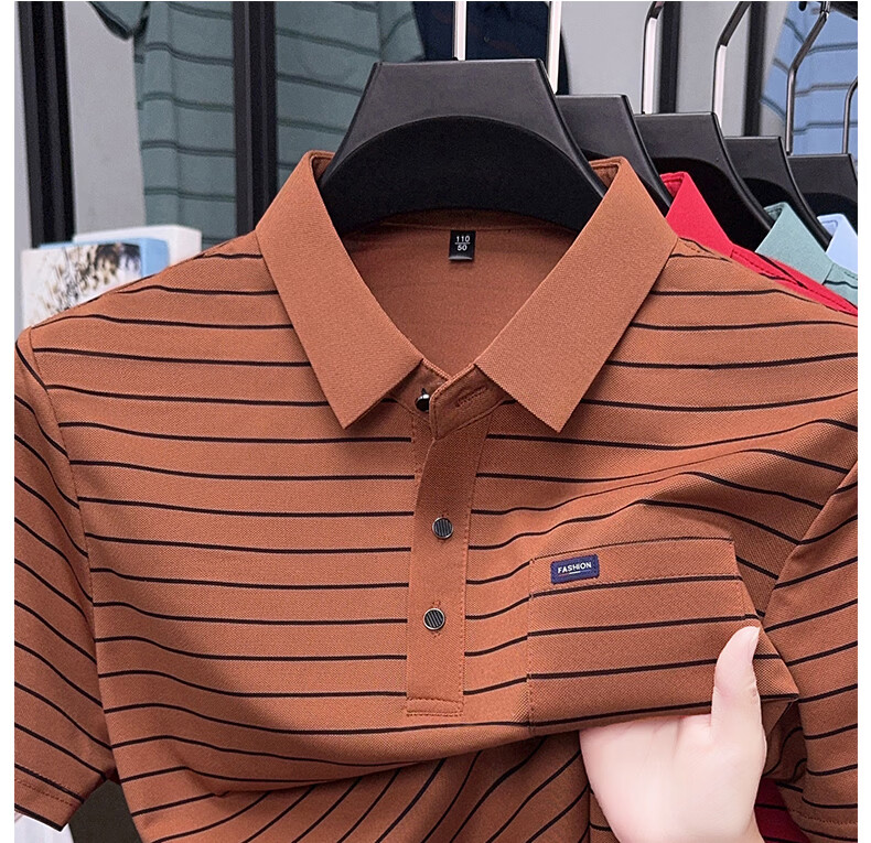 啄木鸟(TUCANO)冰丝短袖t恤男翻领条纹polo衫2026夏季真口袋凉感透气爸爸装半袖 桔色 4XL (190) 建议180-200斤