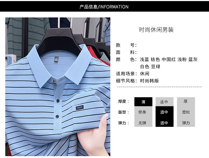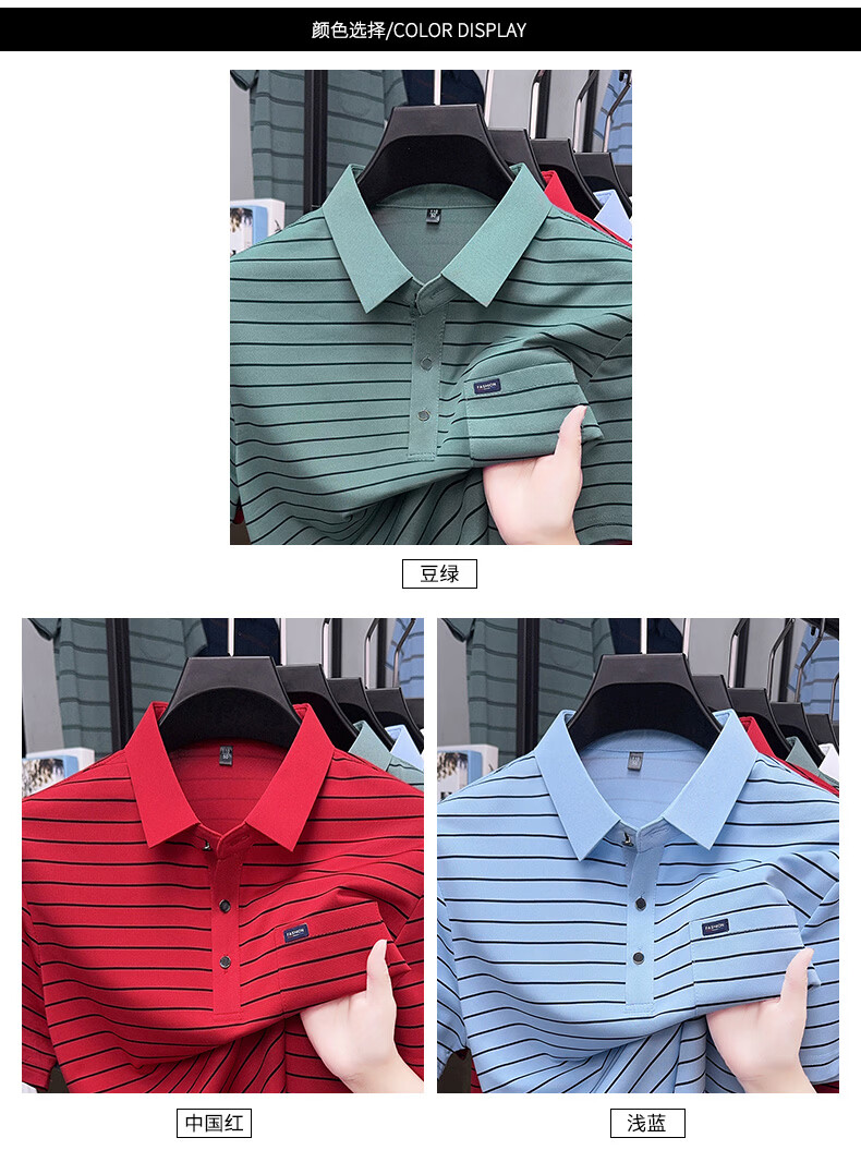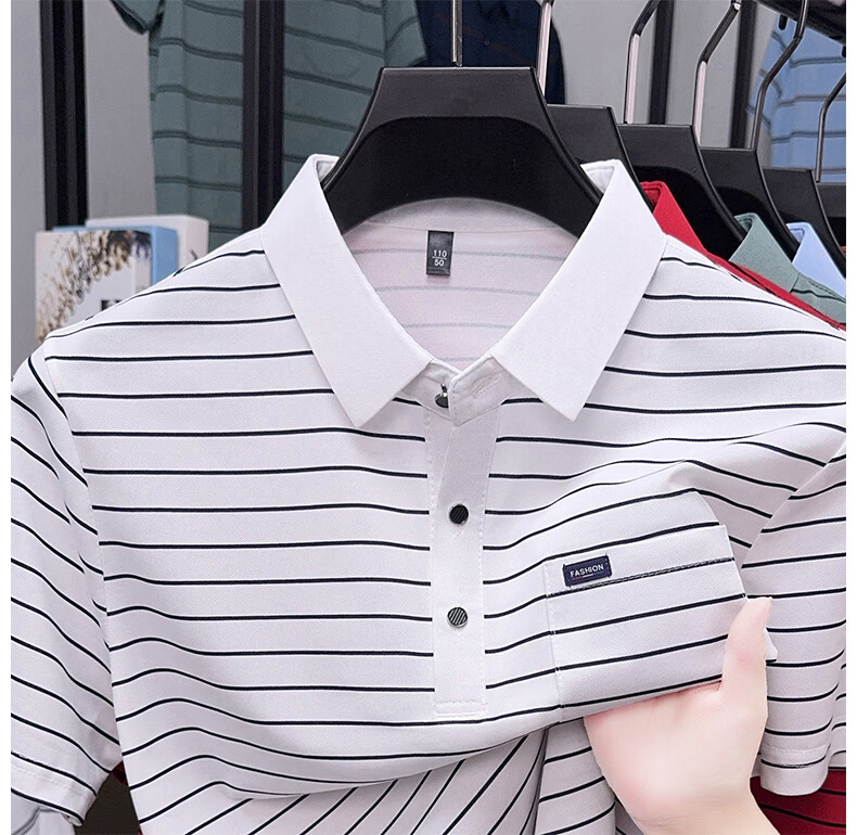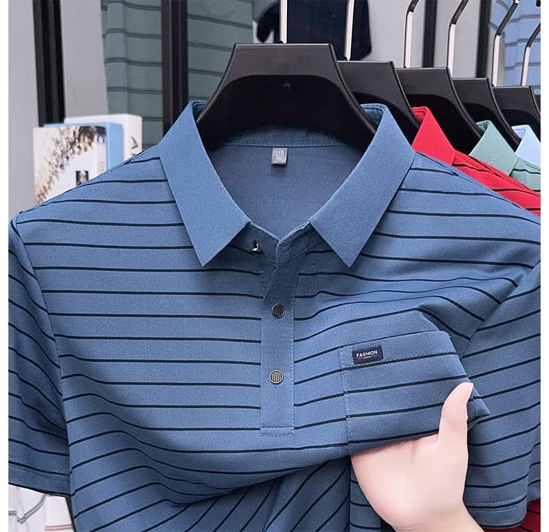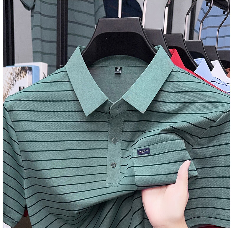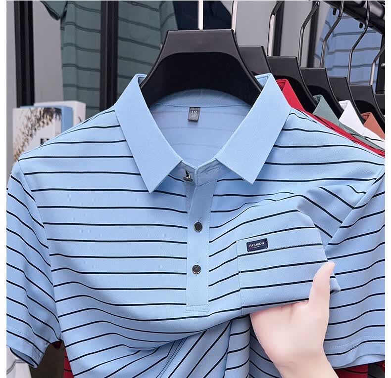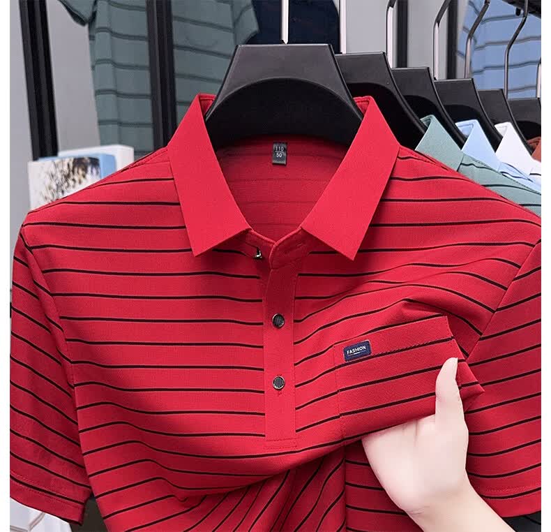 啄木鸟(TUCANO)冰丝短袖t恤男翻领条纹polo衫2026夏季真口袋凉感透气爸爸装半袖 桔色 4XL (190) 建议180-200斤
