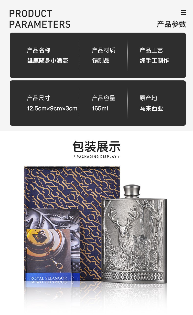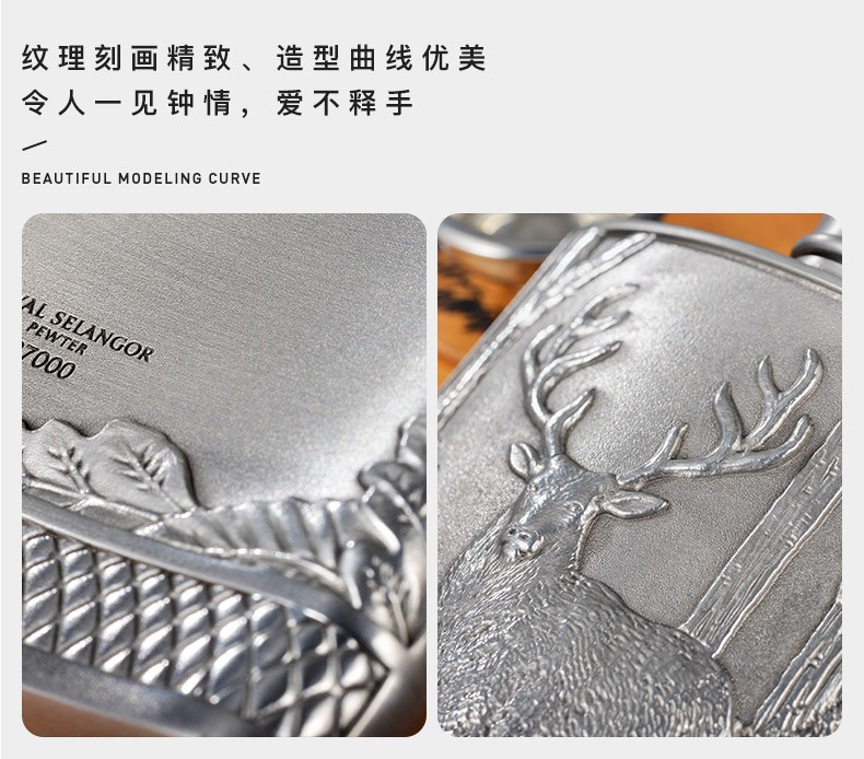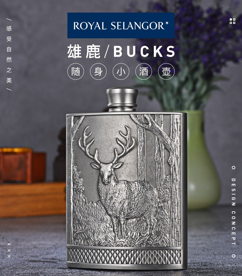 皇家雪兰莪雄鹿随身小酒壶 手工锡制酒壶 工艺礼品礼物 雄鹿随身小酒壶