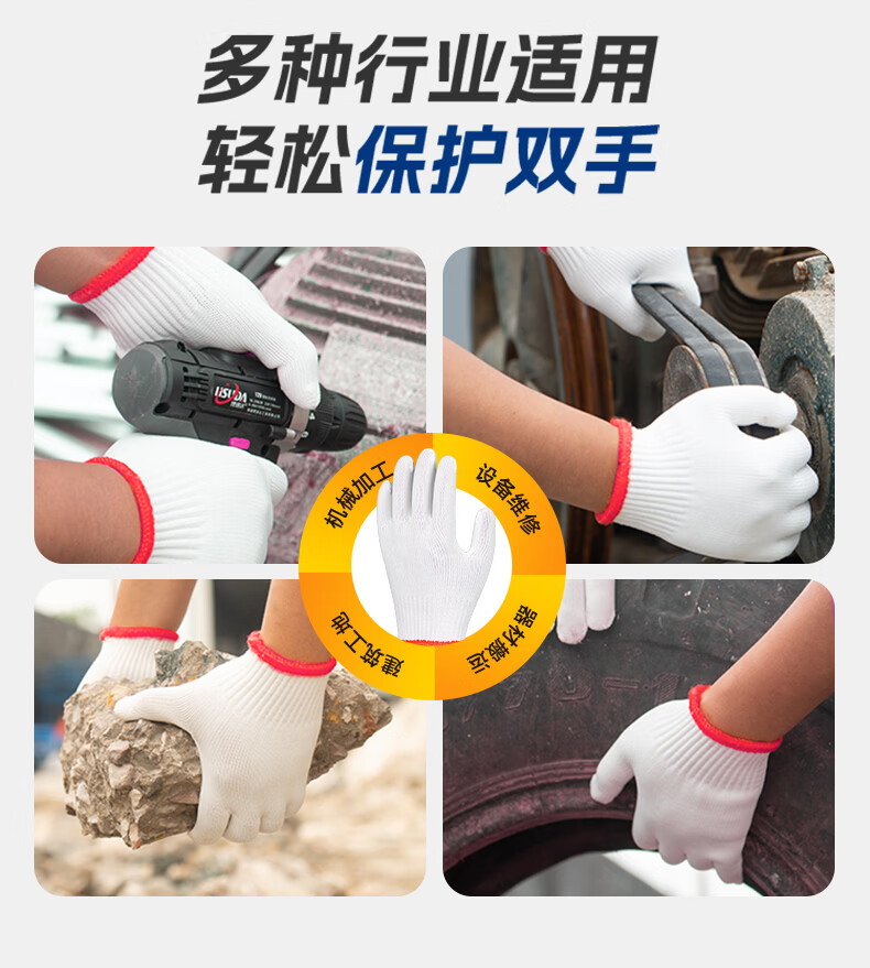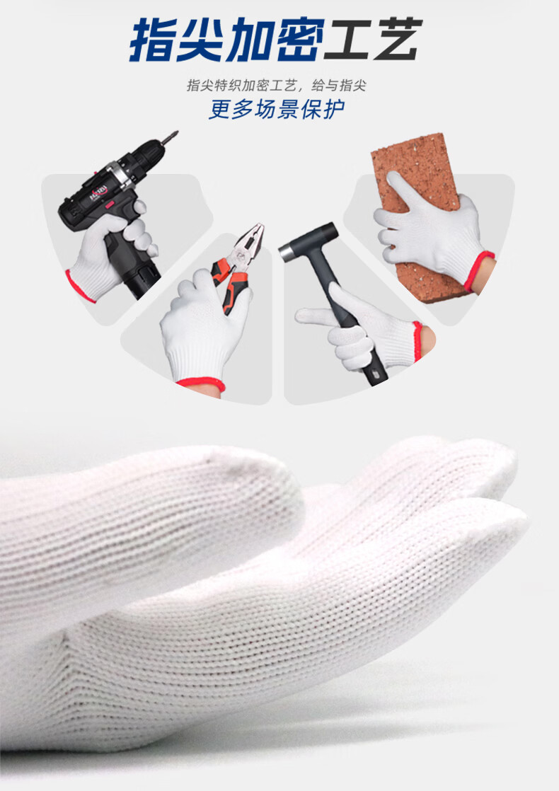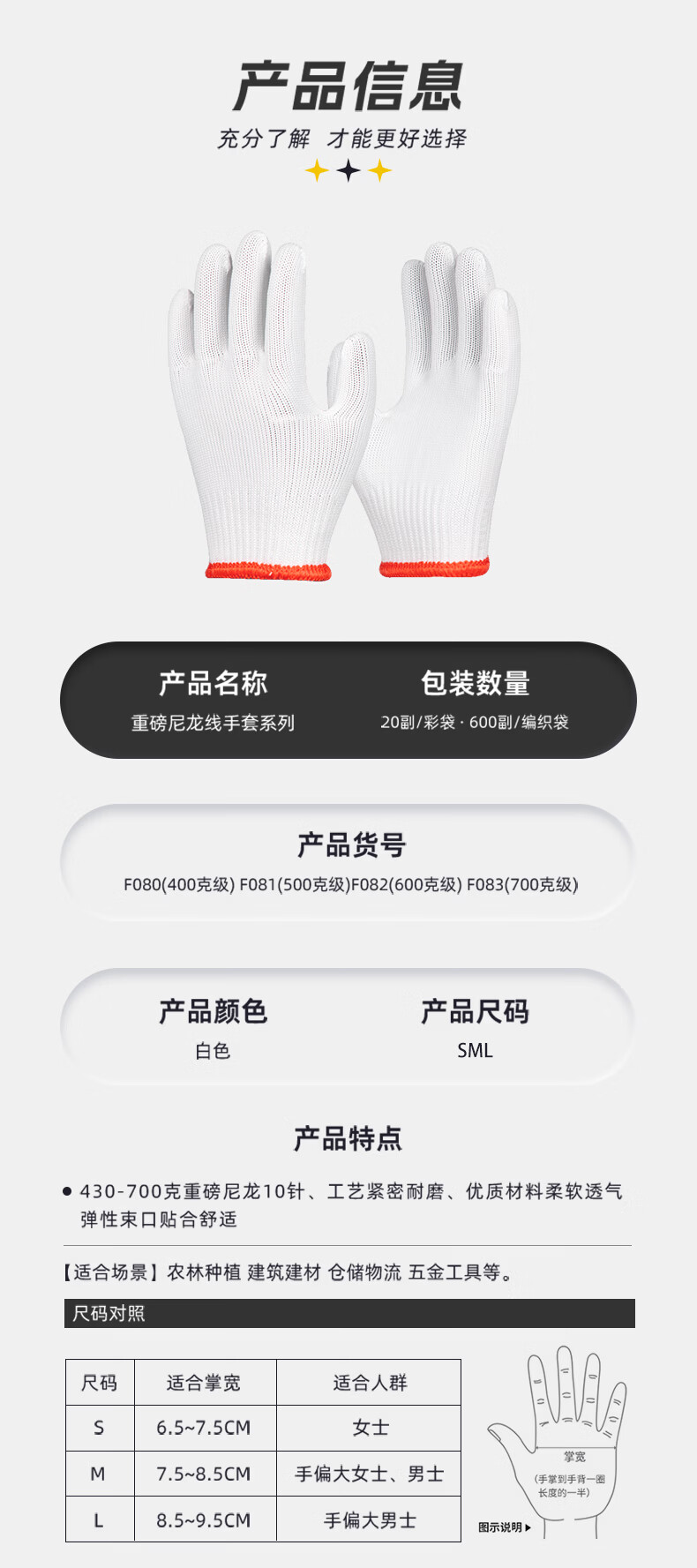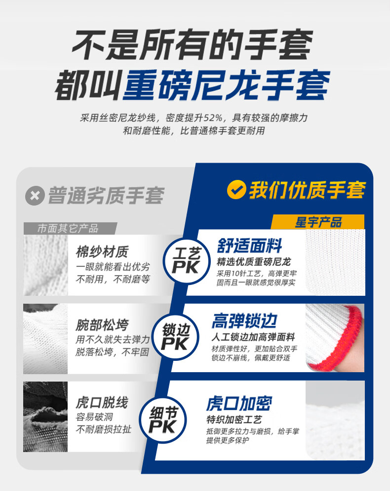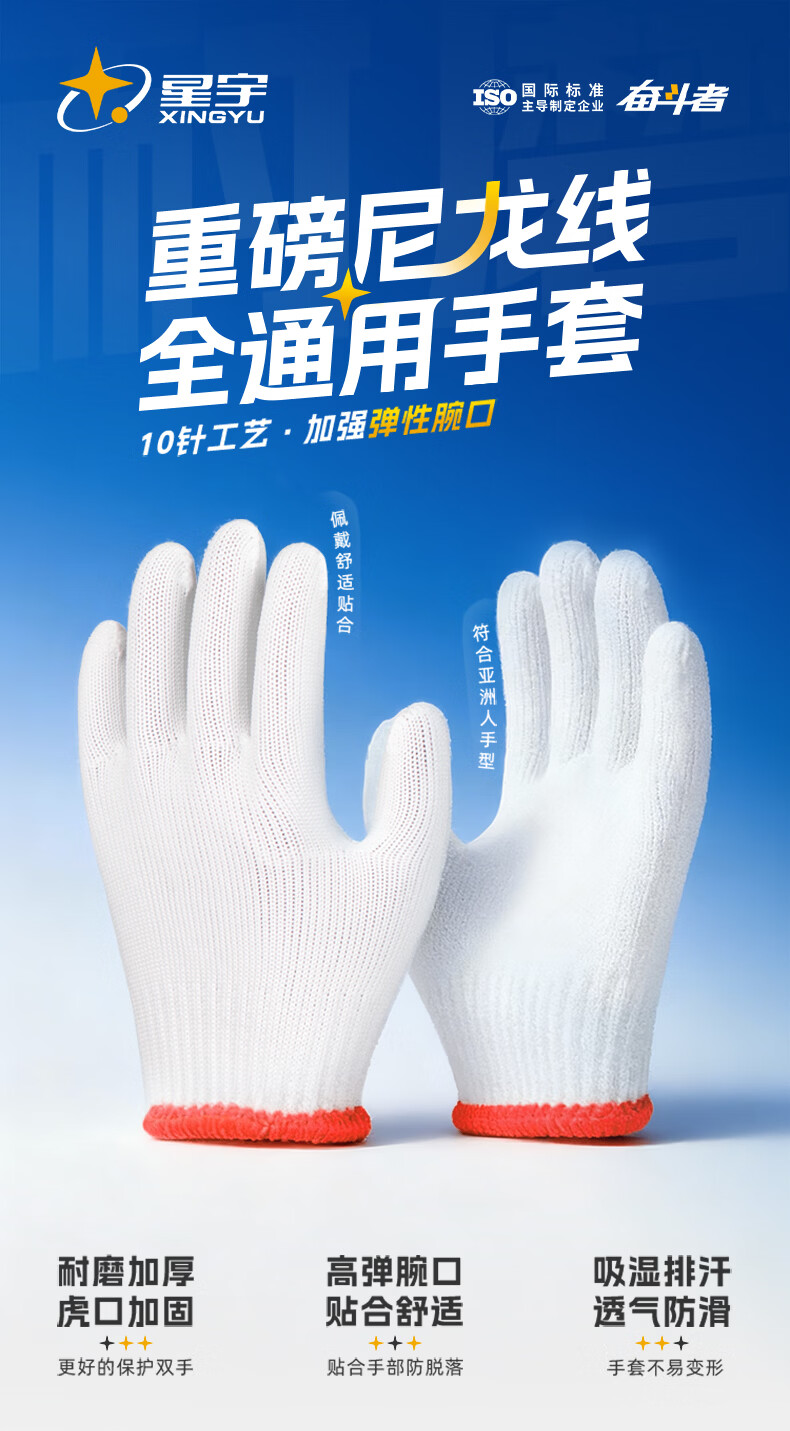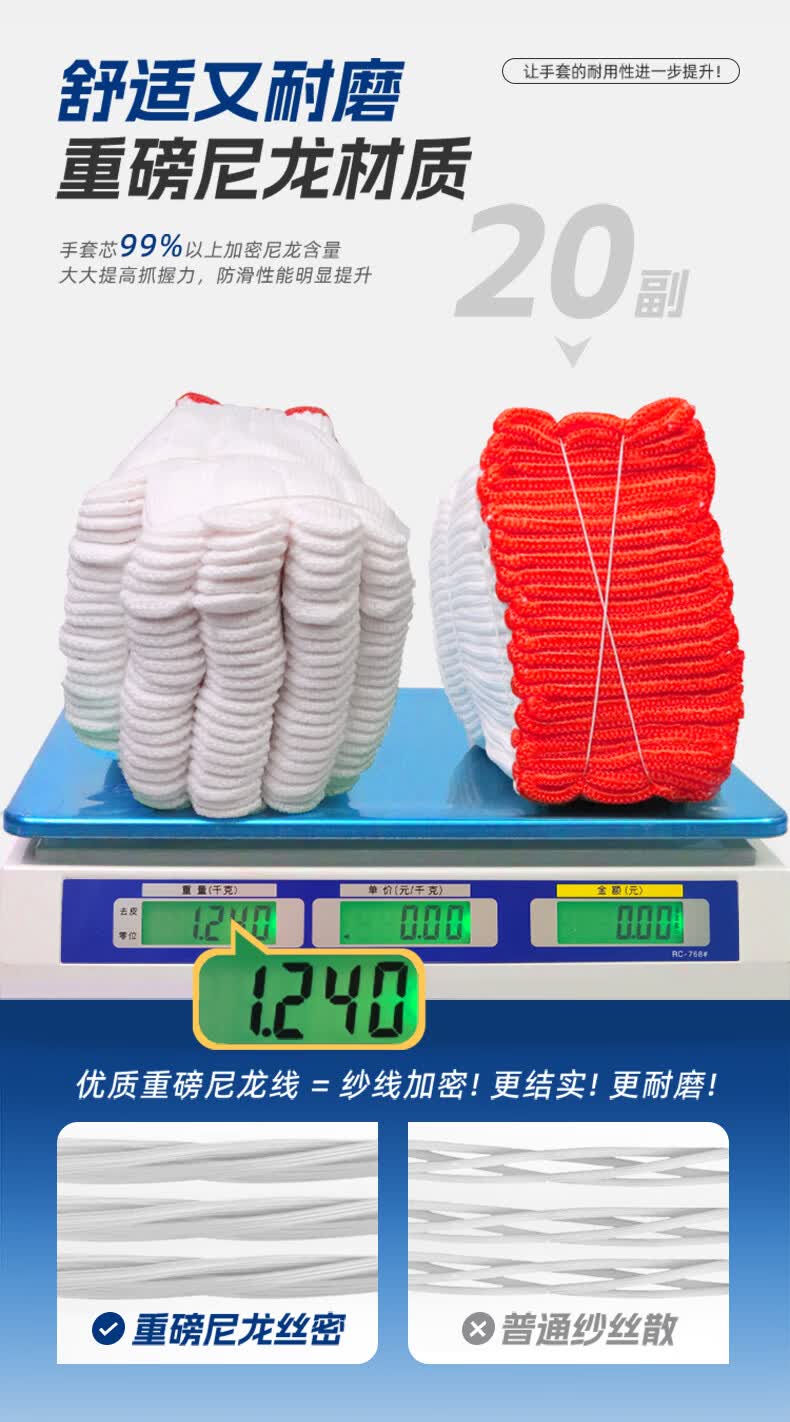 星宇劳保手套耐磨耐用工作尼龙线手套加厚工地工作干活劳动防滑透气 60双 尼龙600#【加厚款】