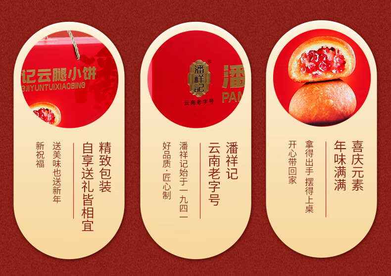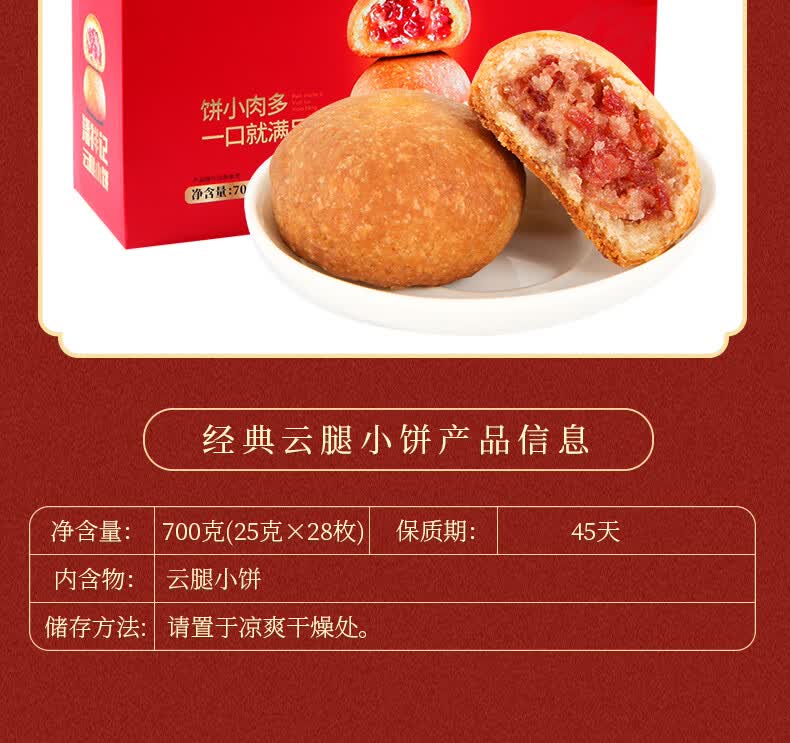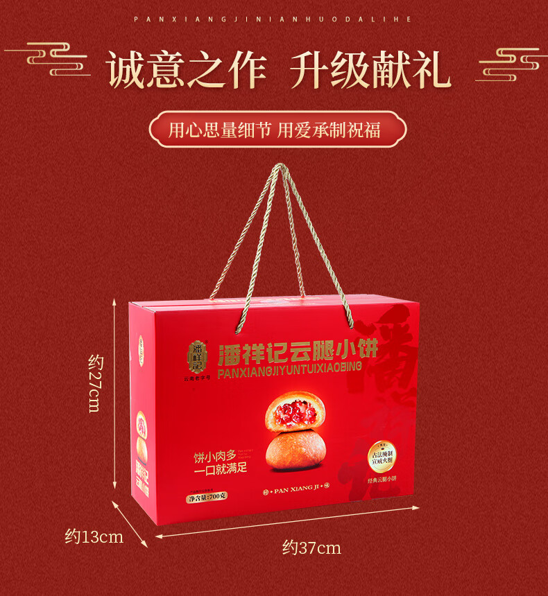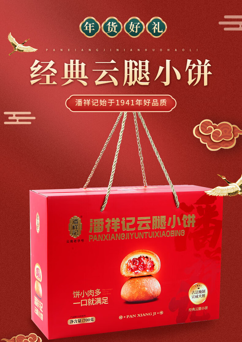潘祥记鲜花饼云腿小饼700g盒装28枚云南特产宣威云腿礼盒装 源头直发
