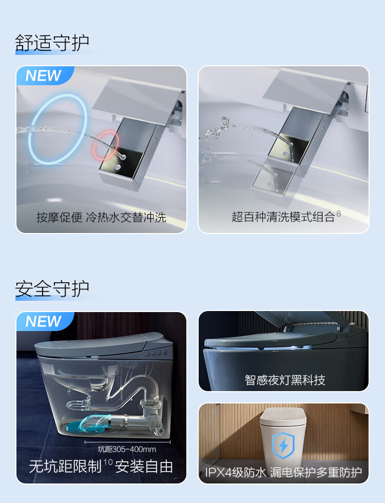 RESMO瑞摩带扶手智能马桶扶手智能坐便器老人老年人适老马桶 智护智能坐便器400坑距