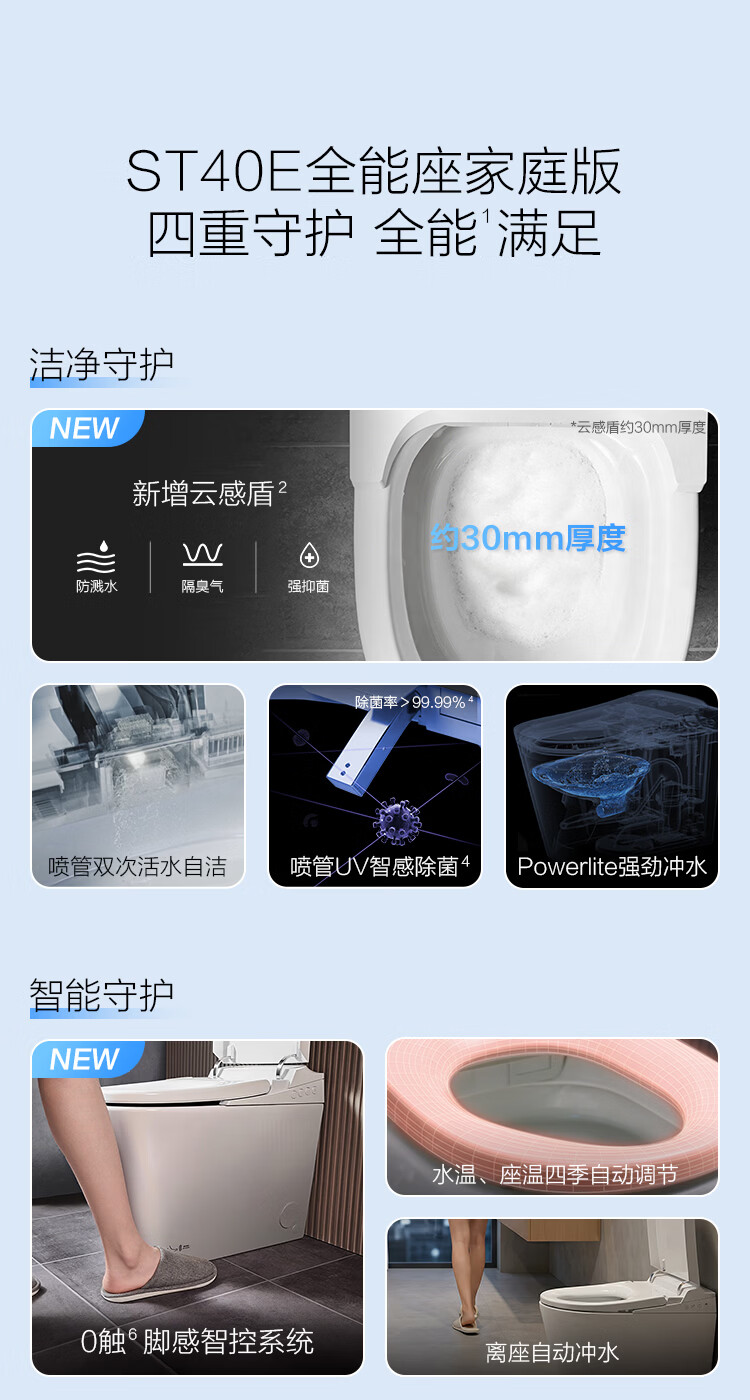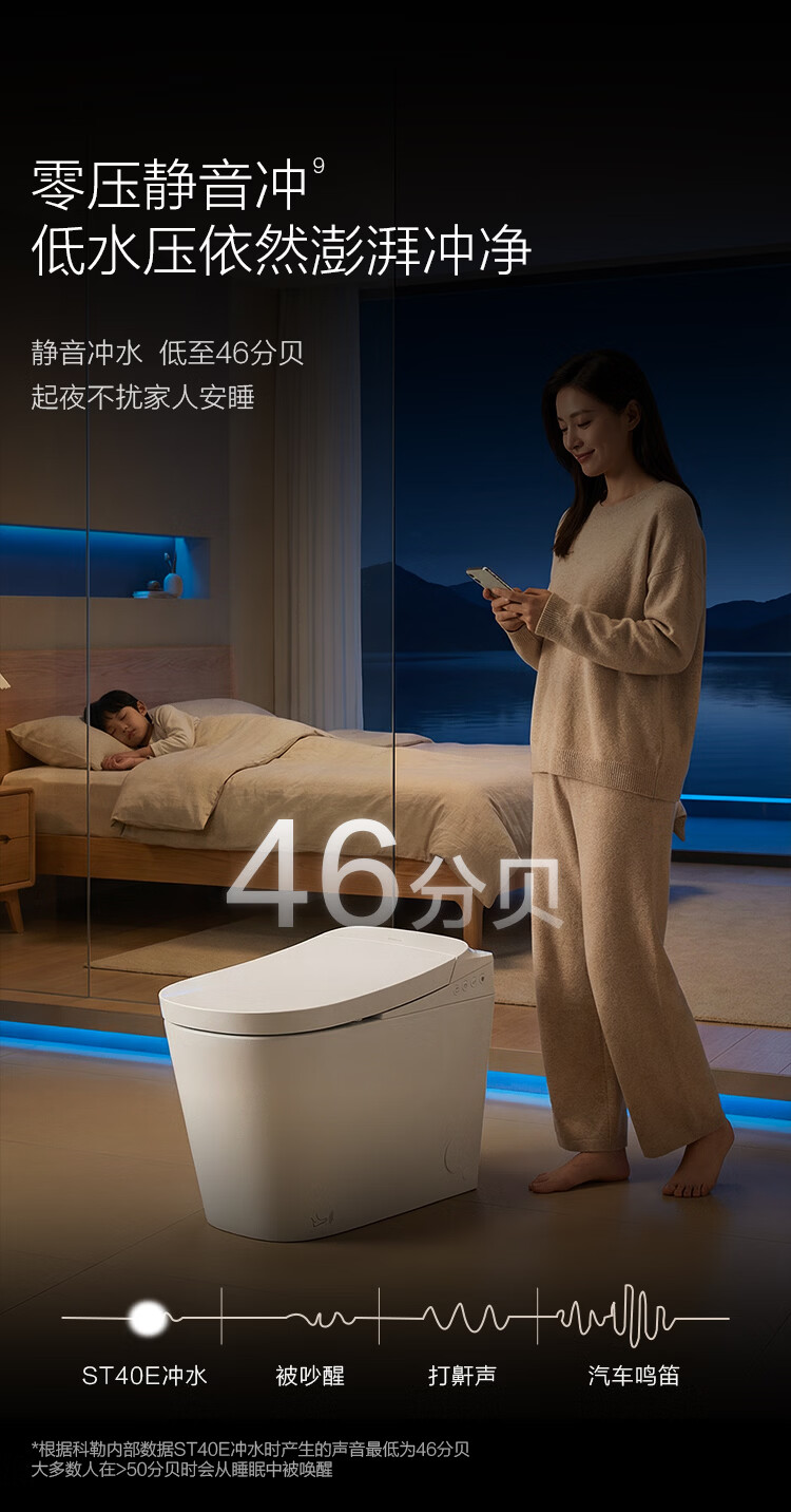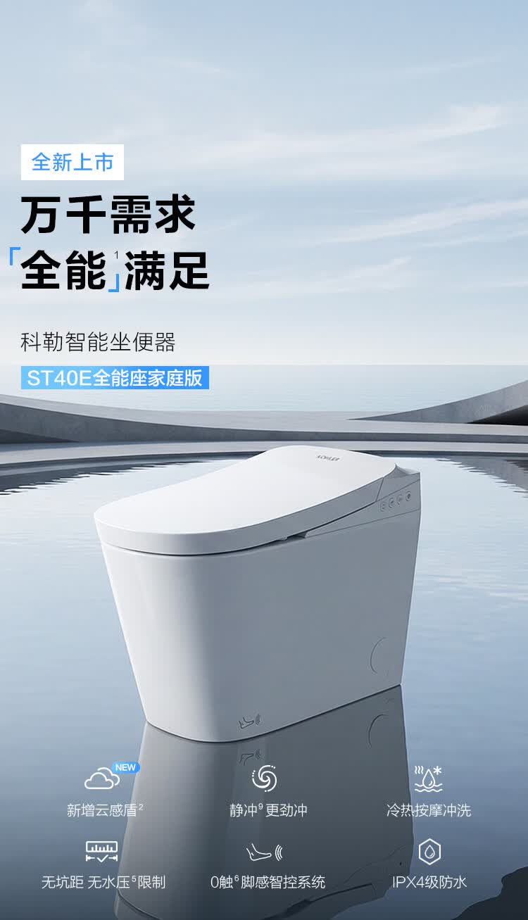 科勒(KOHLER)智能马桶ST40E全能座家庭版云感盾防溅抑菌带冲包安装无坑距