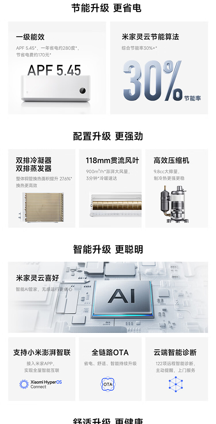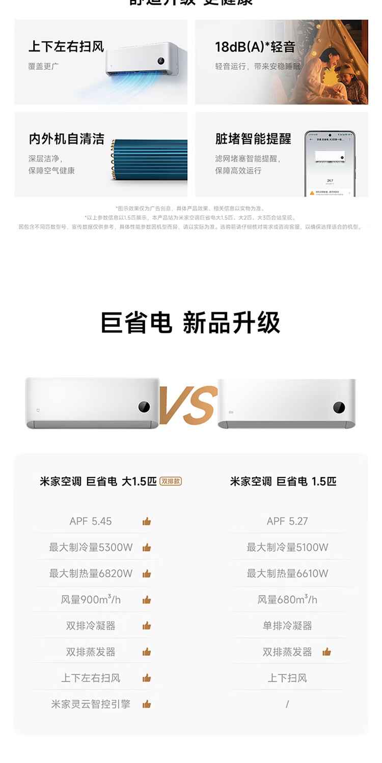 小米空调 巨省电 新一级能效变频冷暖壁挂式卧室智能空调挂机30S速冷60S速热 智慧清洁 国家补贴 巨省电 2026款 大1.5匹 双排冷凝器 APF5.45