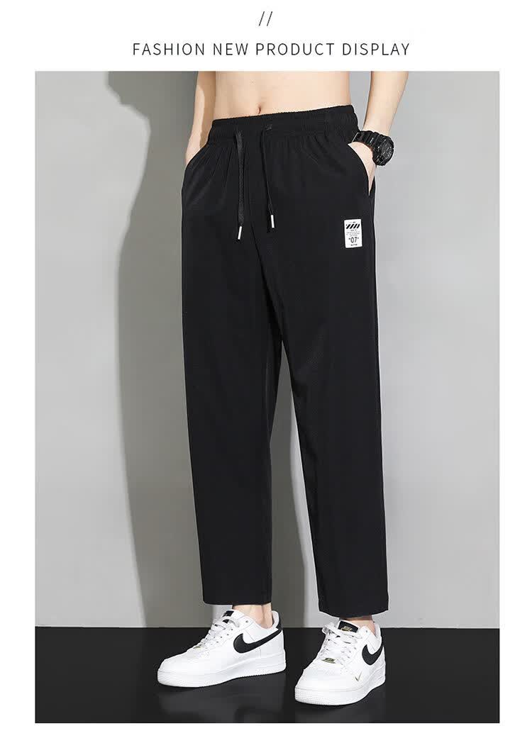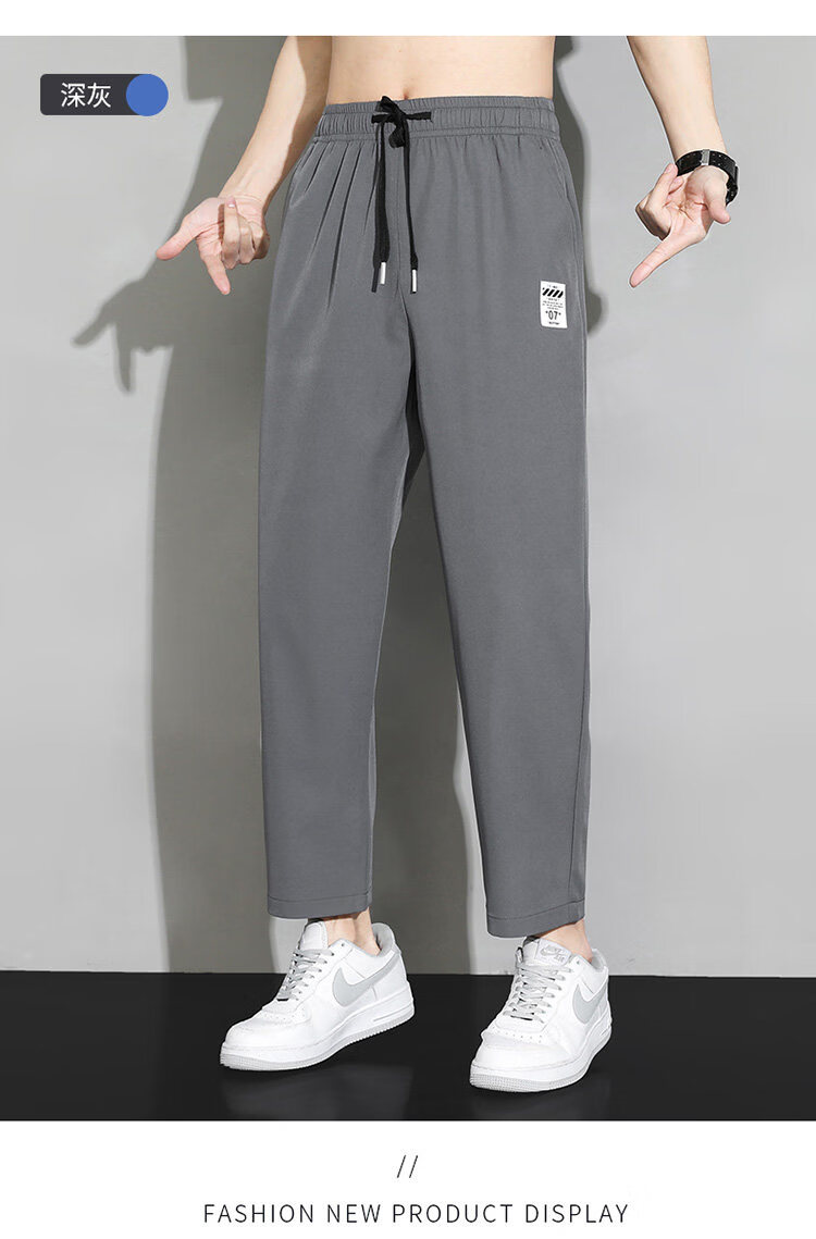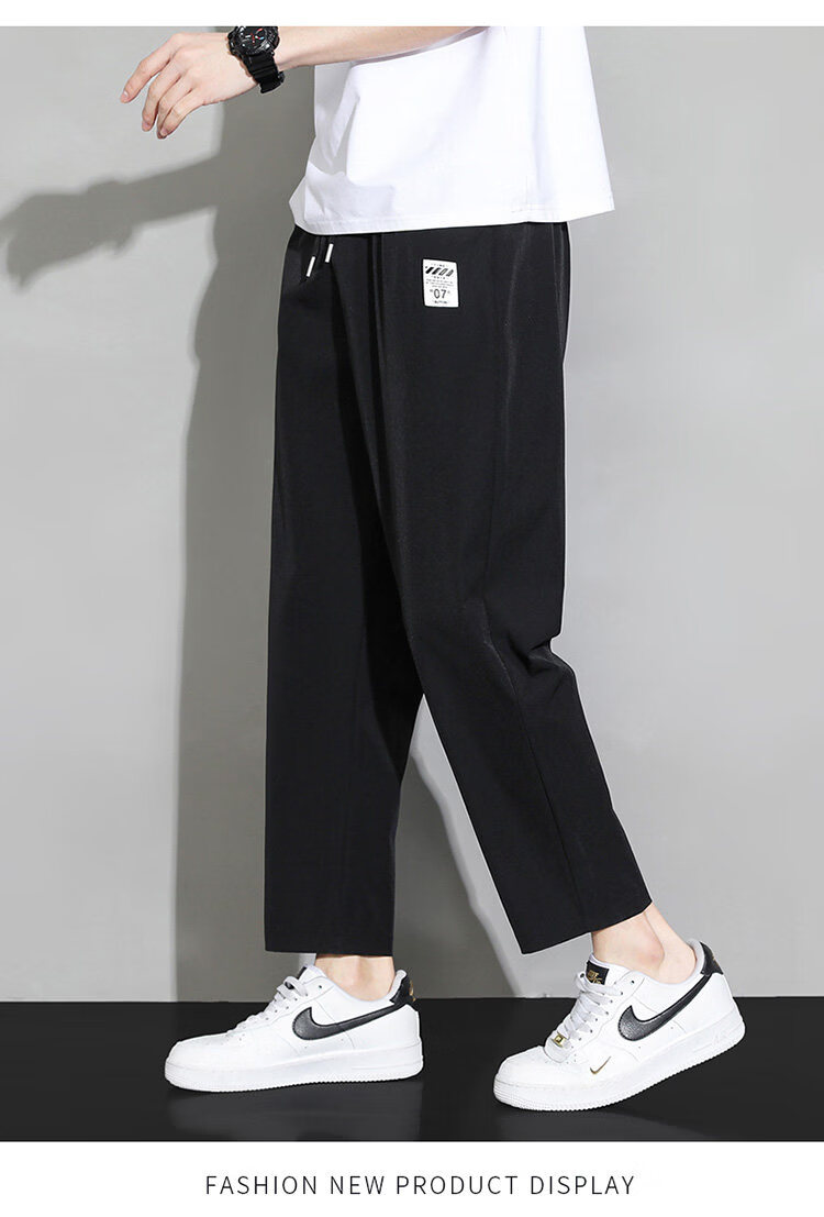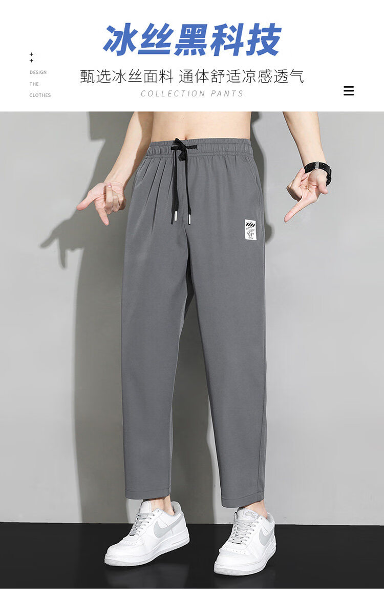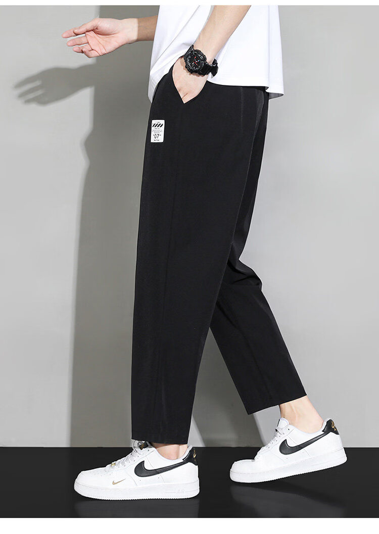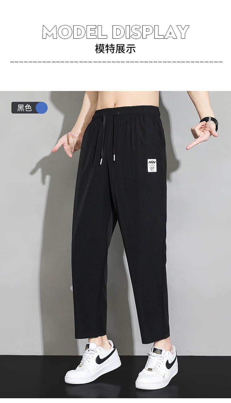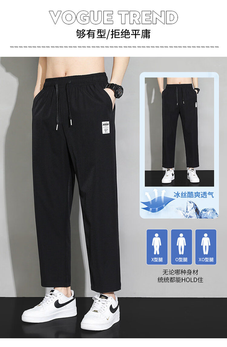猫人冰丝速干裤子男士夏季薄款宽松运动九分裤百搭直筒垂感阔腿休闲裤 31黑色 九分裤 M 建议90-110斤
