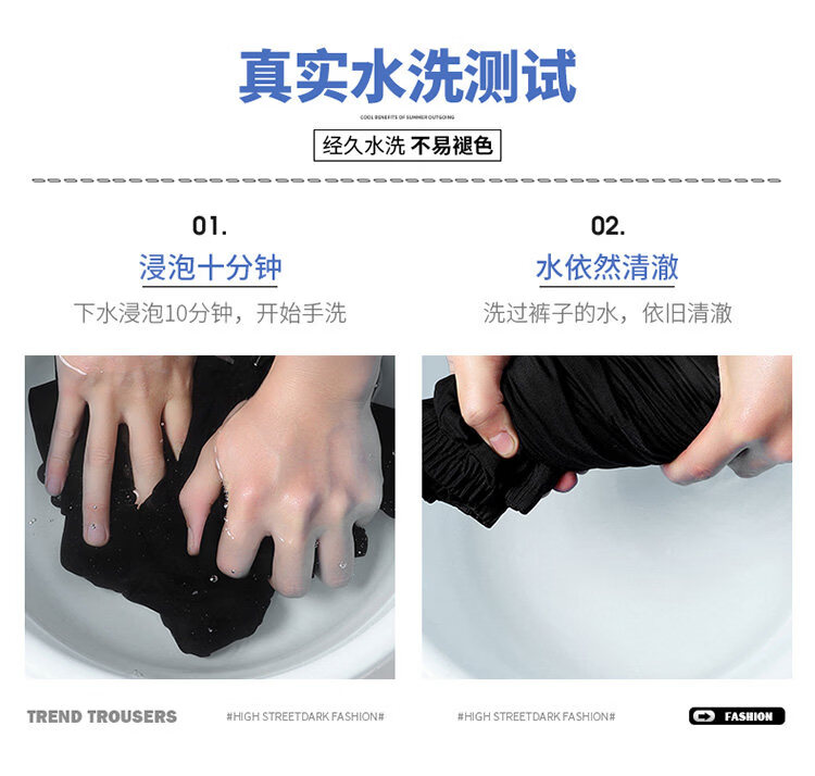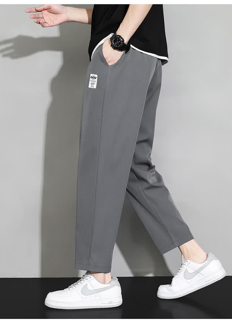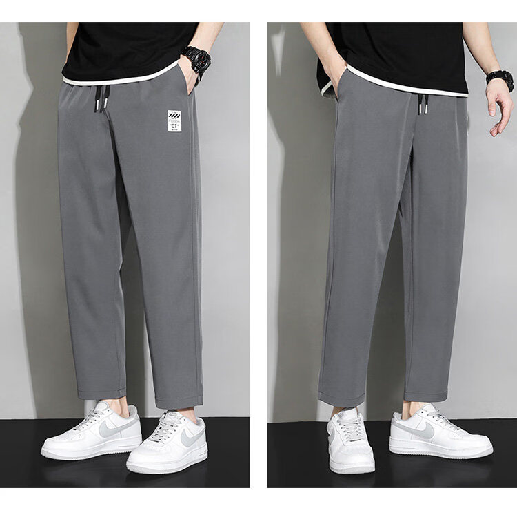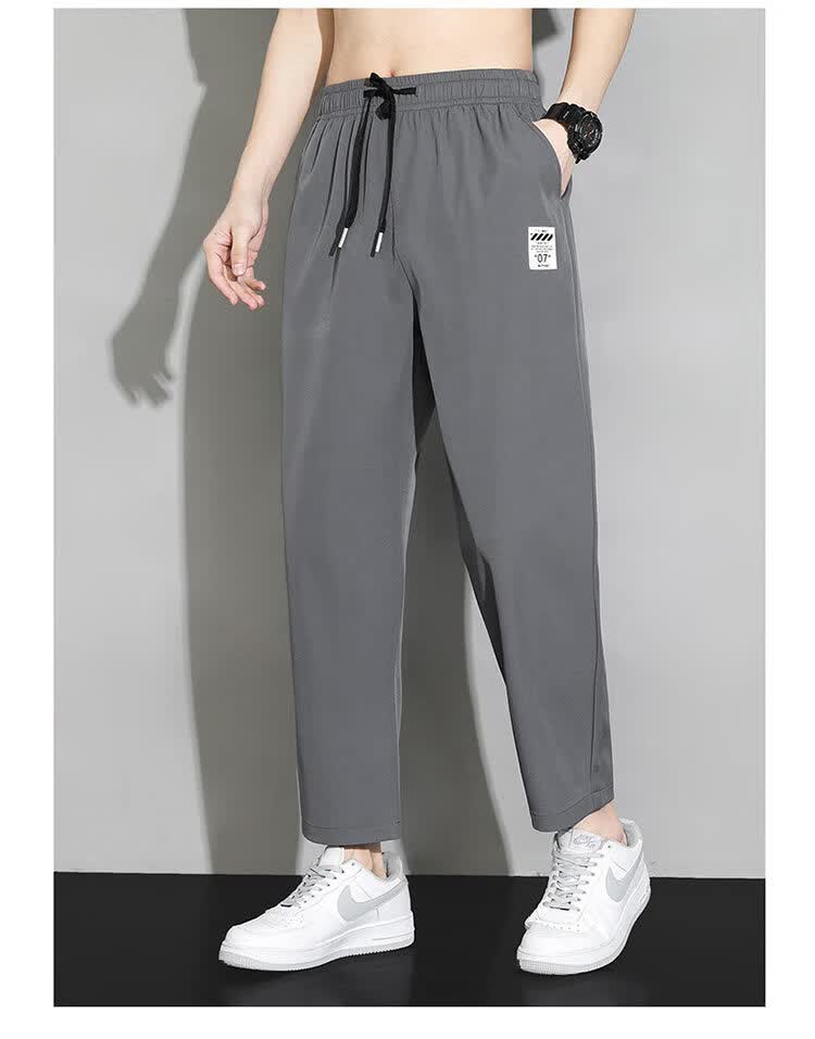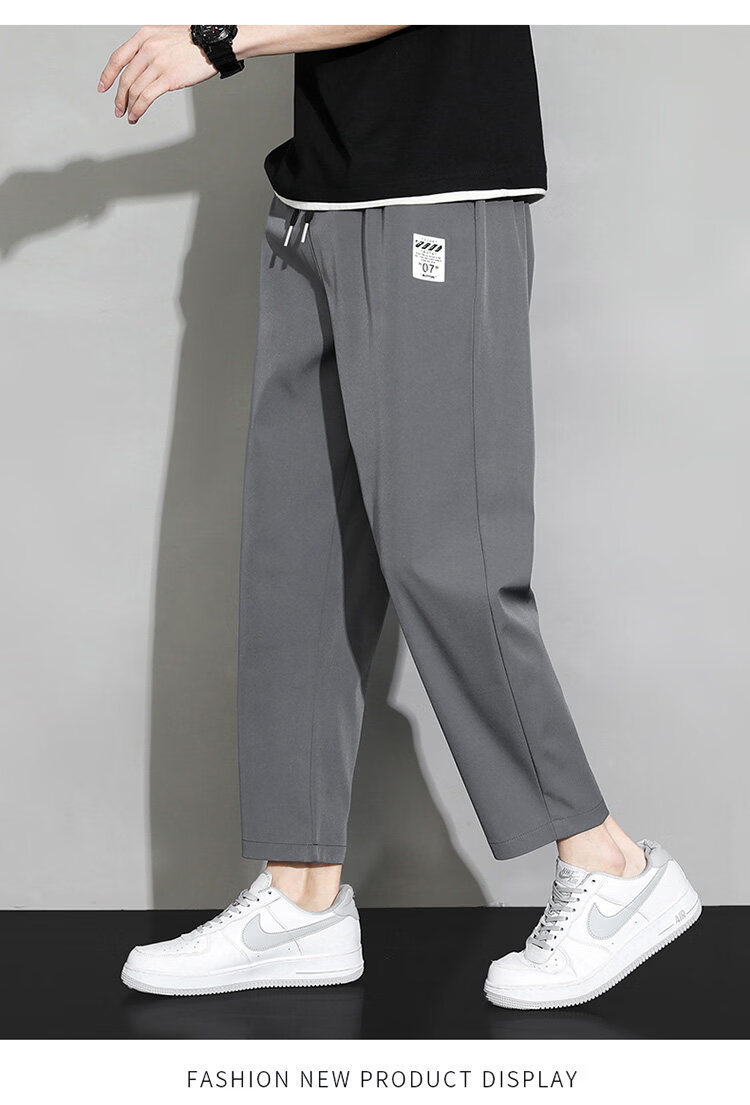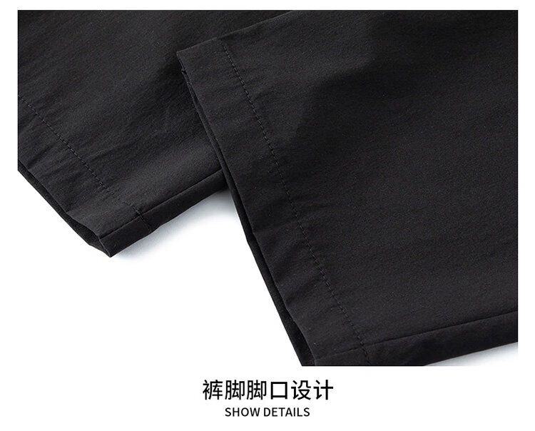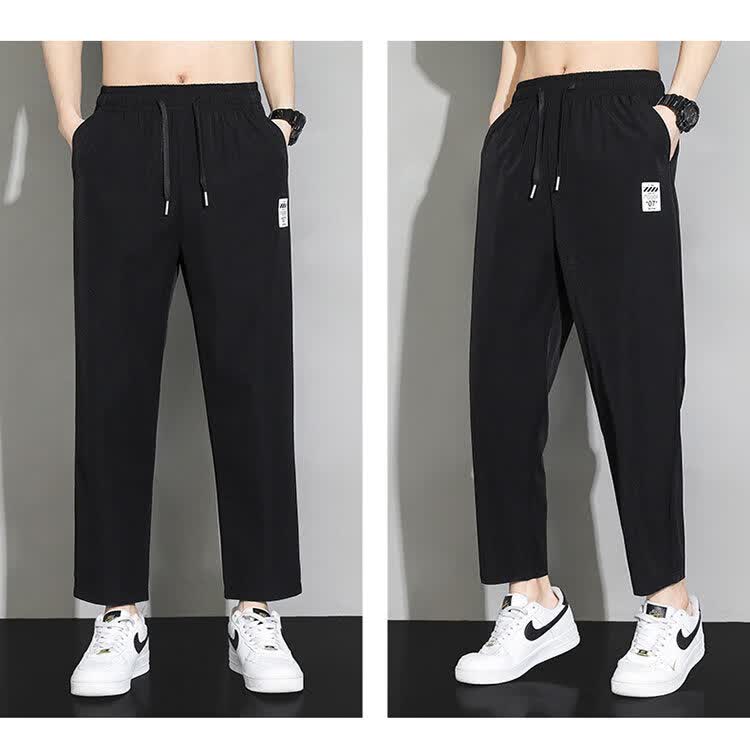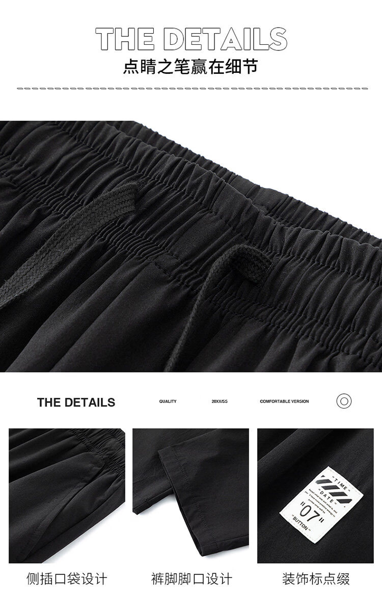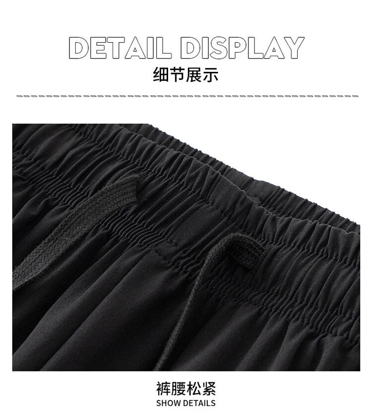 猫人冰丝速干裤子男士夏季薄款宽松运动九分裤百搭直筒垂感阔腿休闲裤 31黑色 九分裤 M 建议90-110斤