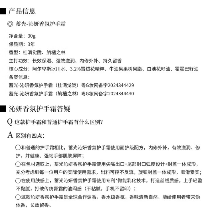 屈臣氏蓄光沁妍香氛护手霜 桂满觉陇 30g
