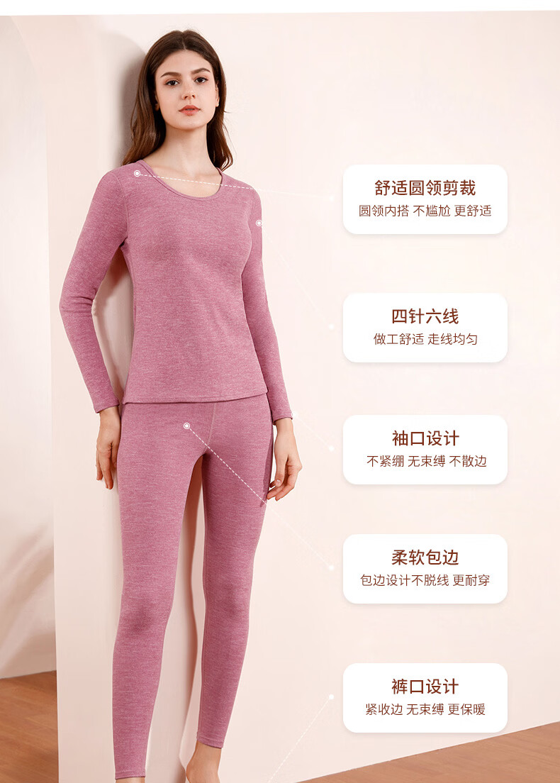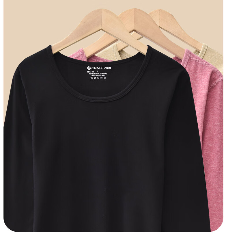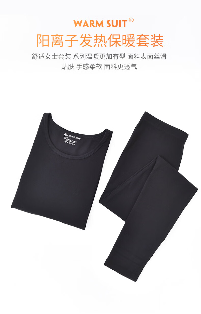 洁丽雅女士保暖内衣圆领套装舒适柔软透气阳离子发热保暖秋衣秋裤套装 黑色 【适合-5~10℃】 L 【80-100斤】