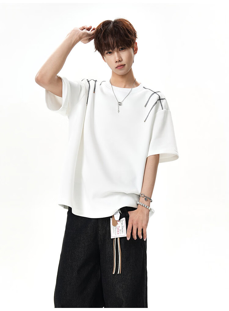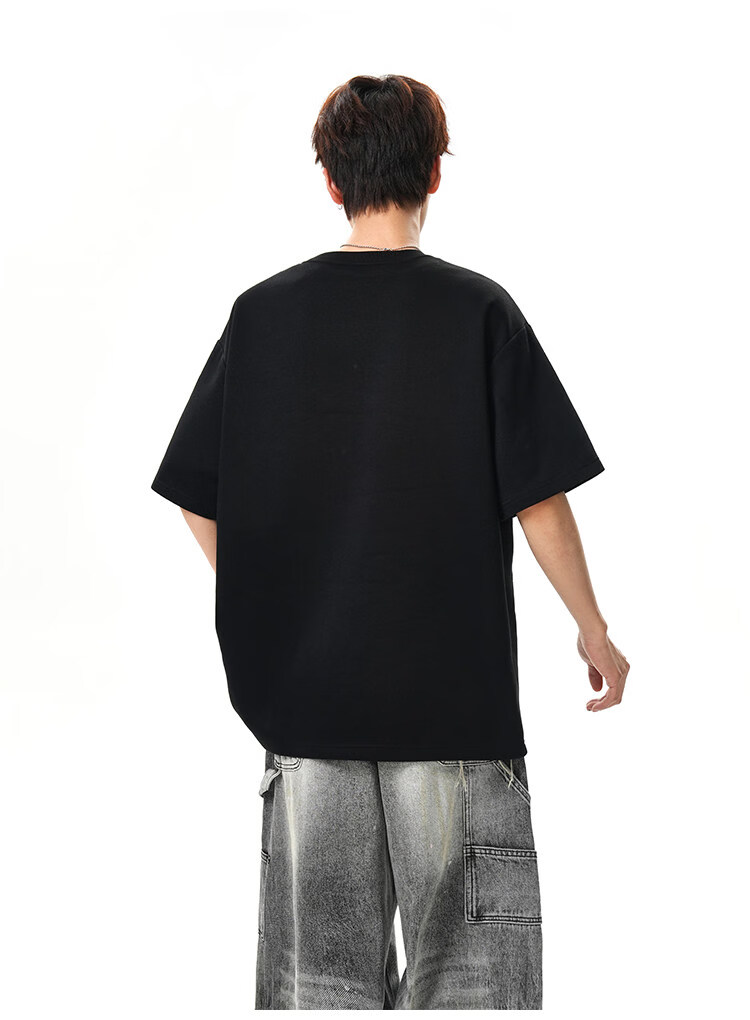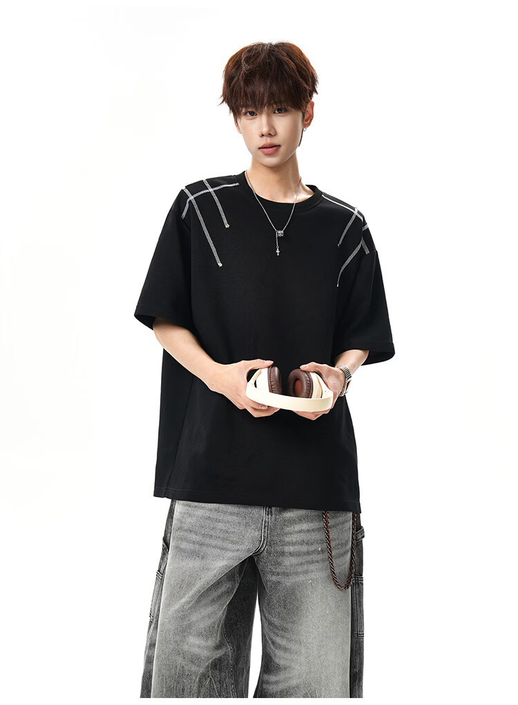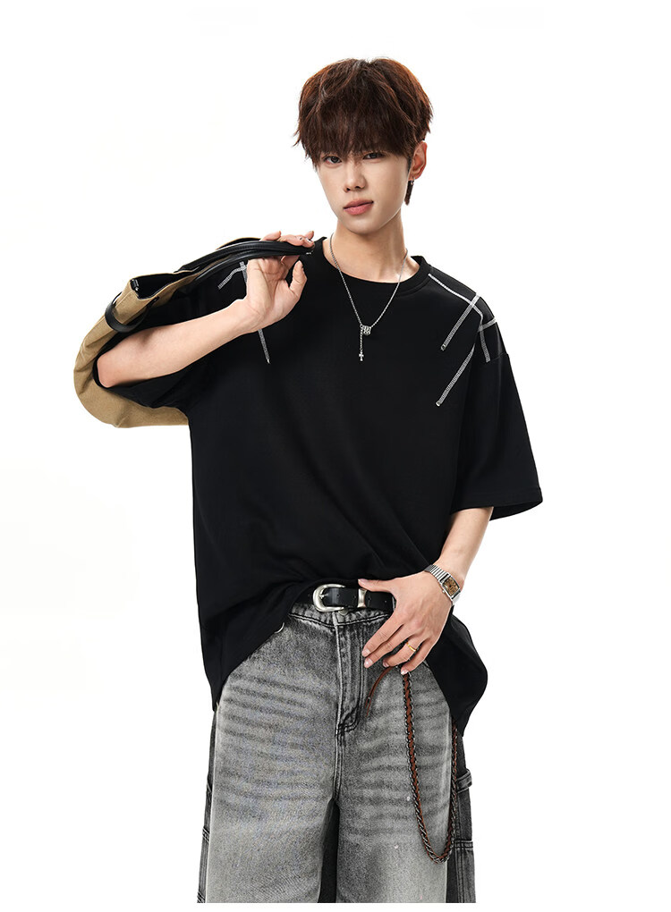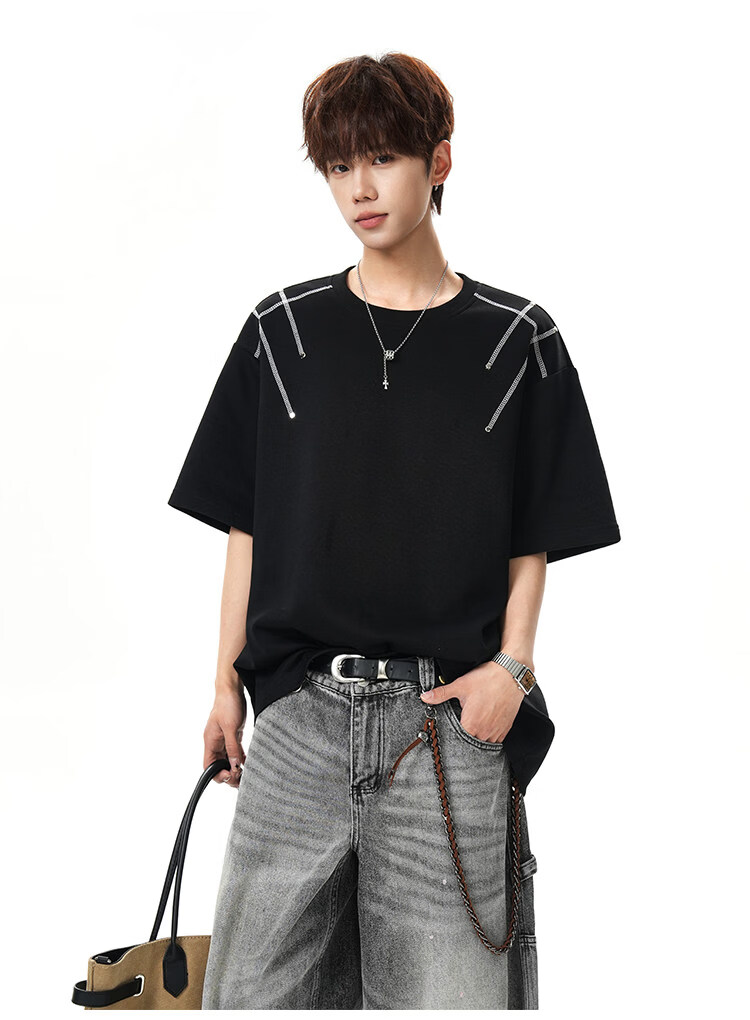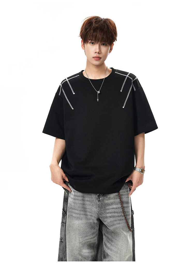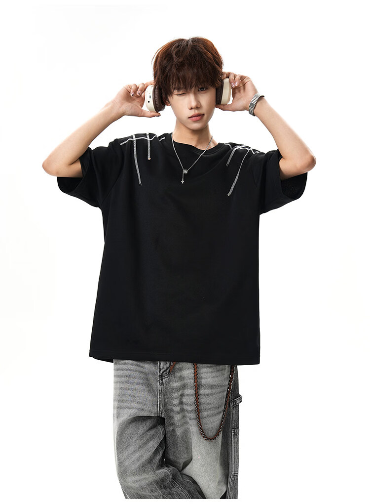 NEW OR MODE重磅哈苏线铆钉短袖t恤男夏季宽松高街痞帅青少年百搭情侣打底衫 黑色【高品质】 XL 【建议125-145斤】