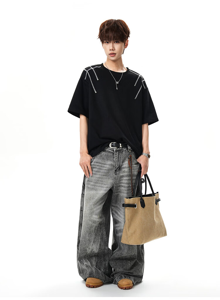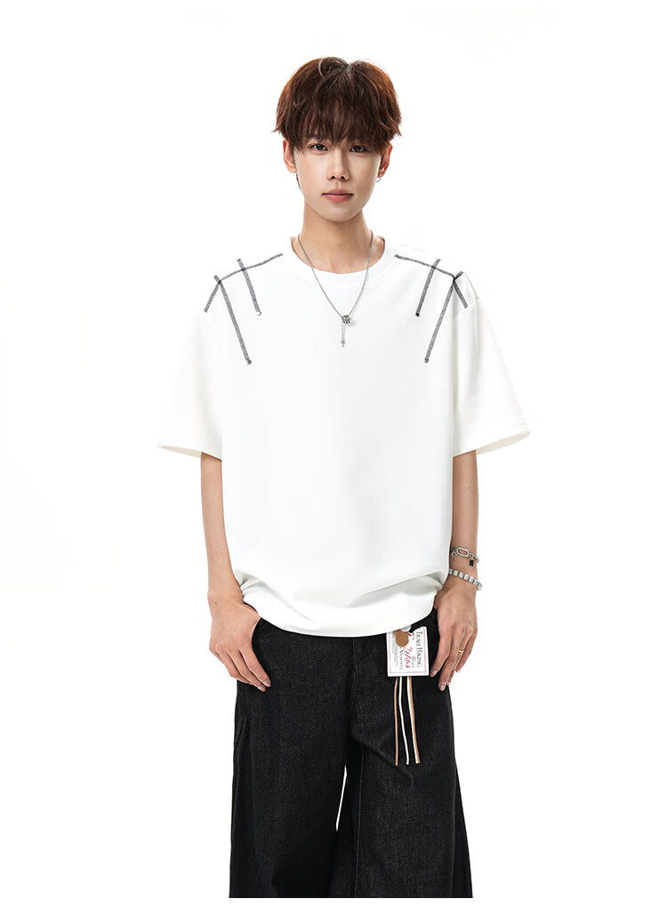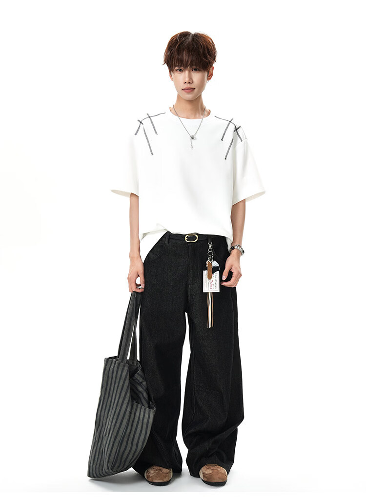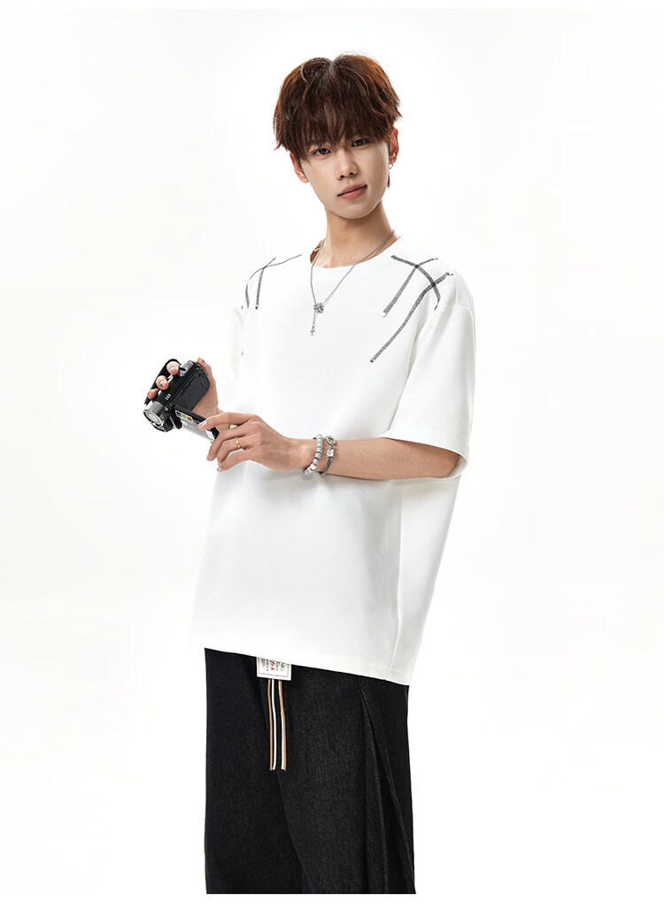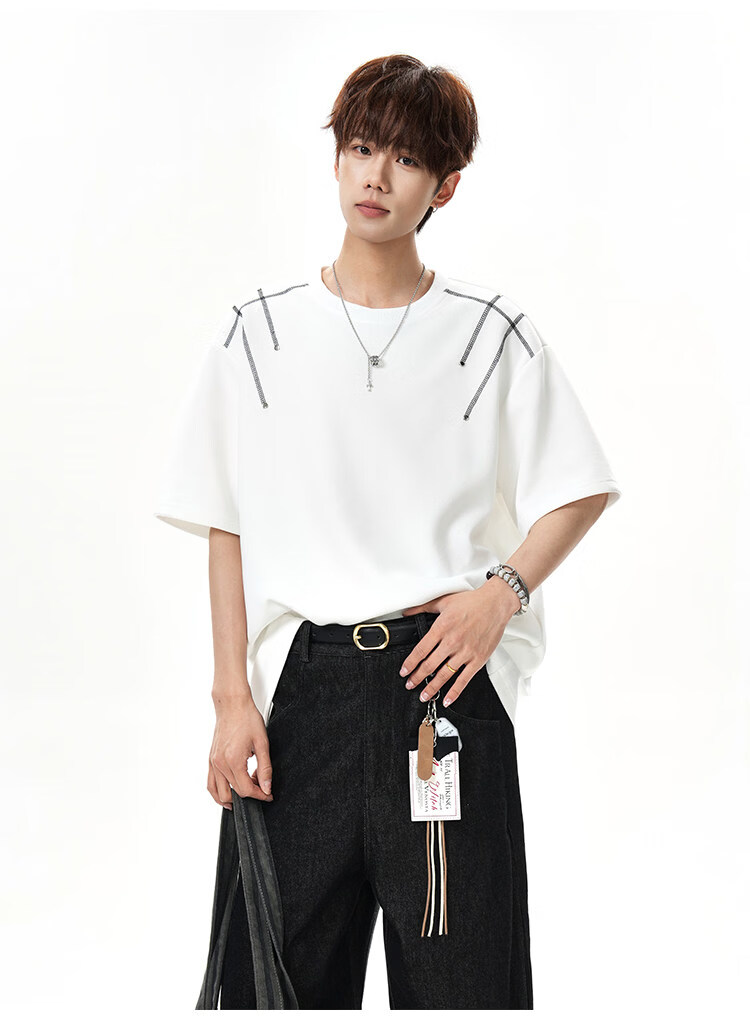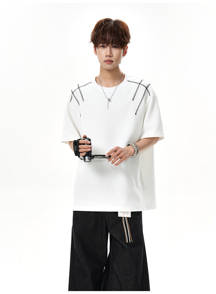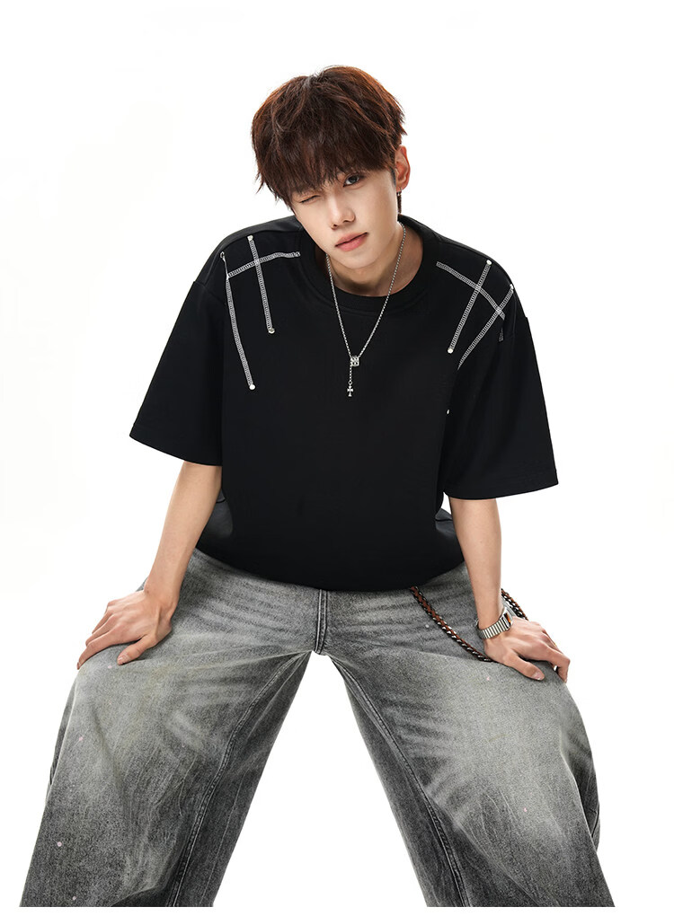 NEW OR MODE重磅哈苏线铆钉短袖t恤男夏季宽松高街痞帅青少年百搭情侣打底衫 黑色【高品质】 XL 【建议125-145斤】
