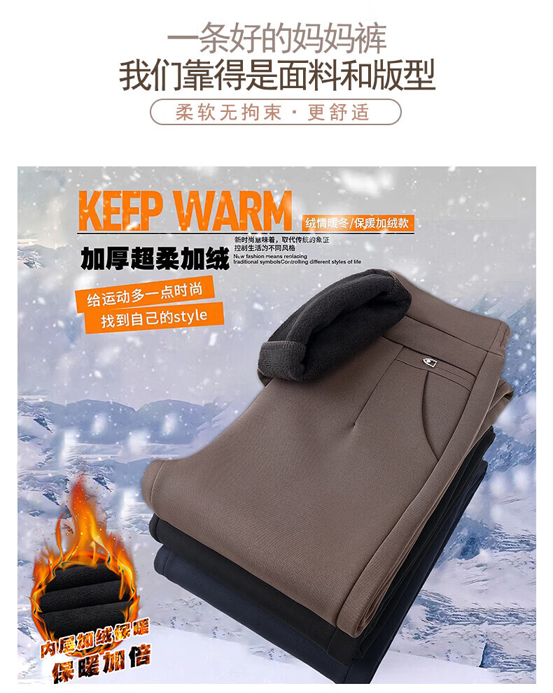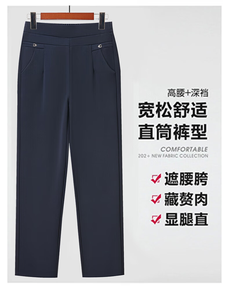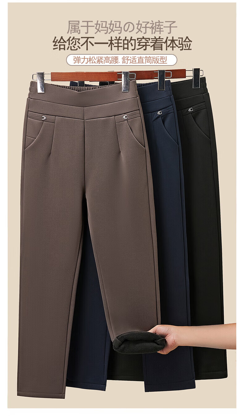 情罗兰(QINGLUOLAN)妈妈裤子秋冬款50到60岁冬季加绒加厚中老年女裤高腰直筒裤长裤女 藏青色 加绒 XL 建议100斤内