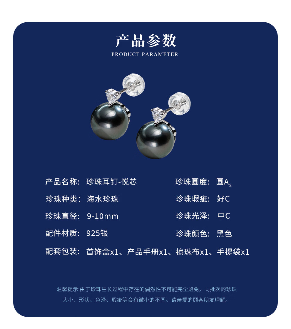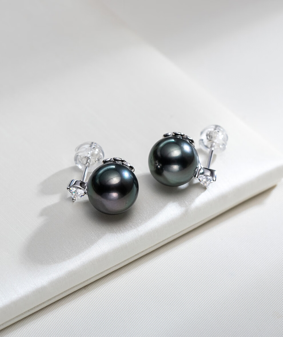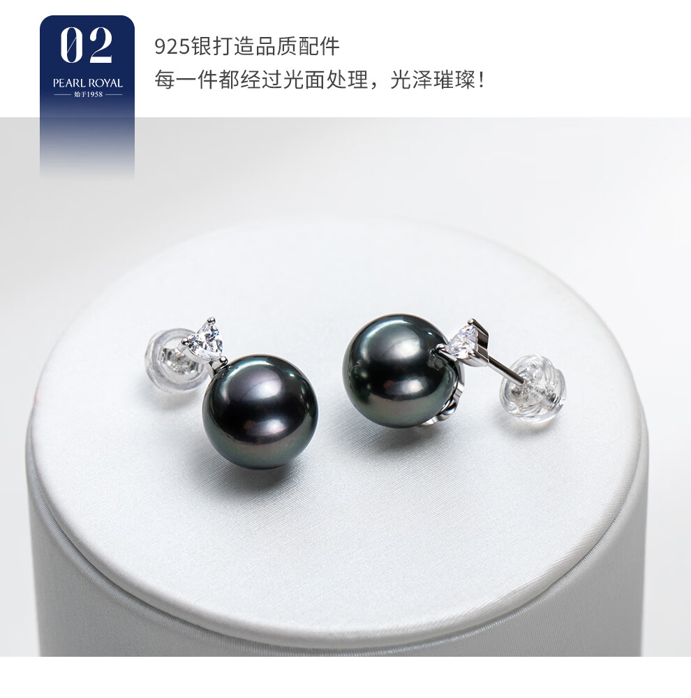 南珠宫悦芯大溪地黑珍珠耳钉轻奢百搭高级感新年礼物送老婆 9.0-10.0mm 925银海水珍珠耳环