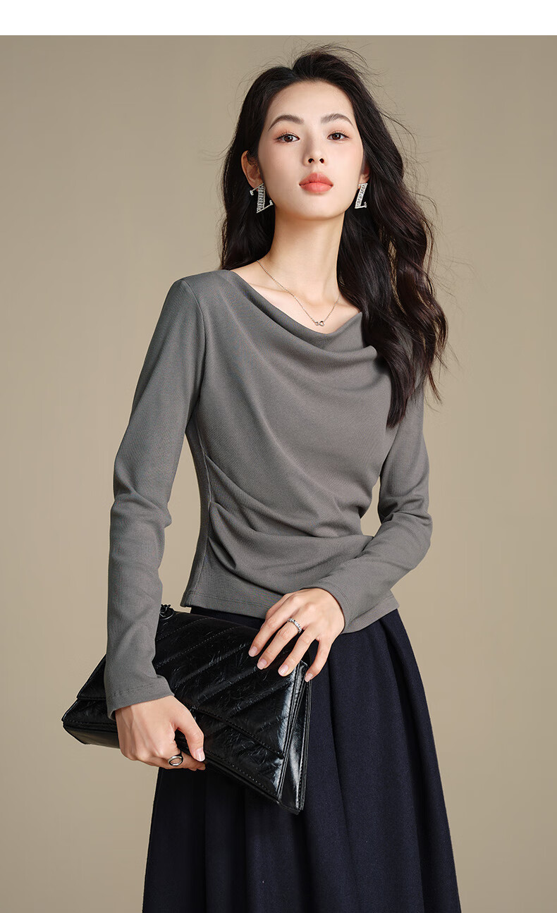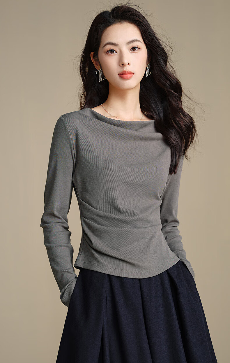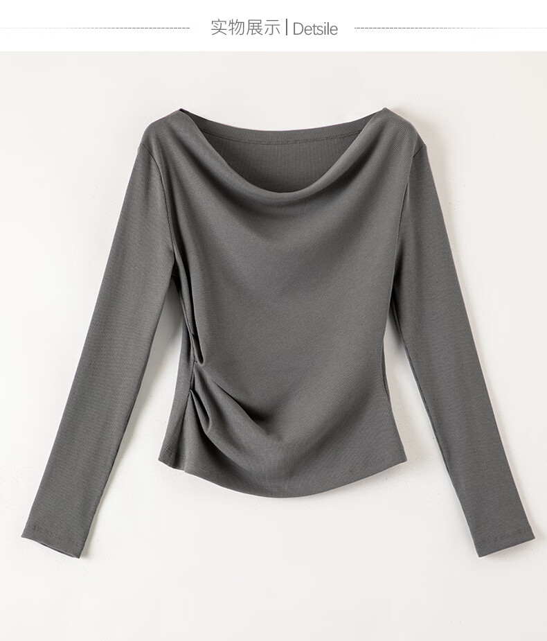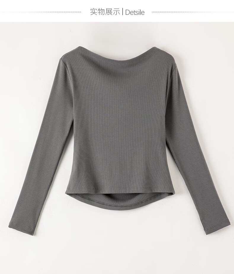 晚白2026春款内搭可外穿叠穿荡领上衣气质温柔百搭棉质打底衫女 灰色 XL