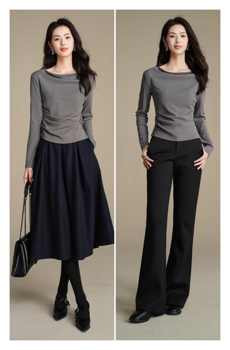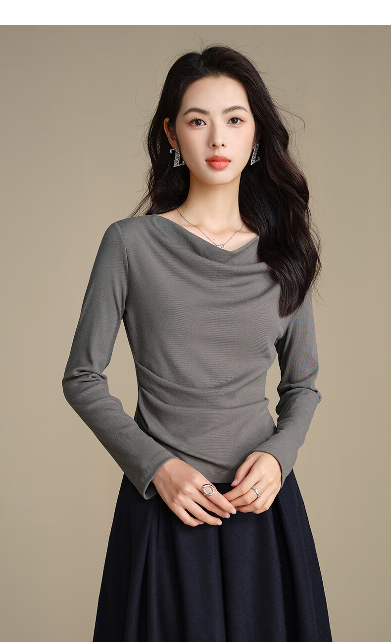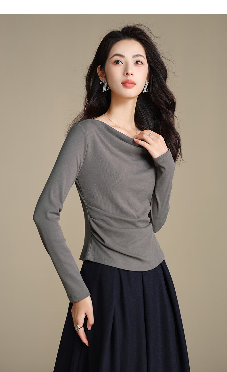 晚白2026春款内搭可外穿叠穿荡领上衣气质温柔百搭棉质打底衫女 灰色 XL