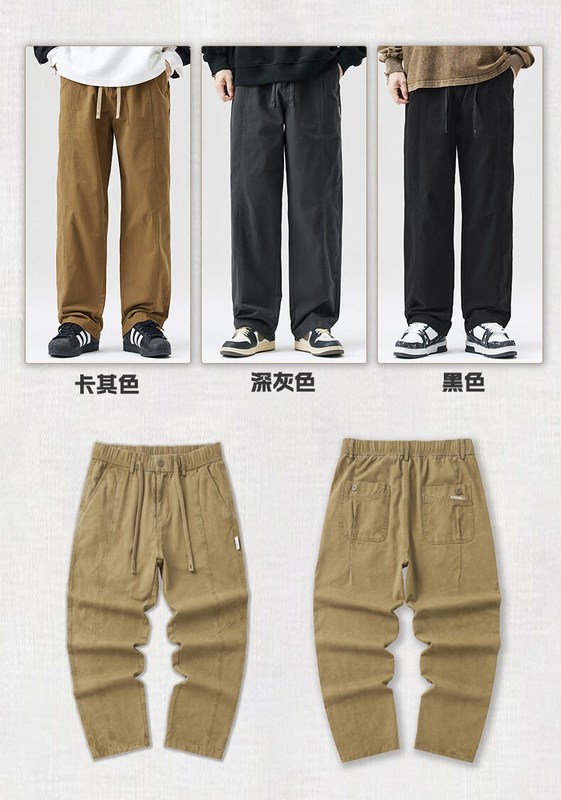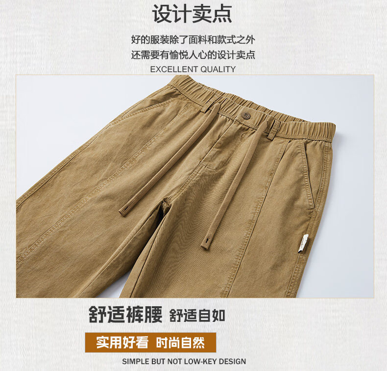 真维斯(Jeanswest)2026春季新款舒适松紧男士直筒裤宽松百搭简约潮牌男款休闲长裤子 905卡其色 M