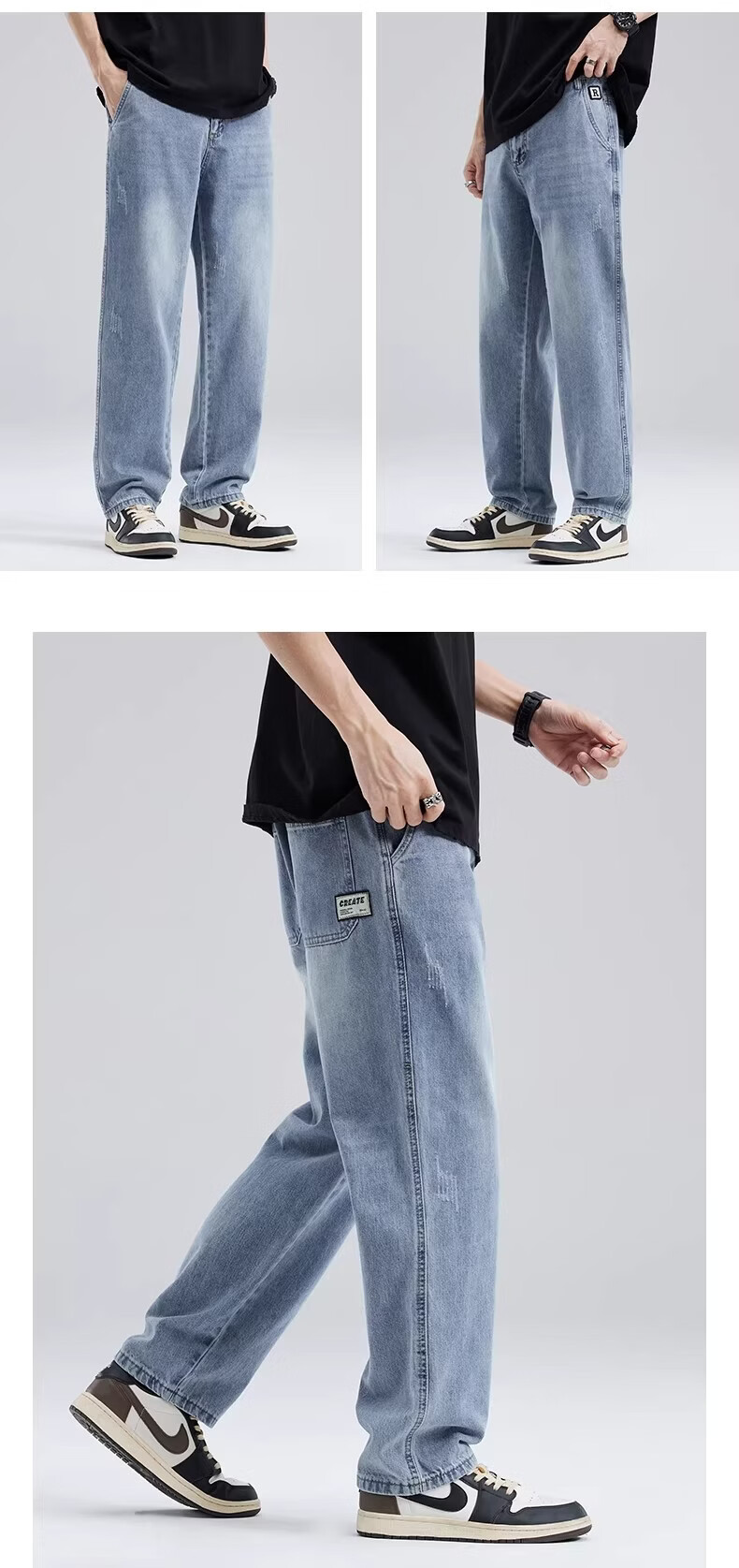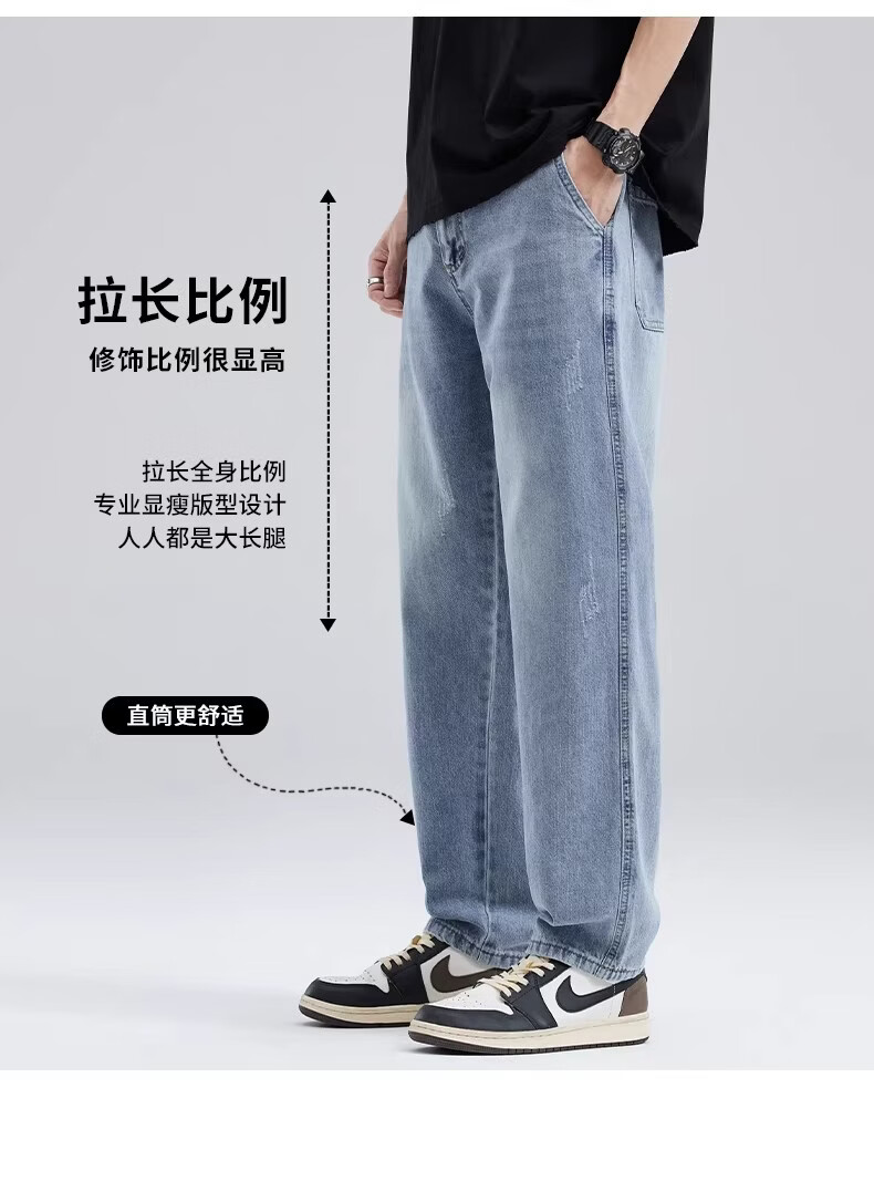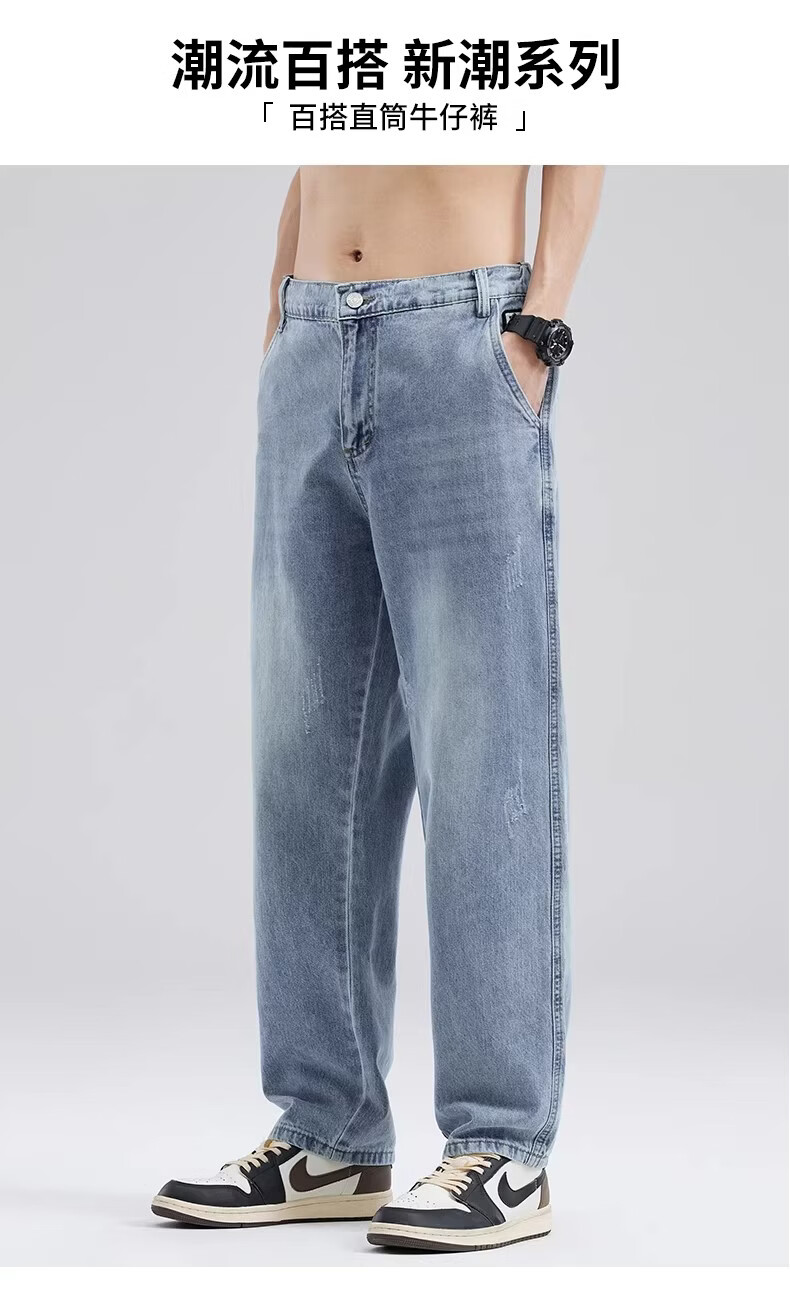 真维斯浅色牛仔裤男士直筒宽松休闲长裤2026新款春季潮牌男生垂感阔腿裤 浅蓝色 S