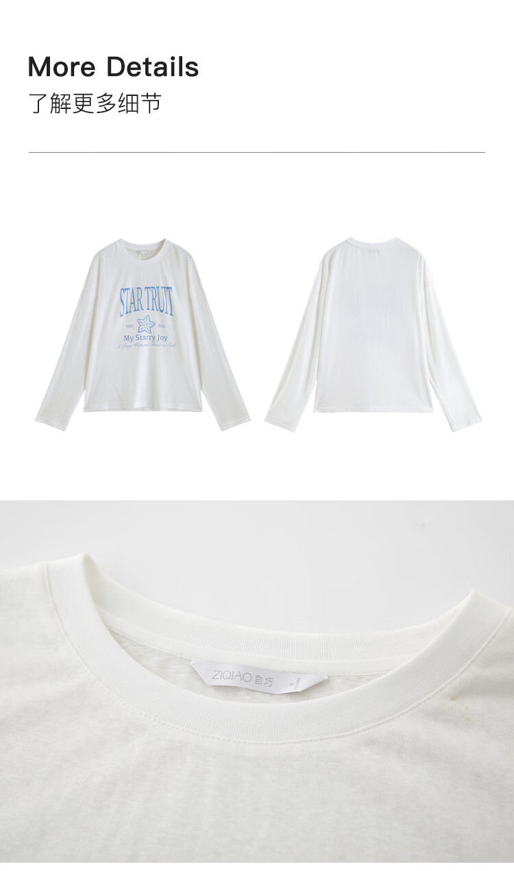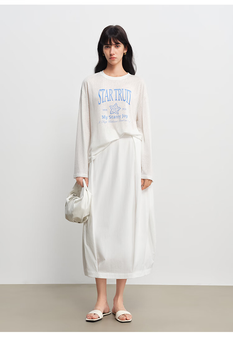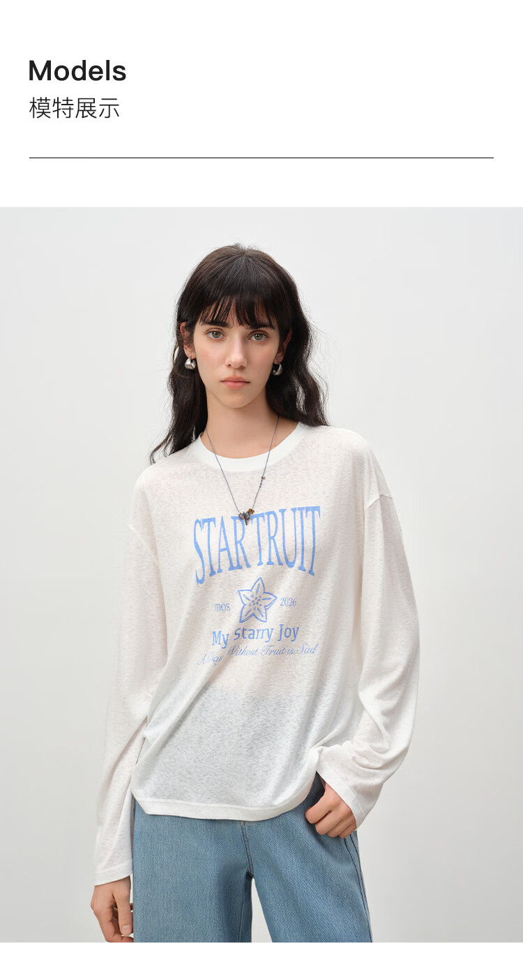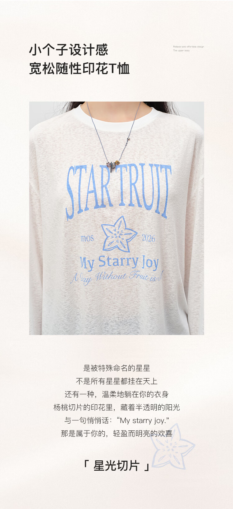 自巧【星光切片】小个子宽松天丝亚麻印花T恤上衣女2026春季新品 雅白色 XXS (尺码:1)