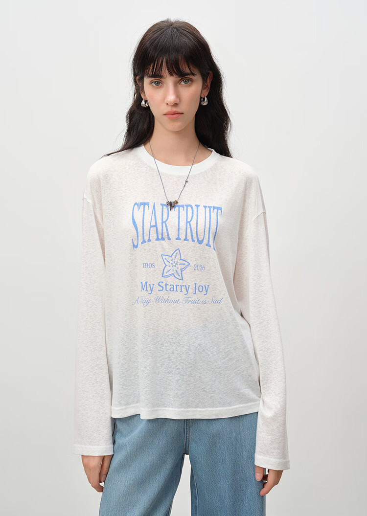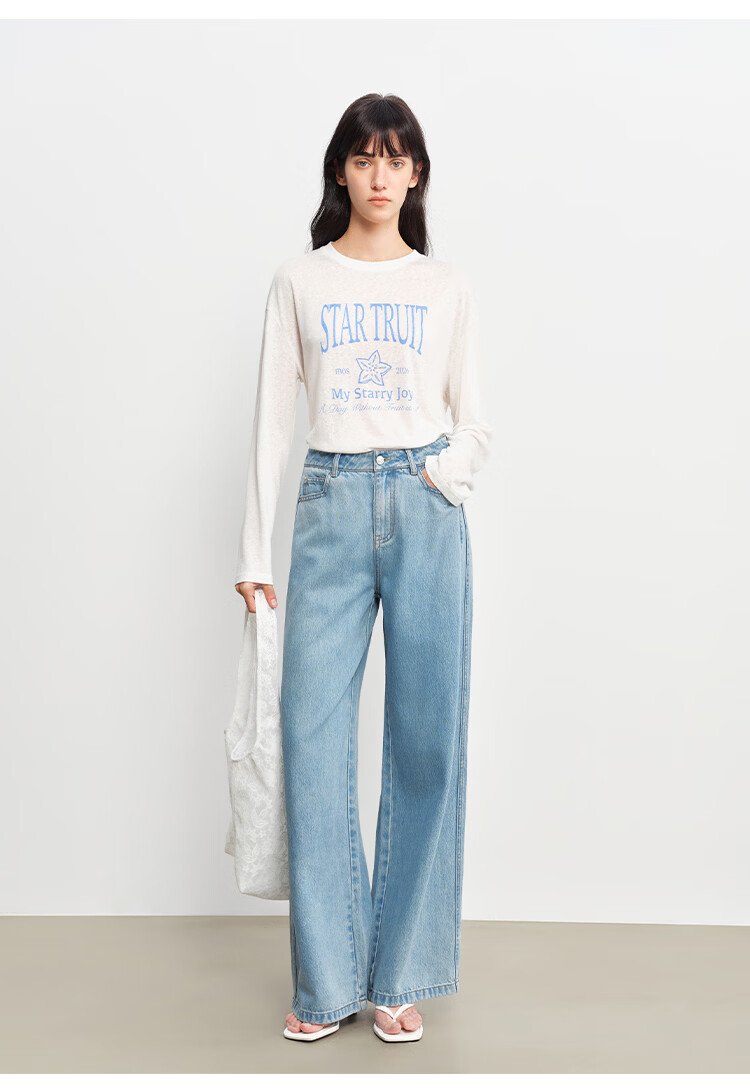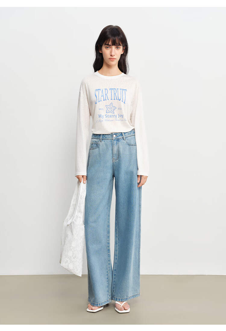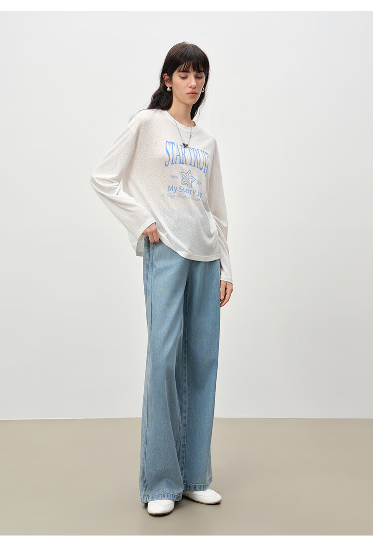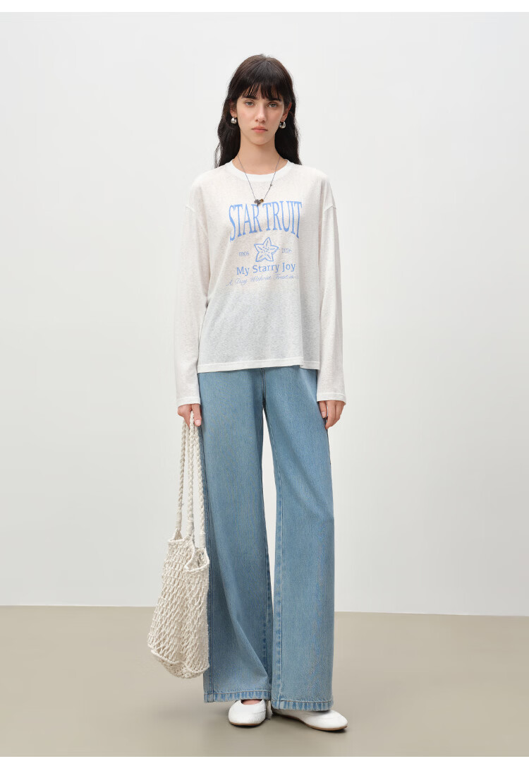 自巧【星光切片】小个子宽松天丝亚麻印花T恤上衣女2026春季新品 雅白色 XXS (尺码:1)
