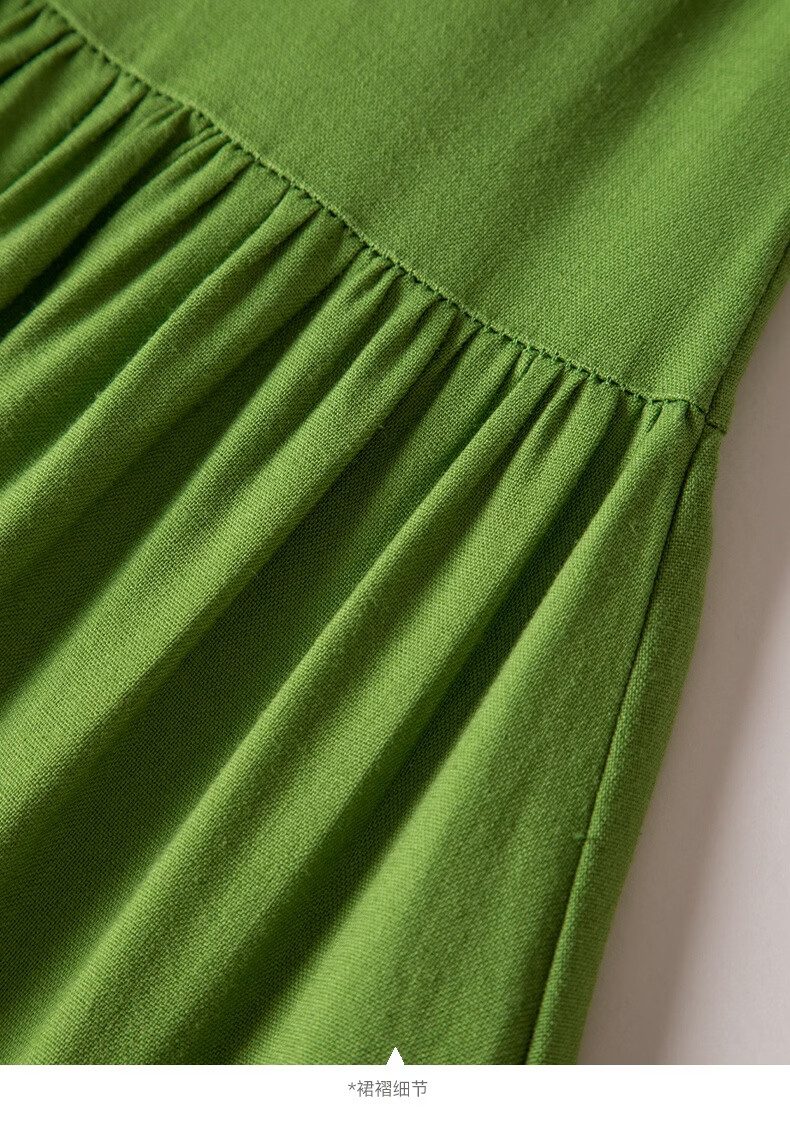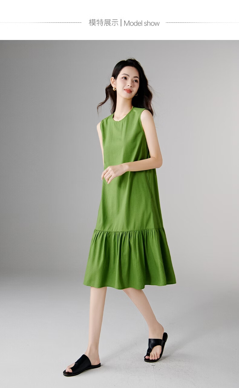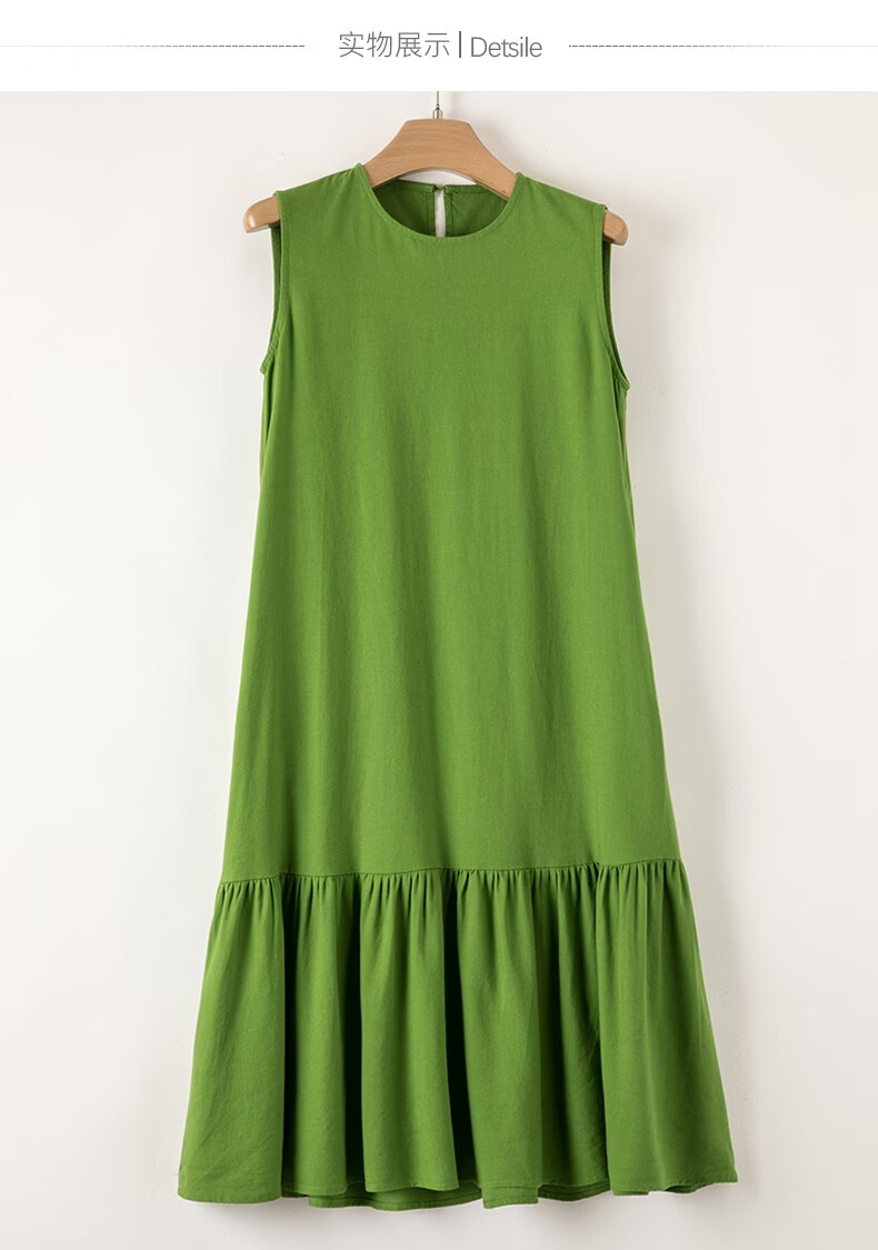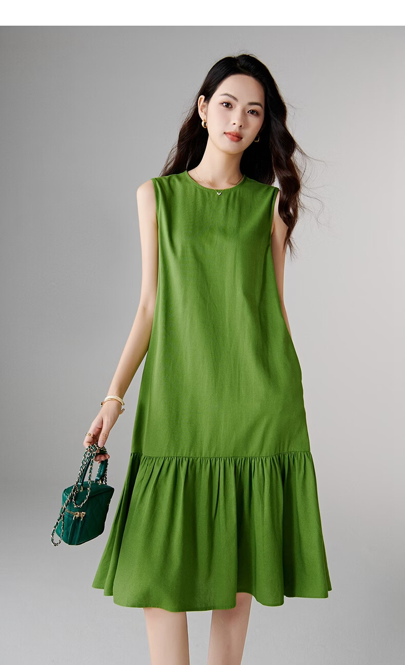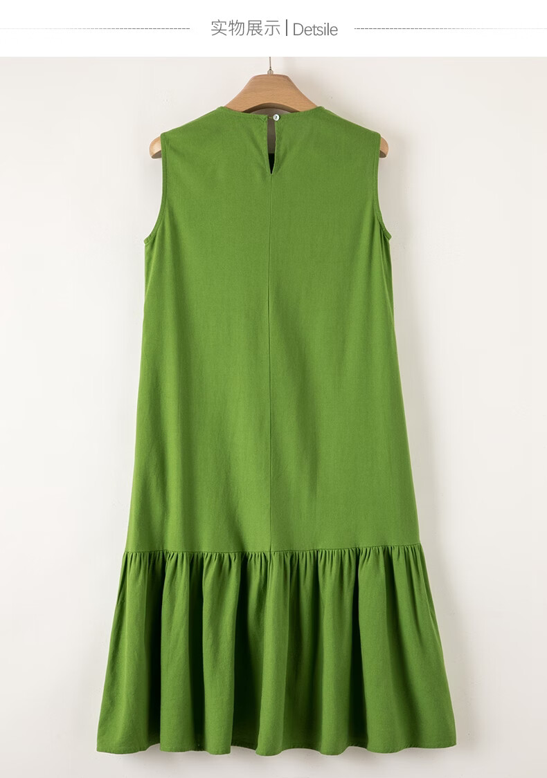 晚白【新品】2026年春款时尚棉麻裙子宽松舒适休闲无袖连衣裙 绿色 S