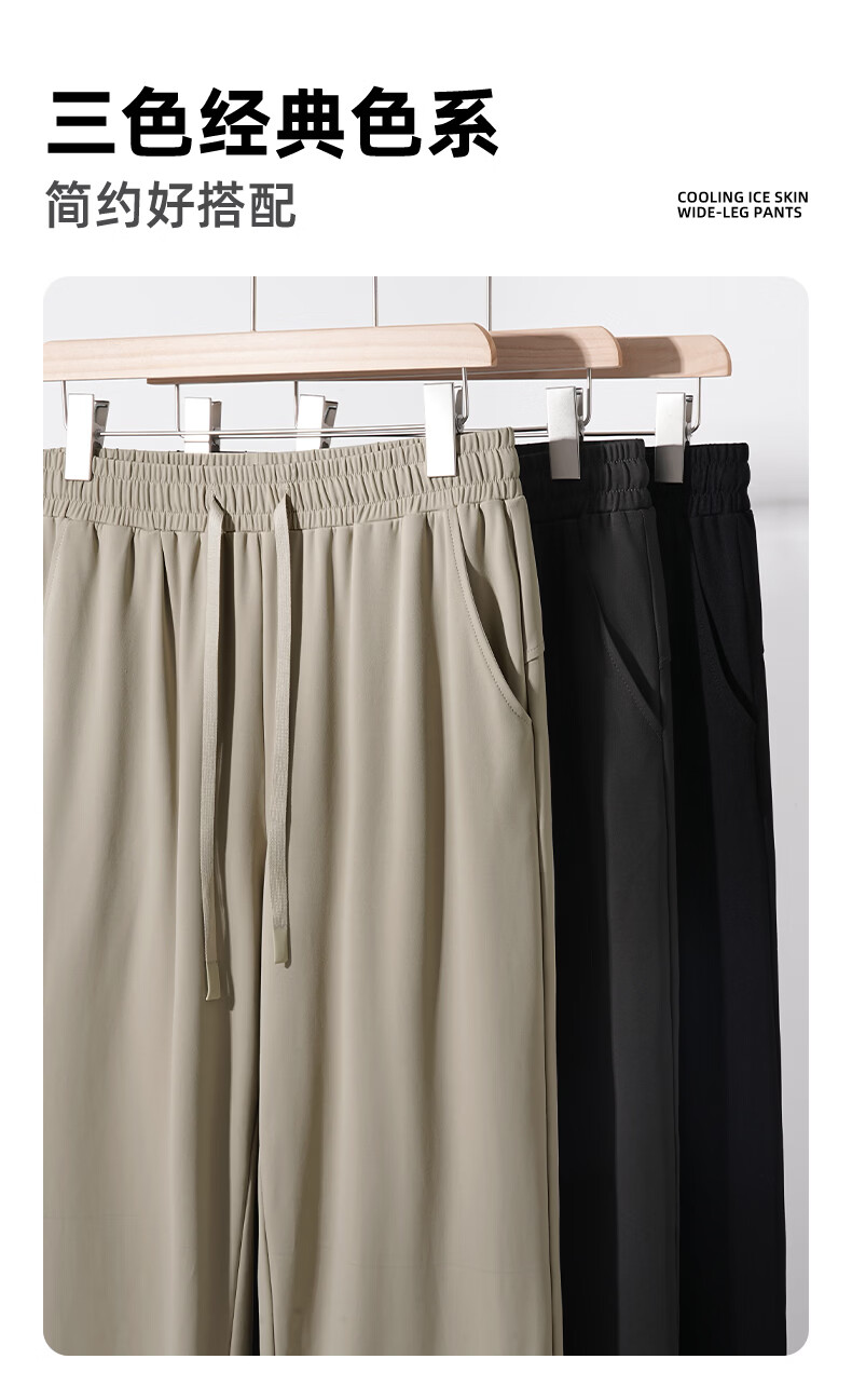 真维斯(Jeanswest)冰丝凉感休闲直筒裤男款2026新款夏季防晒速干长裤宽松运动阔腿裤 卡其 男孩和小狗_K M
