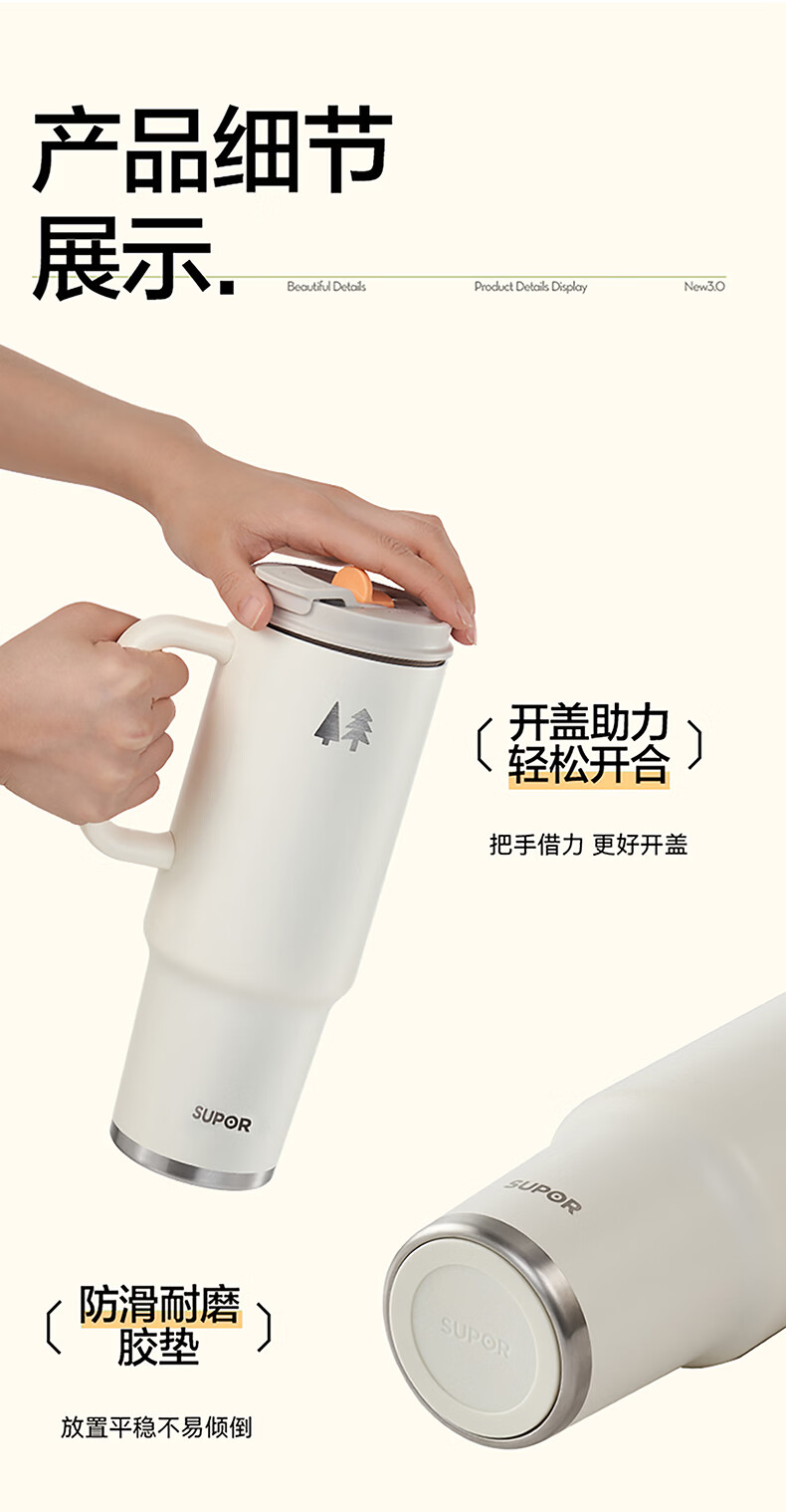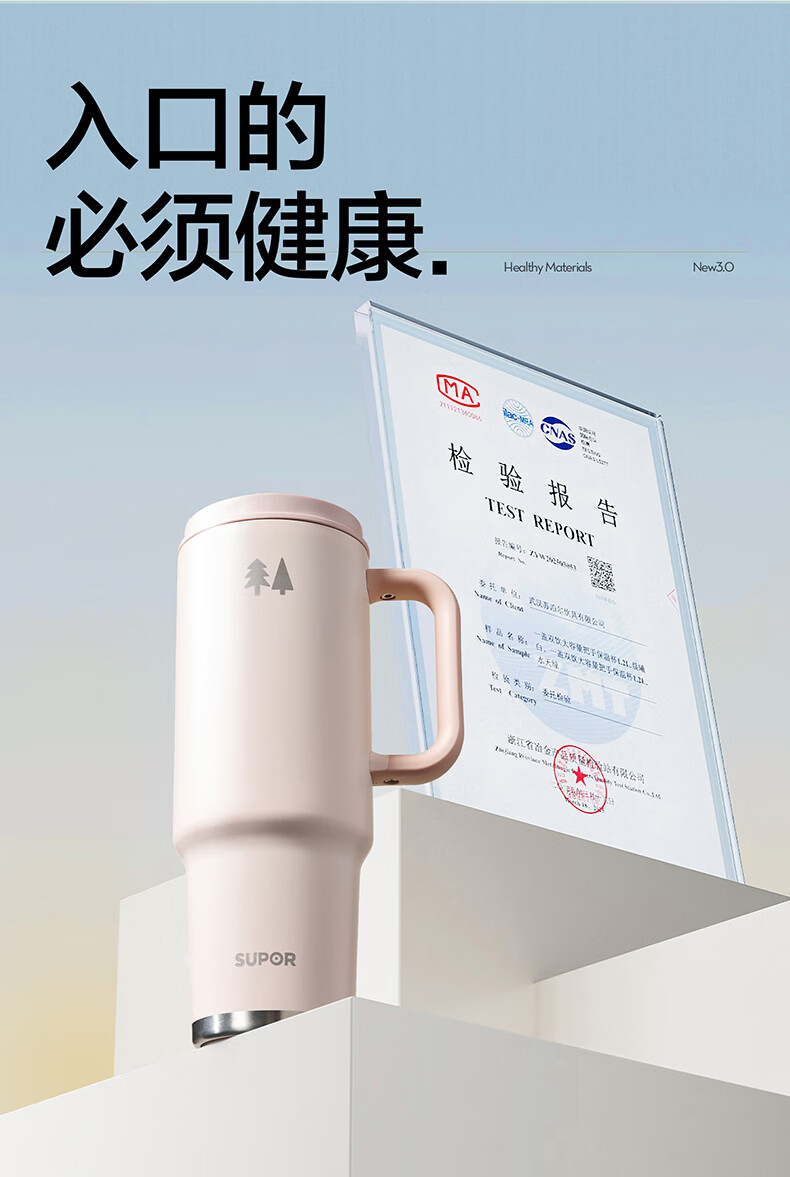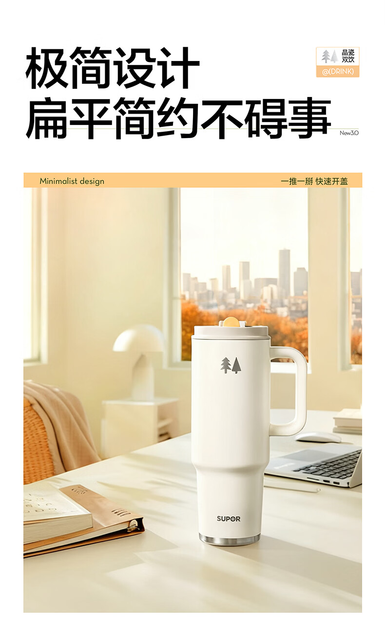 苏泊尔(SUPOR)冰霸杯陶瓷双饮保冷保温杯高颜值吸管杯大容量水杯2026新品 林间绿1200ml赠杯刷+吸管刷+杯贴