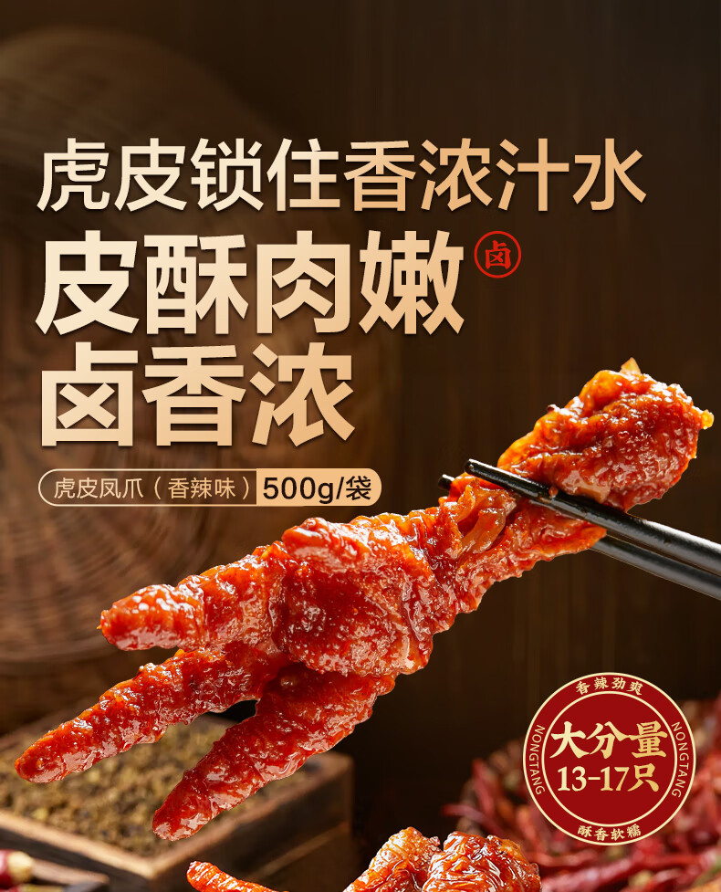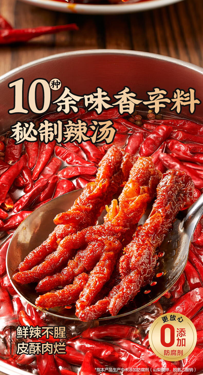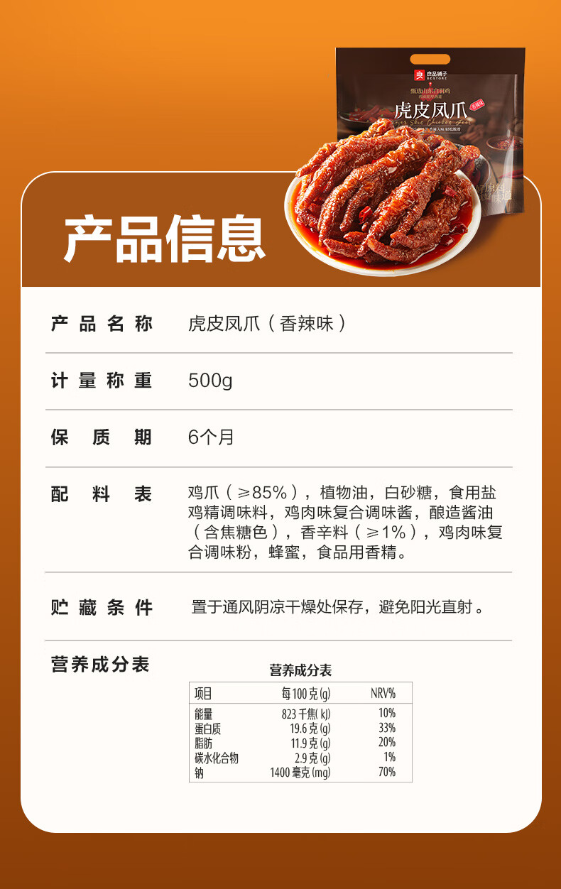 良品铺子自营虎皮凤爪香辣味500g 即食鸡爪熟食卤味宿舍夜宵解馋肉类零食