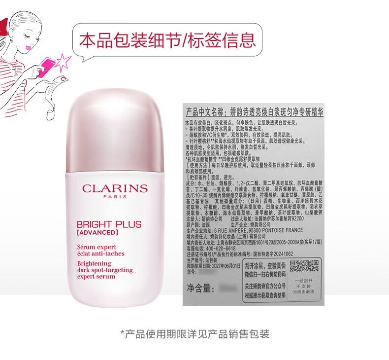 娇韵诗小瓷瓶50ml精华美白淡斑提亮护肤品化妆品生日礼物送女友