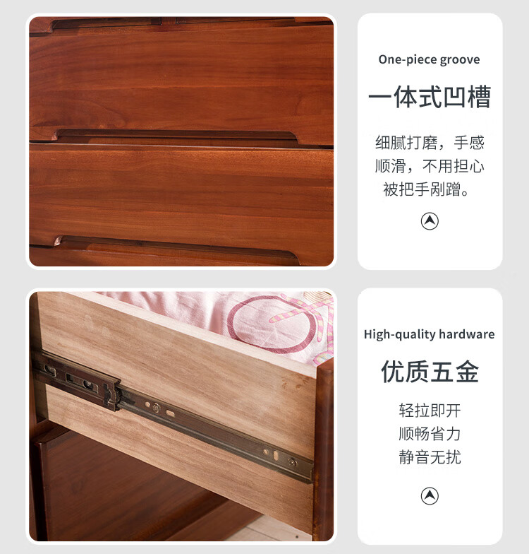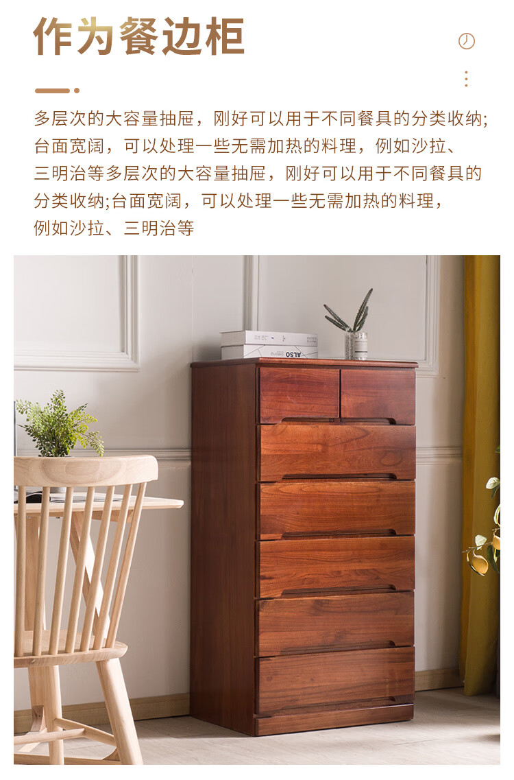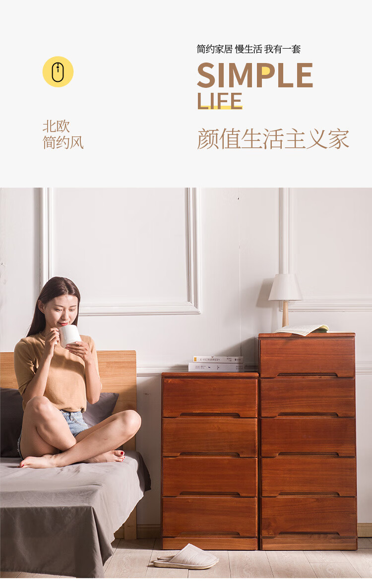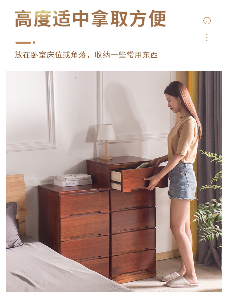 仟艺绘全实木斗柜客厅收纳柜卧室床头柜抽屉柜子多功能五斗柜多层储物柜 窄四斗白【长45*宽40*高82cm】