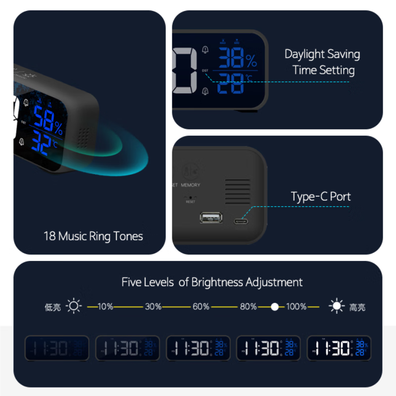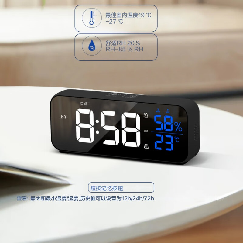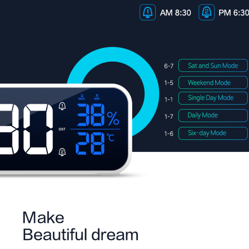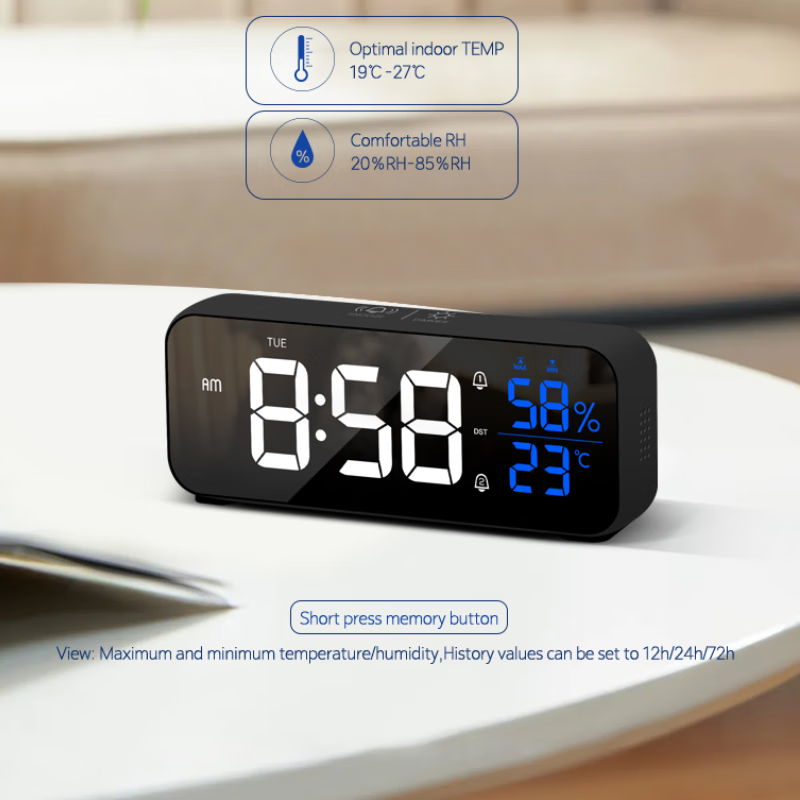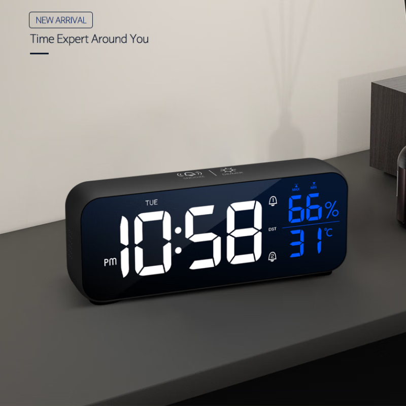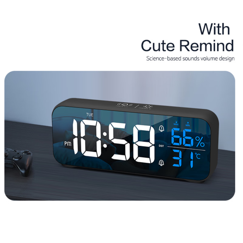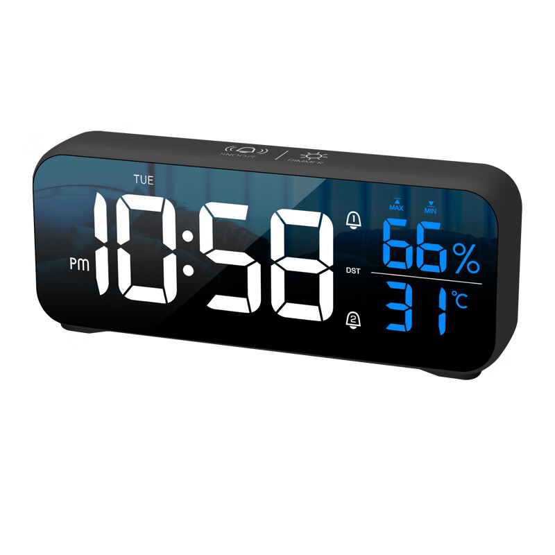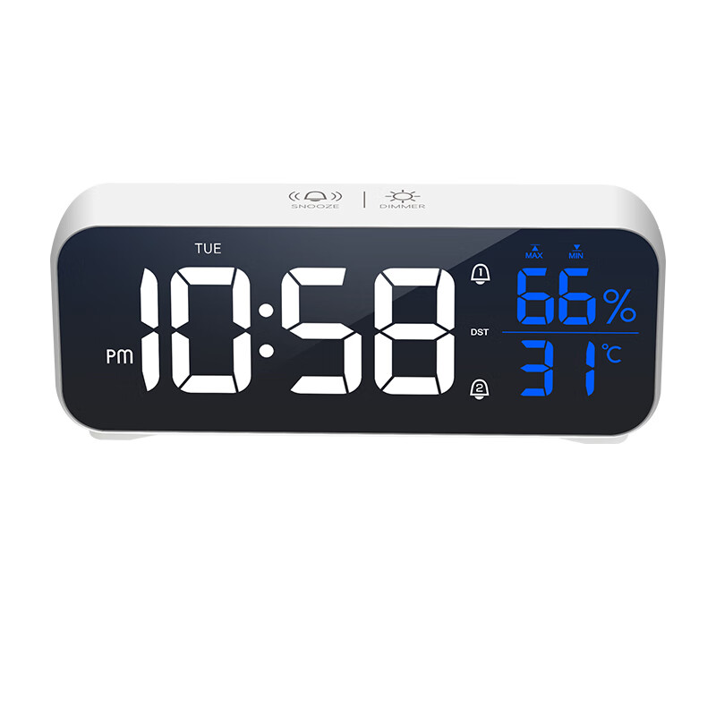 创意多功能电子闹钟LED静音电子钟镜面学生时钟创意座钟贪睡功能 8820A白色