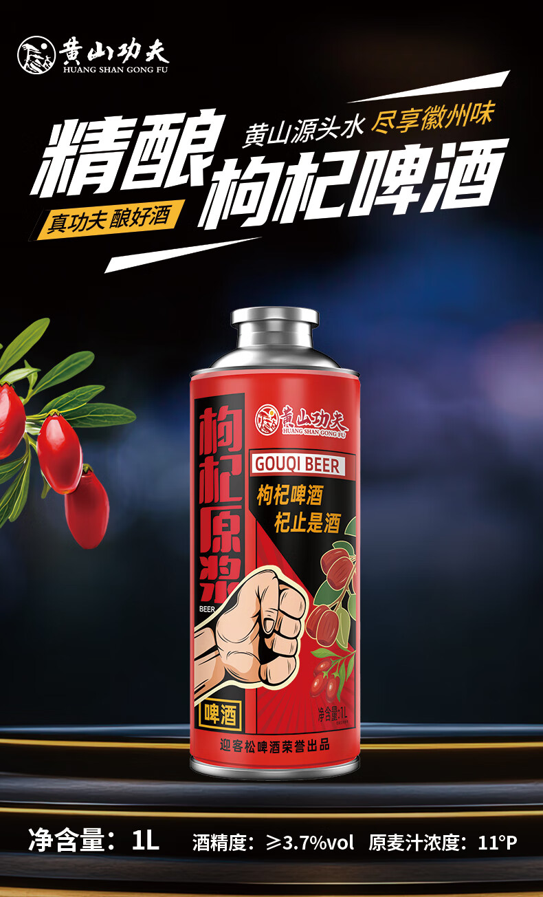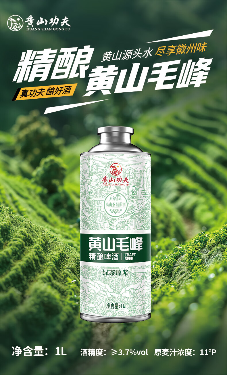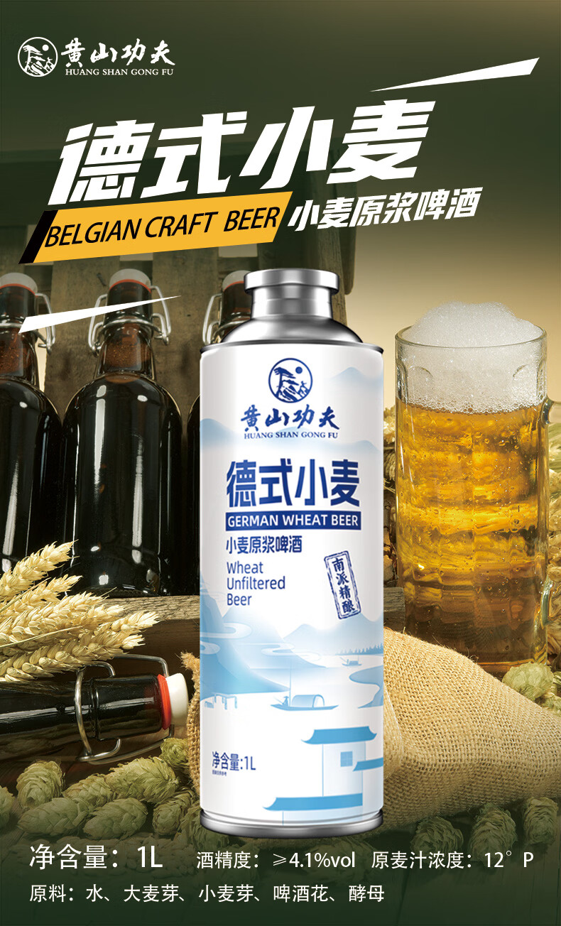 黄山功夫精酿啤酒原浆大罐装六种口味 1L 6罐 组合装 混拼整箱