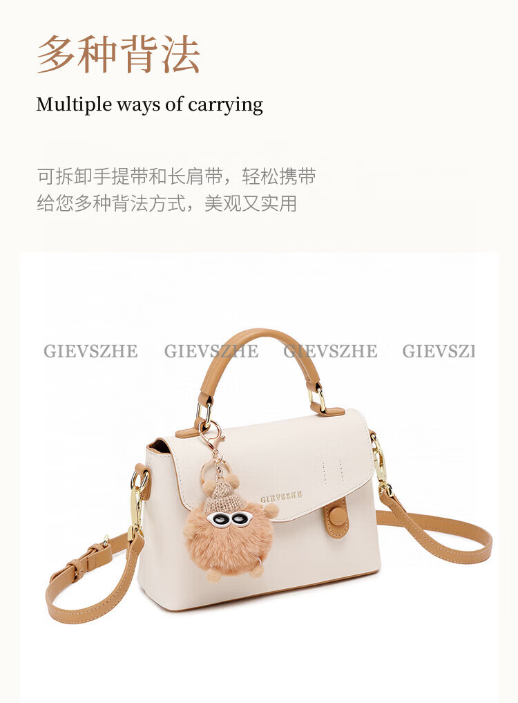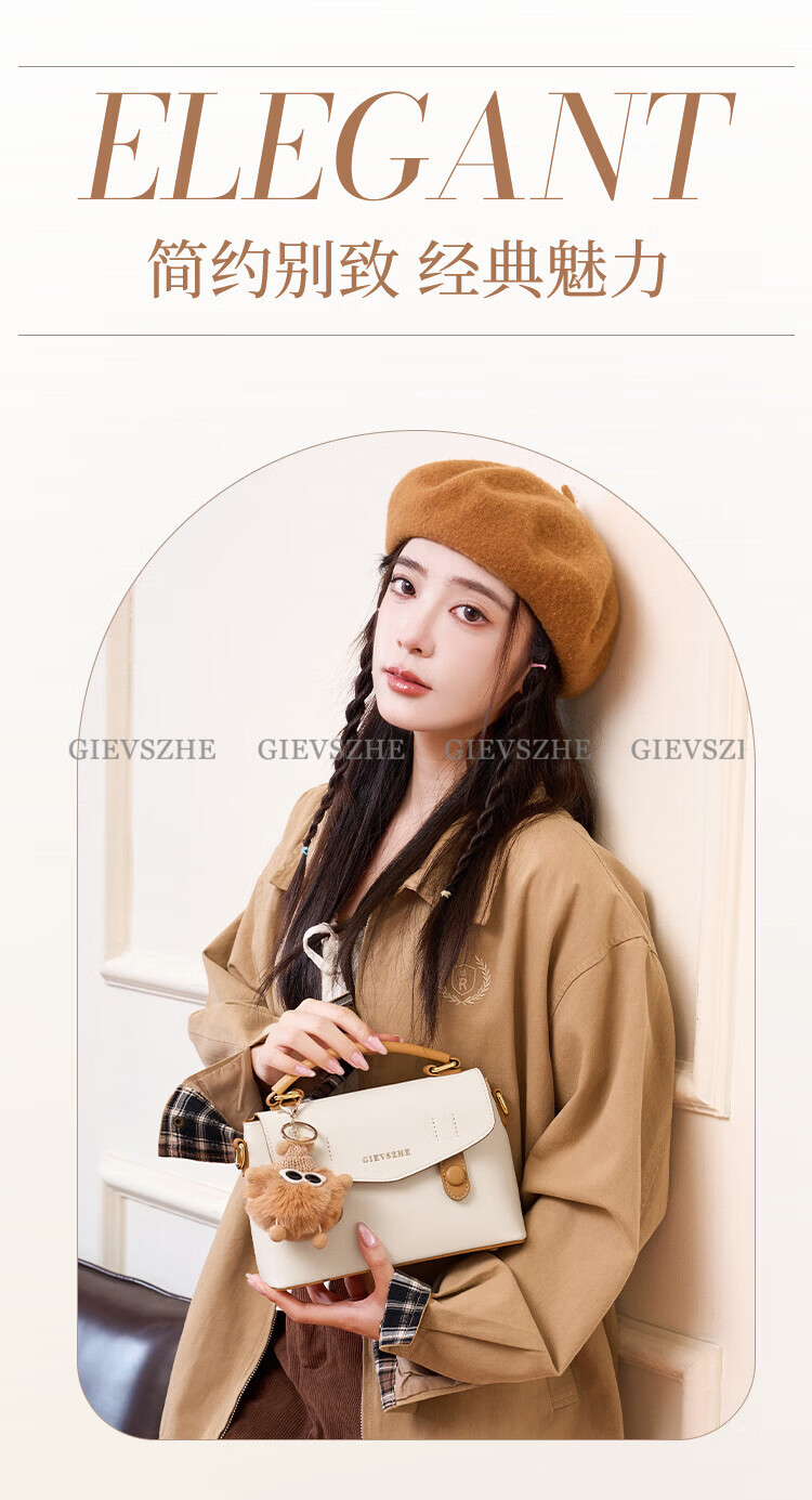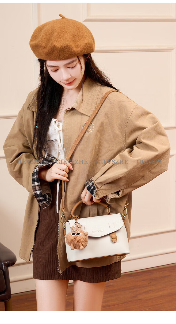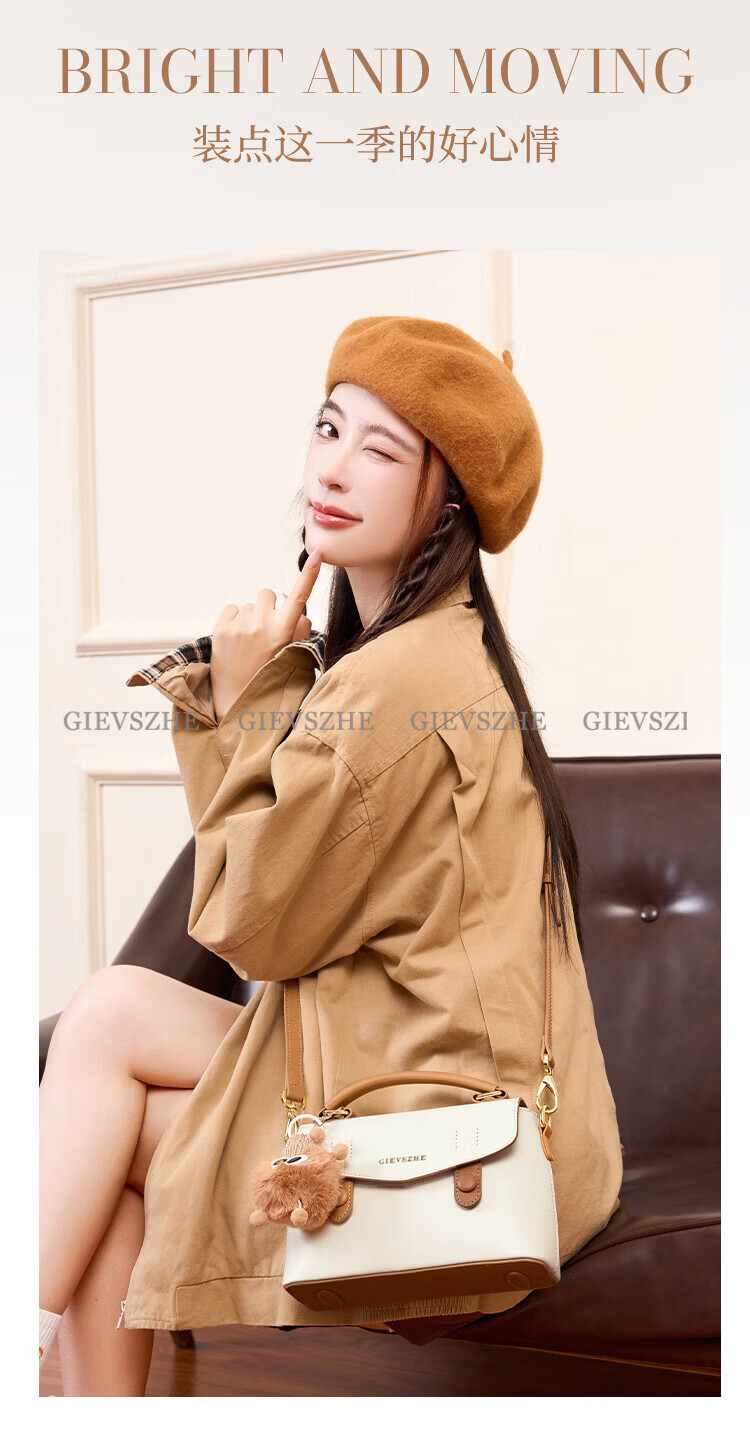 纪诗哲包包女包2026新款奢侈女士单肩斜挎手提包情人节生日礼物送女友 米棕色【配小煤球公仔】 小包
