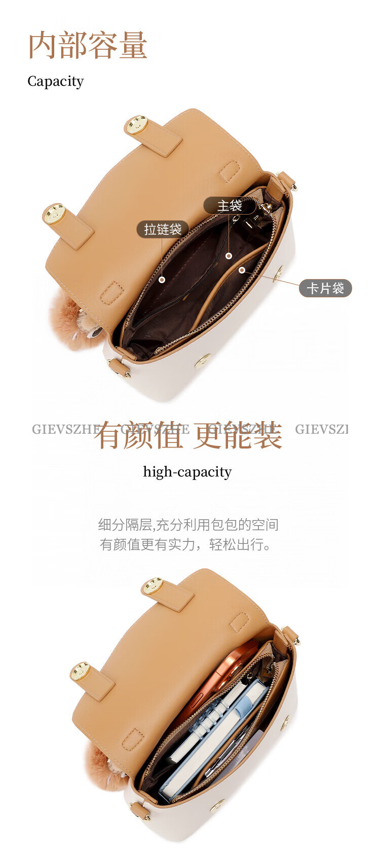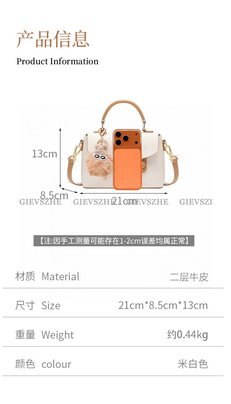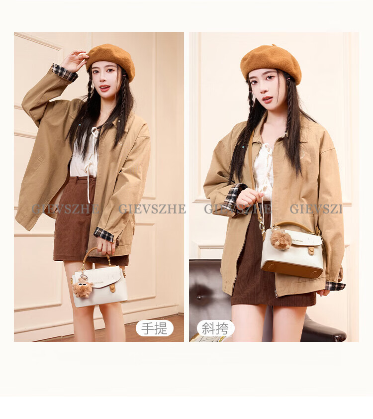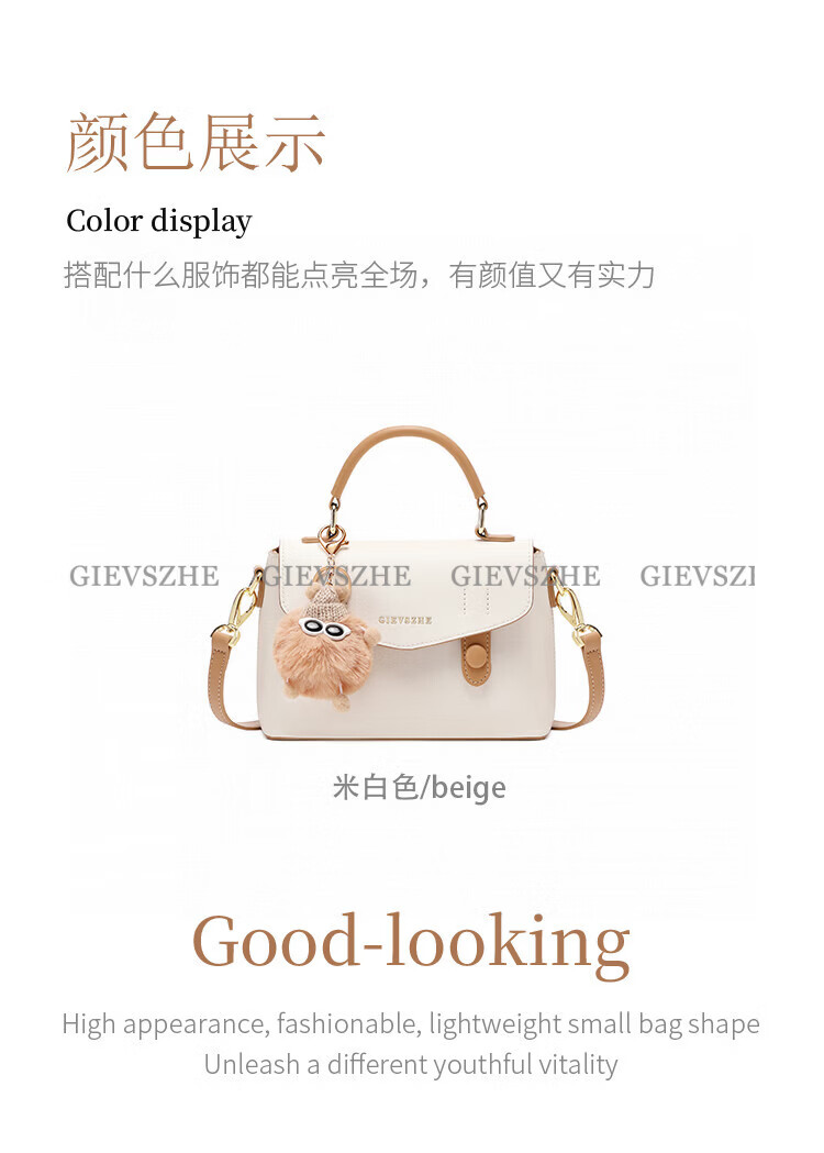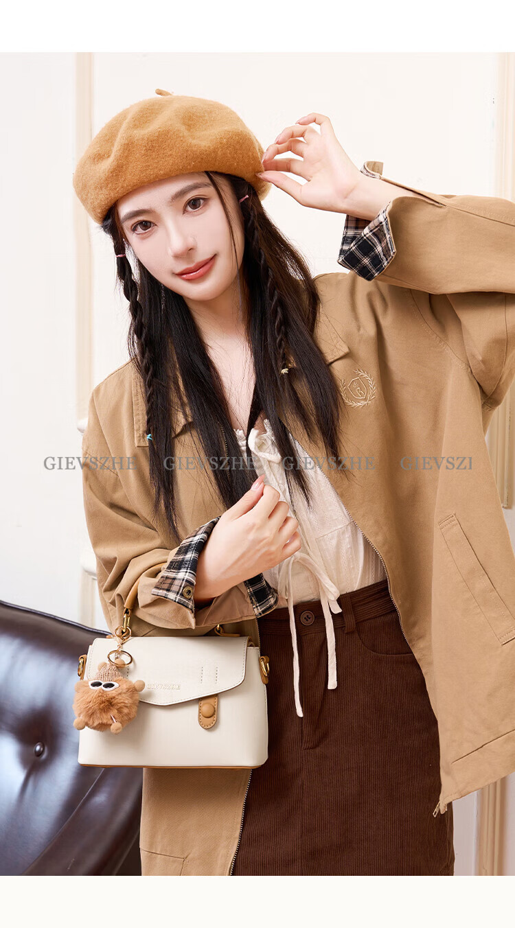 纪诗哲包包女包2026新款奢侈女士单肩斜挎手提包情人节生日礼物送女友 米棕色【配小煤球公仔】 小包