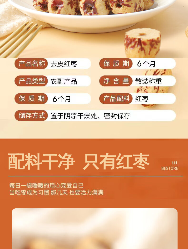 犀旺去皮去核红枣新疆特产灰枣无皮无核红枣脱皮煮粥枣休闲零食500g 去皮去核红枣500g/袋