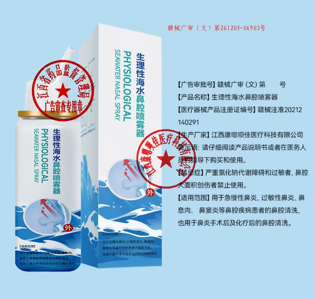 XAXR海盐水洗鼻器鼻炎喷剂生理盐水儿童洗鼻盐成人鼻腔喷雾器鼻窦炎 【1瓶*100ml】定量柔细喷雾通鼻不呛咳