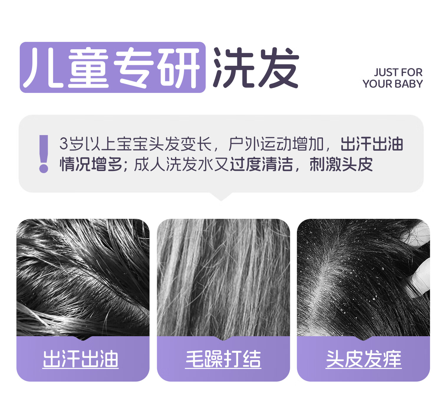 绽小妍婴儿新生儿洗浴泡泡 儿童氨基酸洗发水沐浴露 3-6-12岁 【净澈控油 3岁+】儿童洗发露330ml