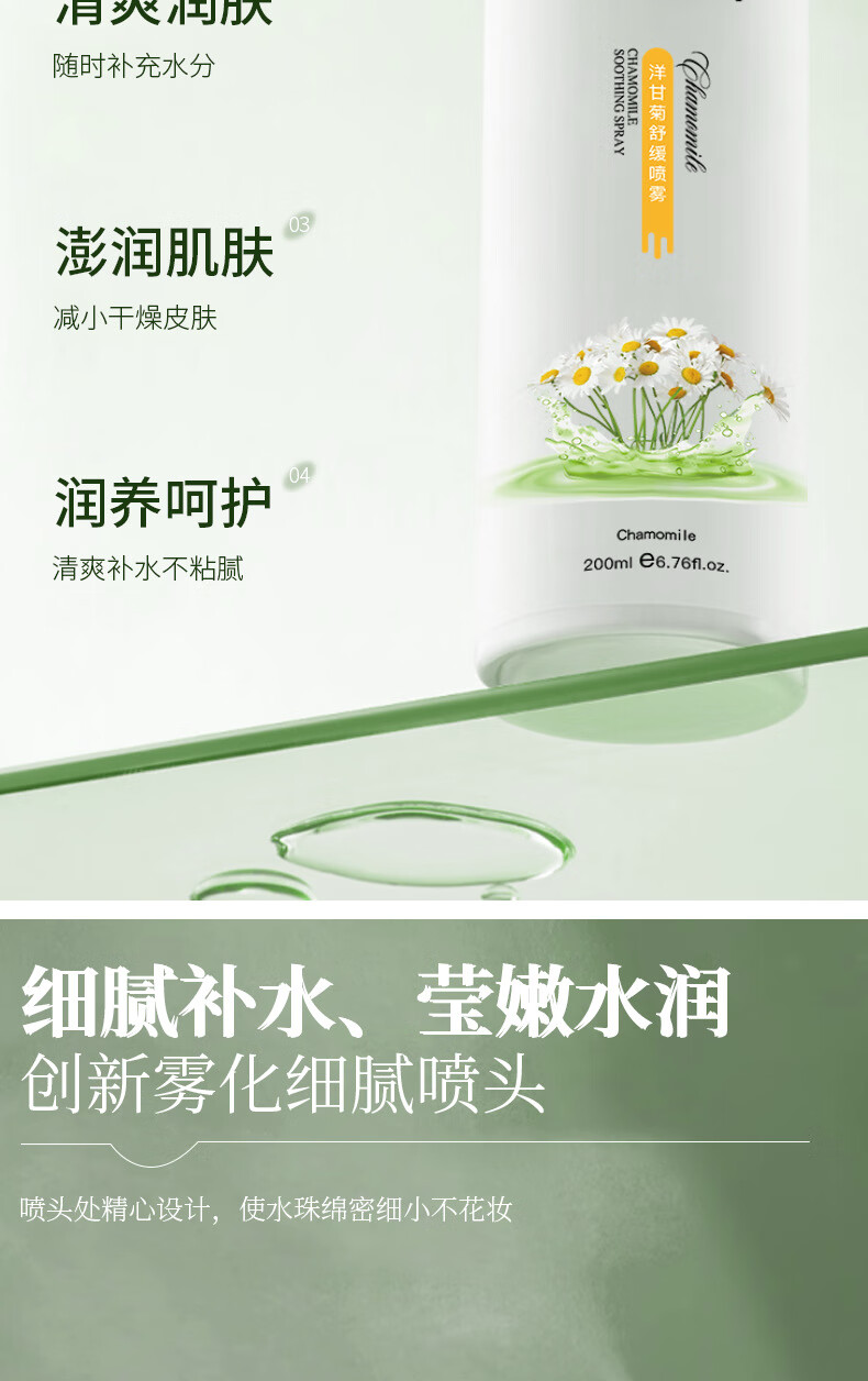 【3瓶装】洋甘菊保湿清爽补水喷雾纯露爽肤水大容量化妆水湿敷 补水喷雾 200ml*3瓶