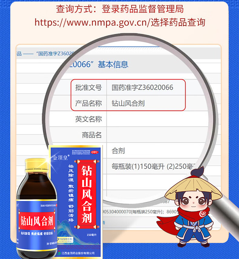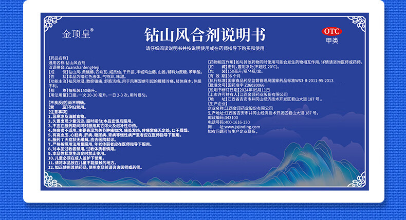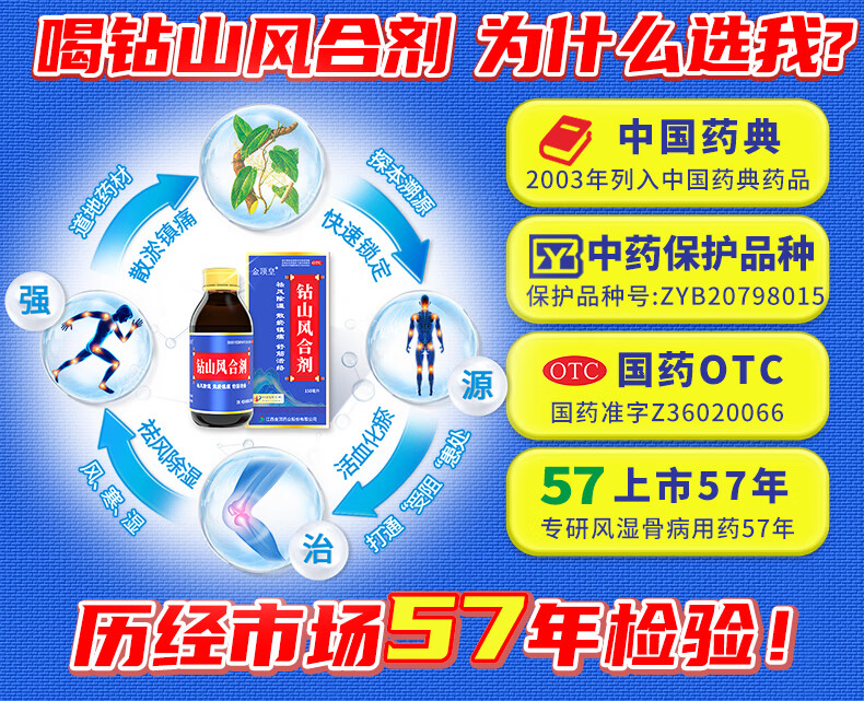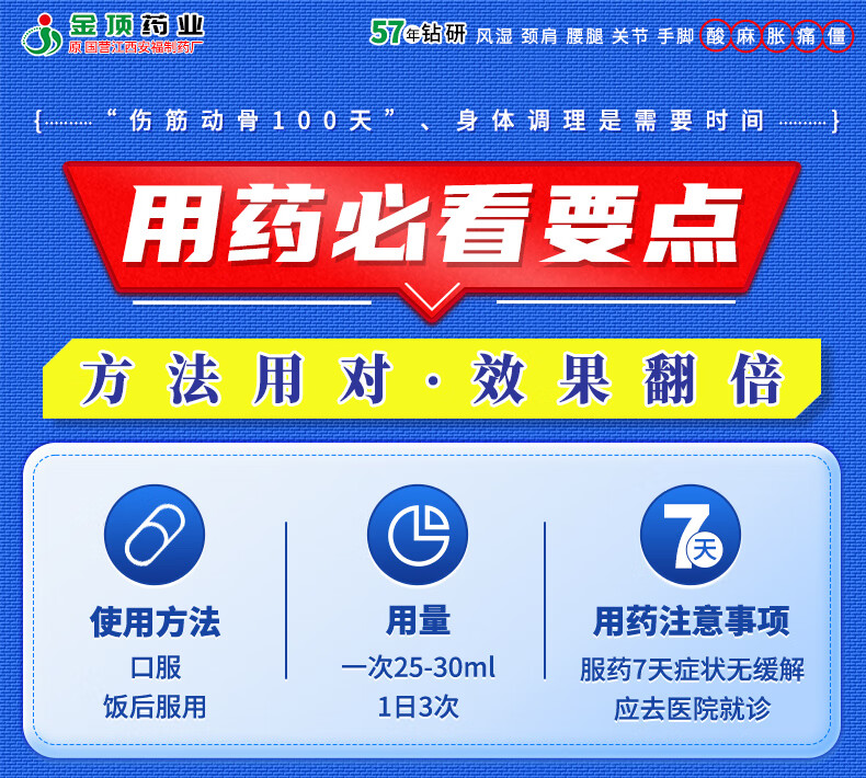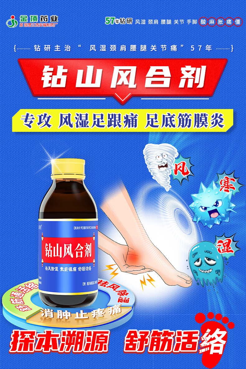 [金顶皇]钻山风合剂 150ml 1盒装 足部疼痛专用效特药足跟痛脚后跟疼痛足底筋膜炎跟腱炎骨刺骨质增生消肿止痛口服液 请按症状轻重+选购用药量