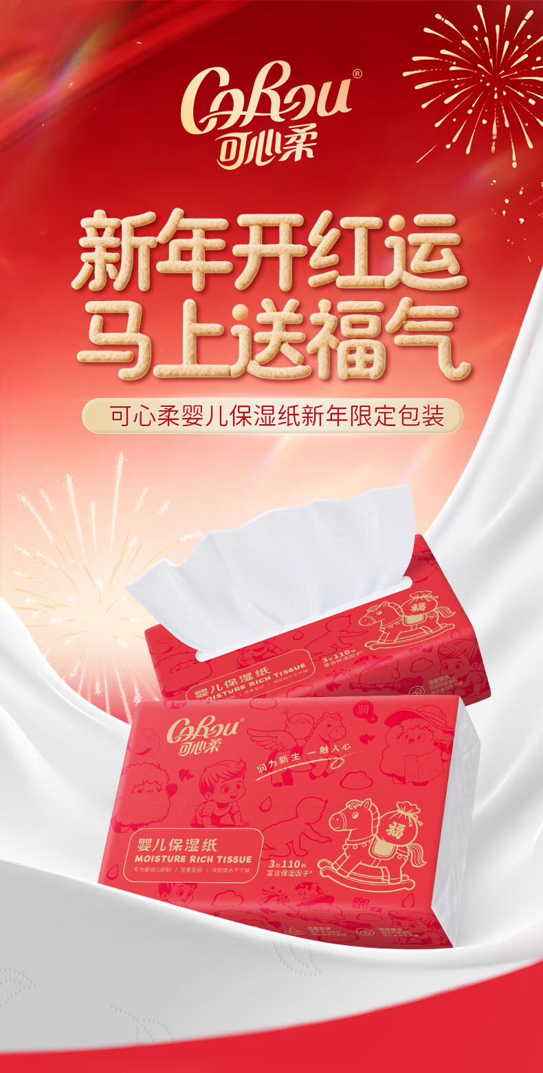 可心柔(COROU)V9婴儿纸巾 乳霜纸 抽纸 云柔巾110抽18包 整箱 新年限定款