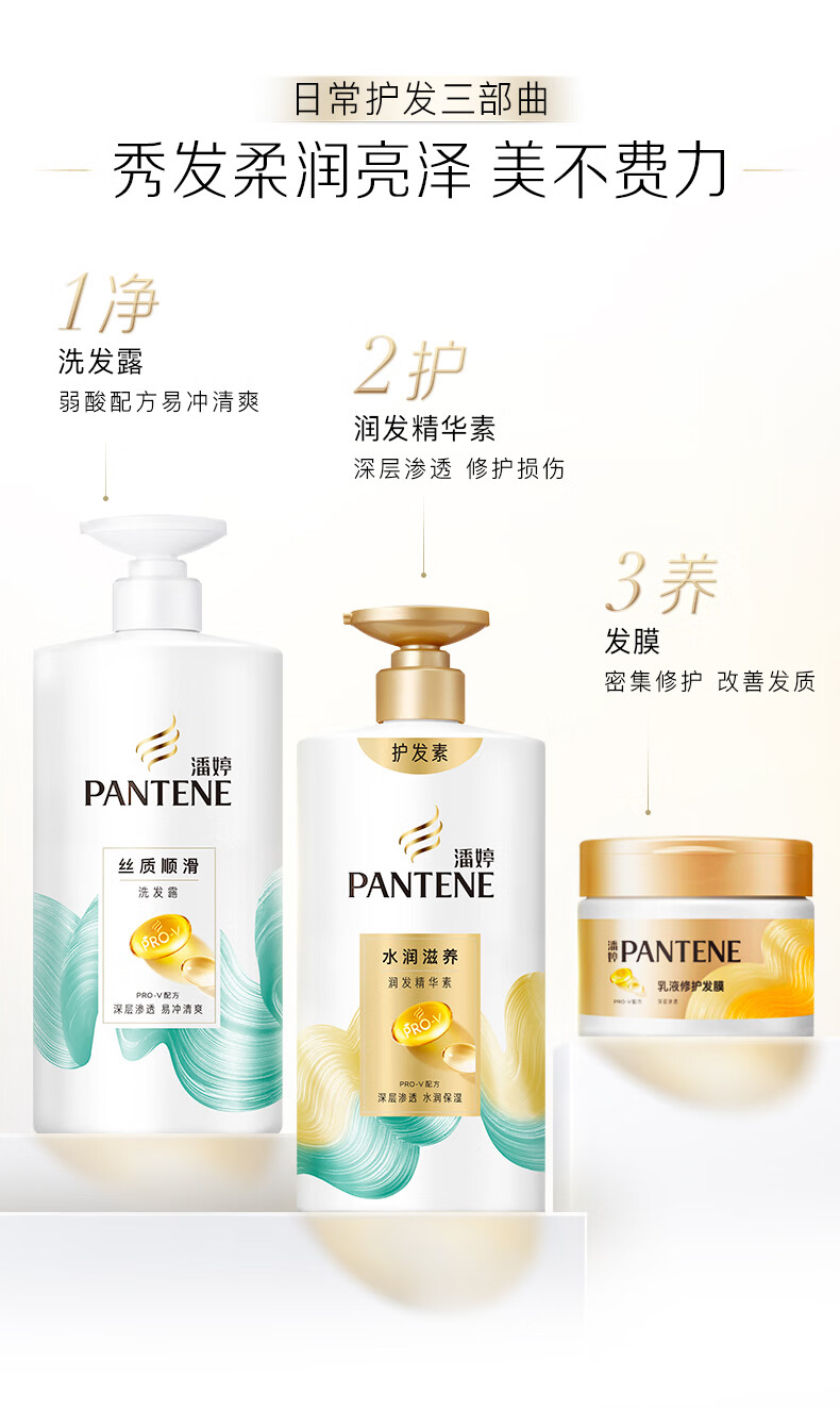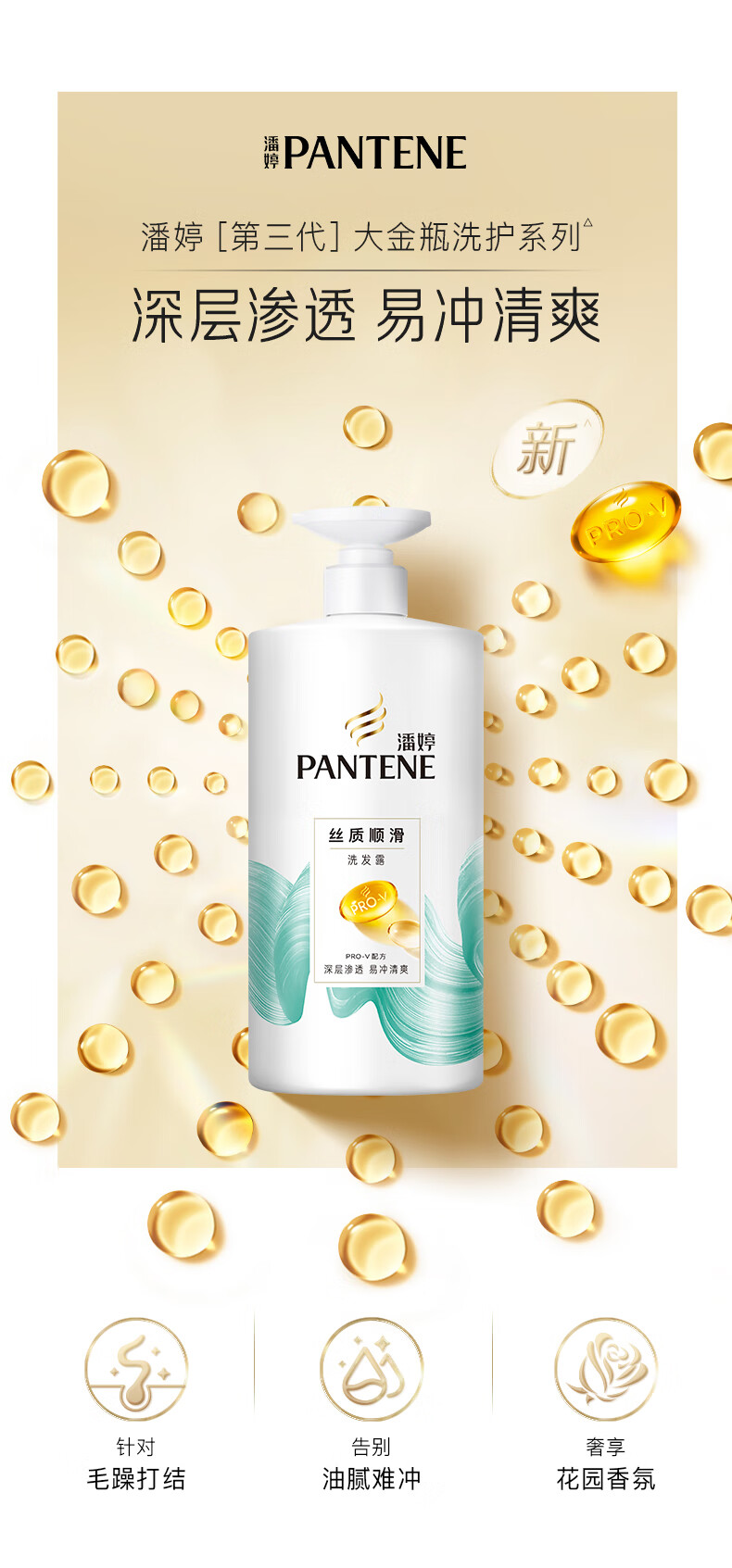 潘婷氨基酸洗发水丝质顺滑500G洗发水洗头膏女士男女通用
