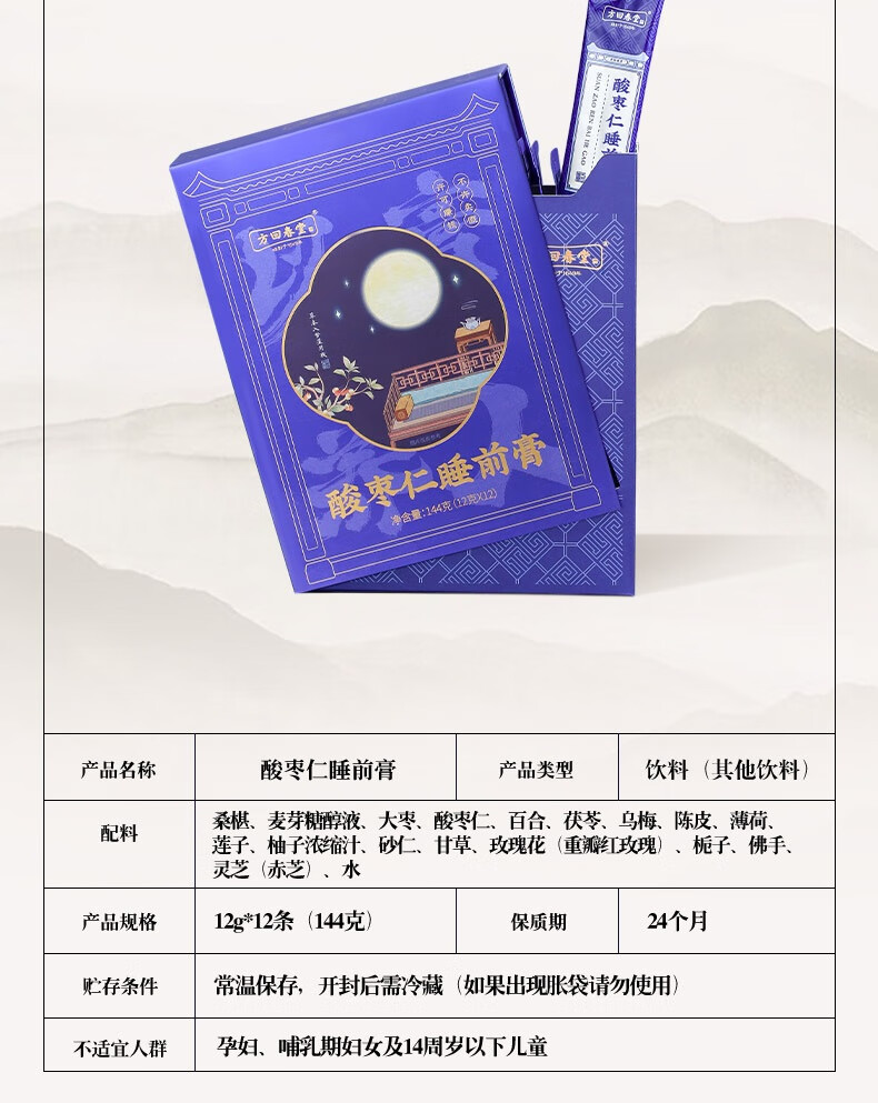 方回春堂酸枣仁睡前膏144g(12g*12袋) 食养冲泡即饮药食同源