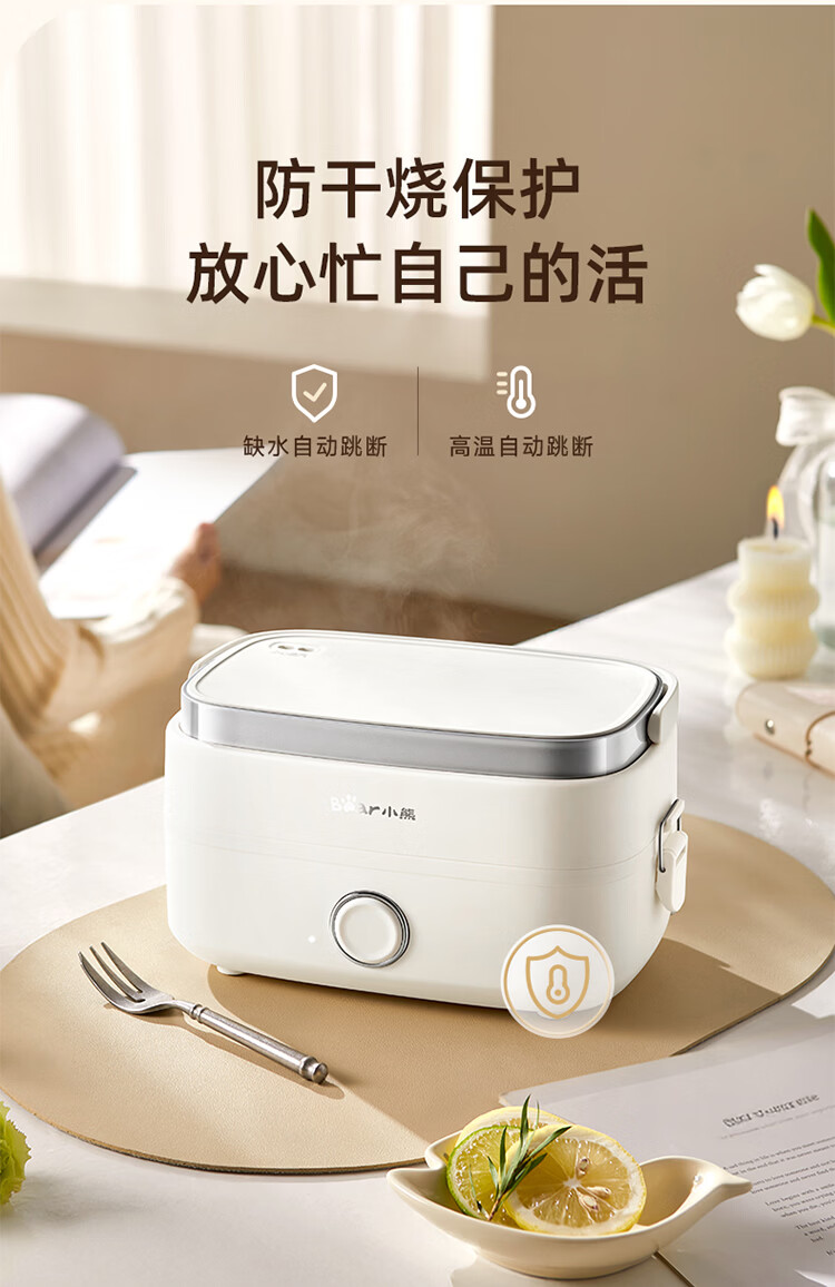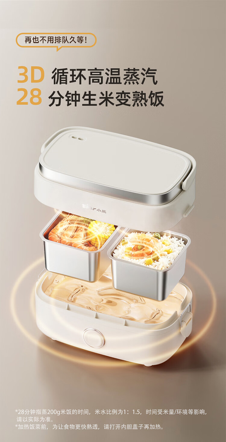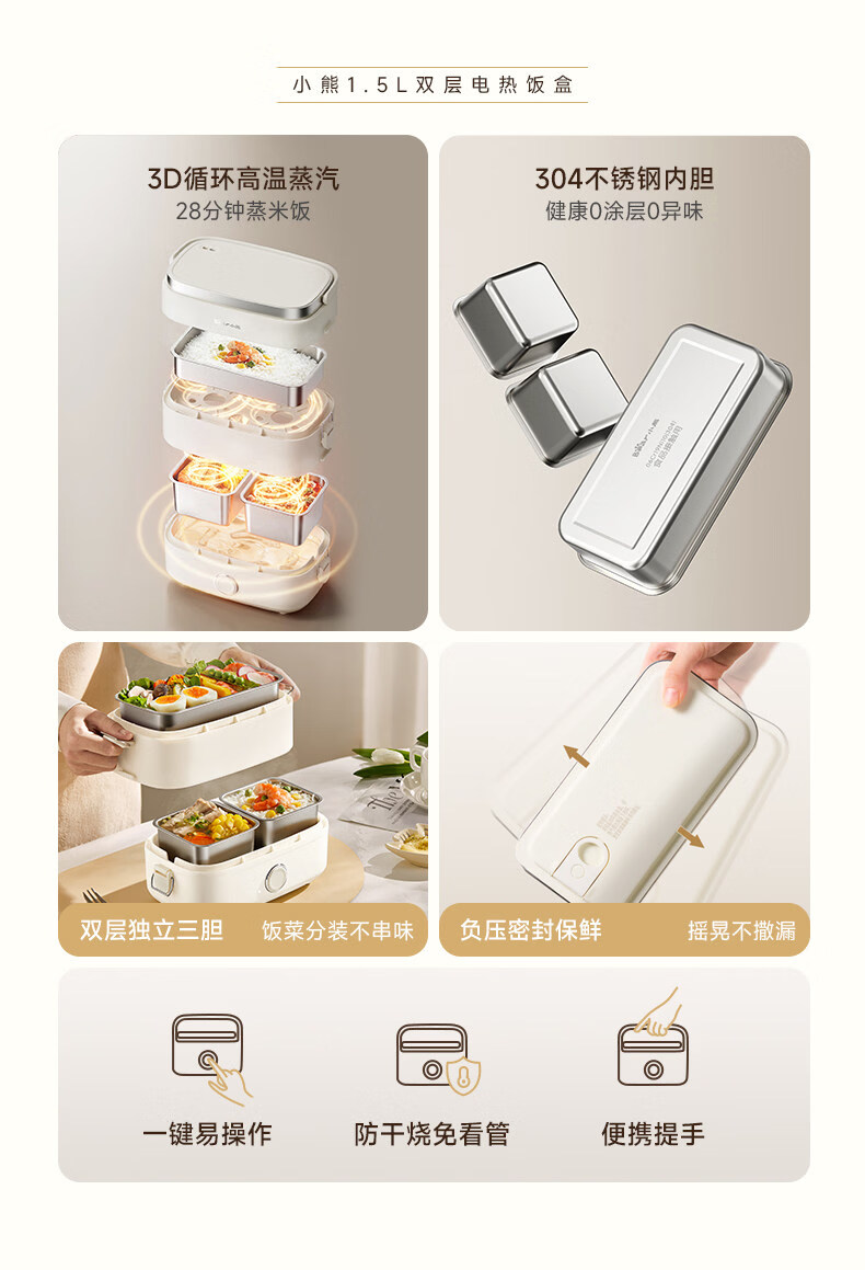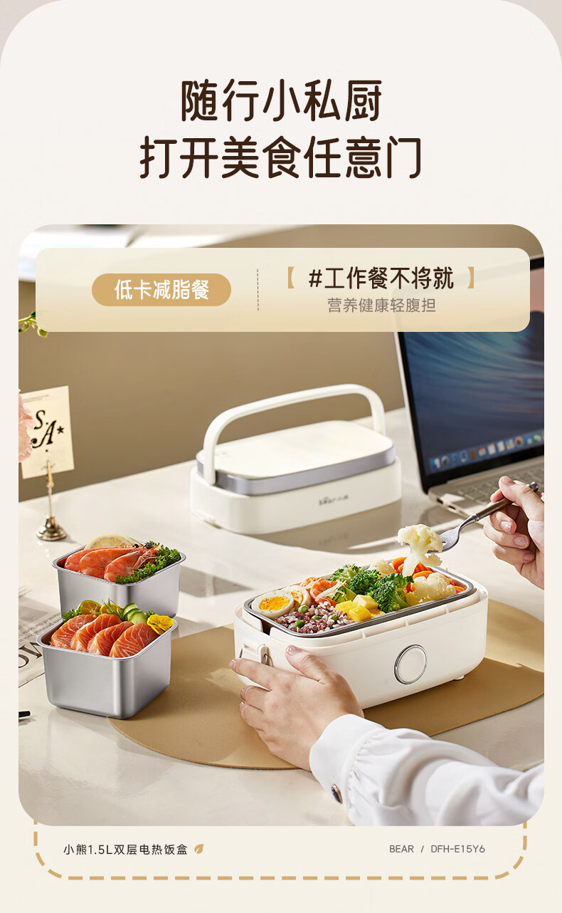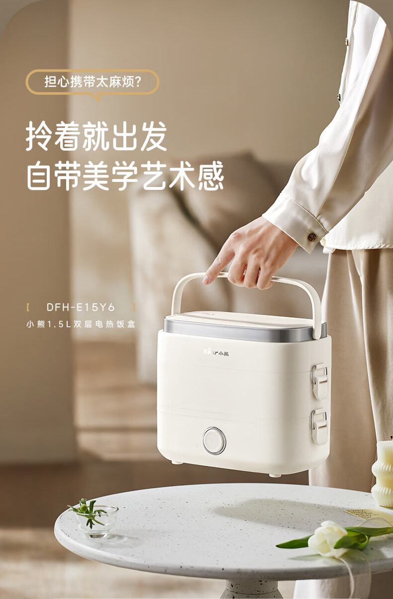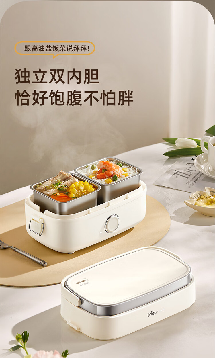 小熊(Bear)加热饭盒电热饭盒可插电上班族带饭神器热饭神器智能可预约0涂层不锈钢防干烧免看管保温饭盒 1.5L 升级微电脑【可预约&保温】
